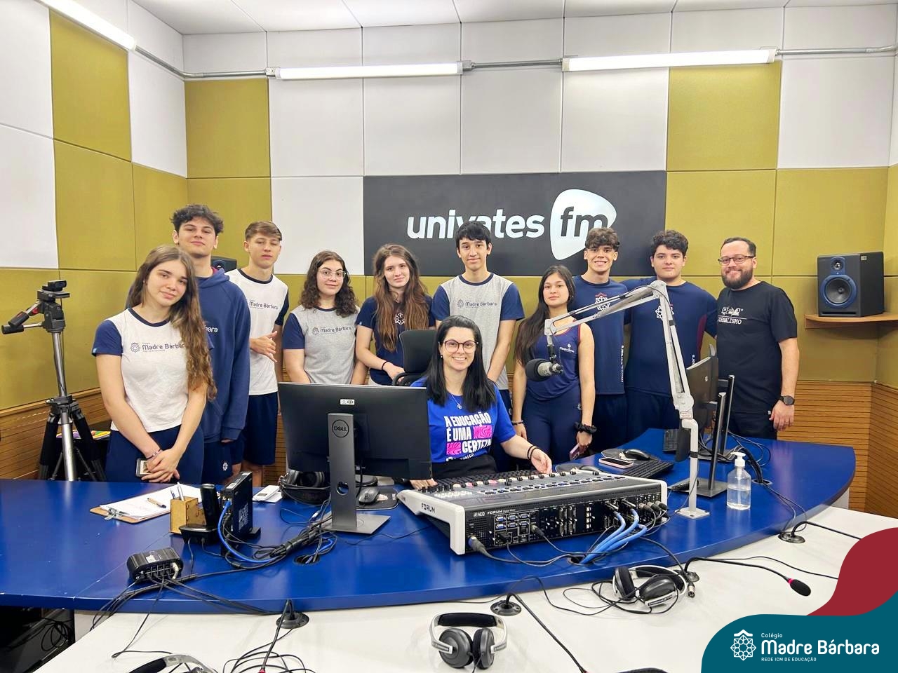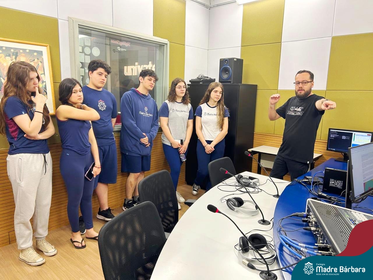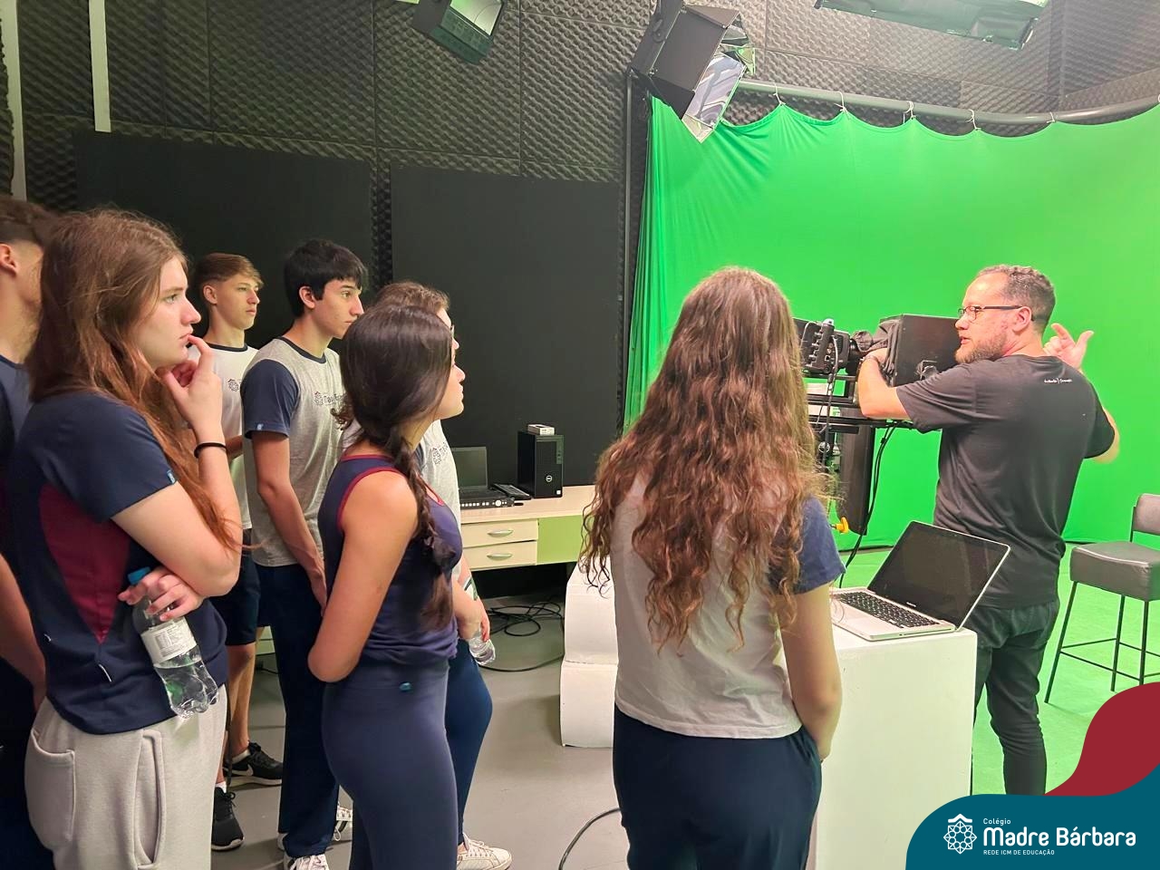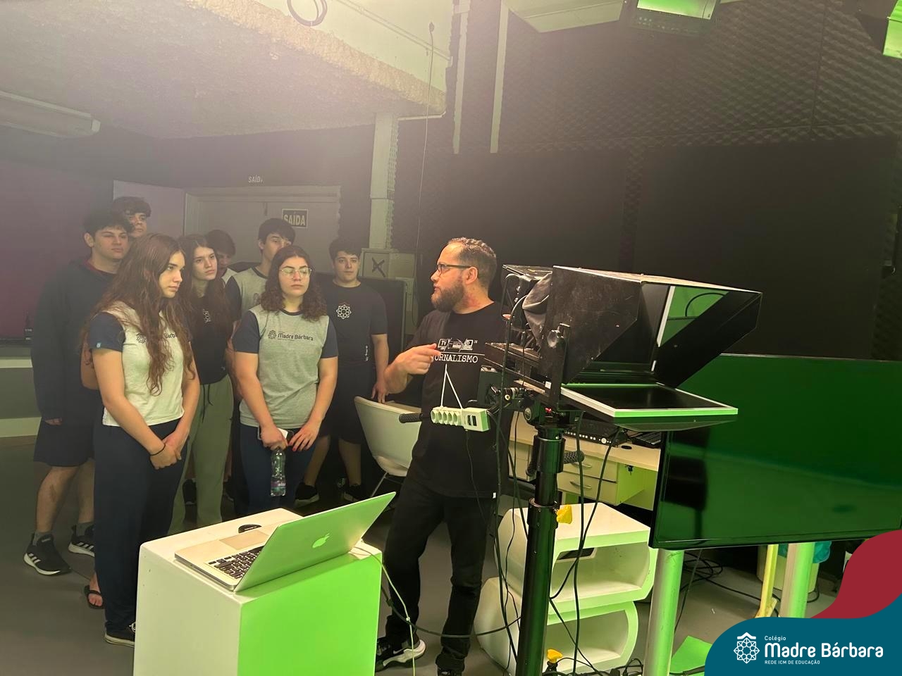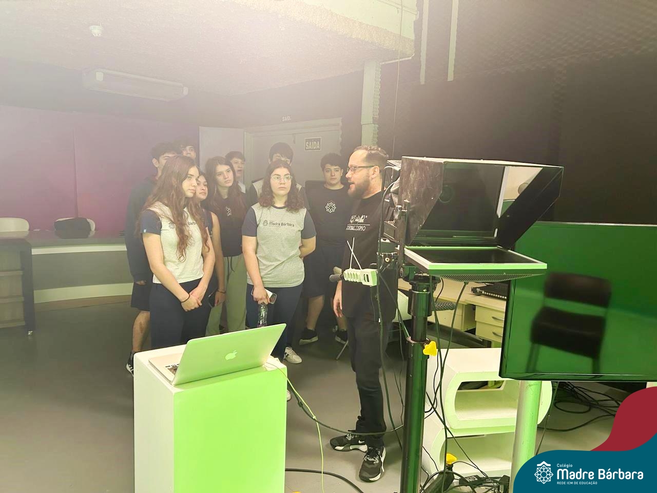 Na última quarta-feira (23.10), a turma do itinerário de Jornalismo Digital esteve na Univates para conhecer um pouco mais sobre o curso de Jornalismo. Na ocasião, o professor Marcus Staudt, coordenador do curso, conversou com os alunos sobre o trabalho do Jornalista e o mundo do Jornalismo. Além disso, os alunos tiveram a oportunidade de visitar os laboratórios e estúdios do curso, além de conhecer a Rádio Univates. O itinerário é cursado por alunos de 2º ano do Ensino Médio e ministrado pela professora Aline Konrath.