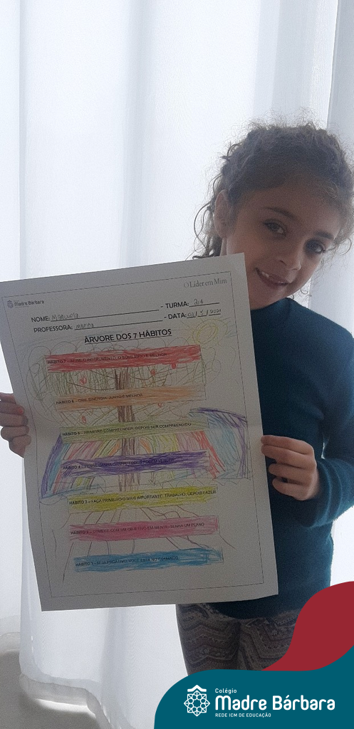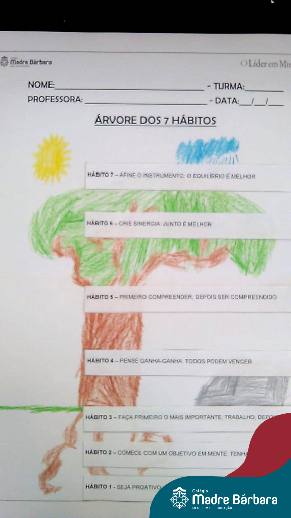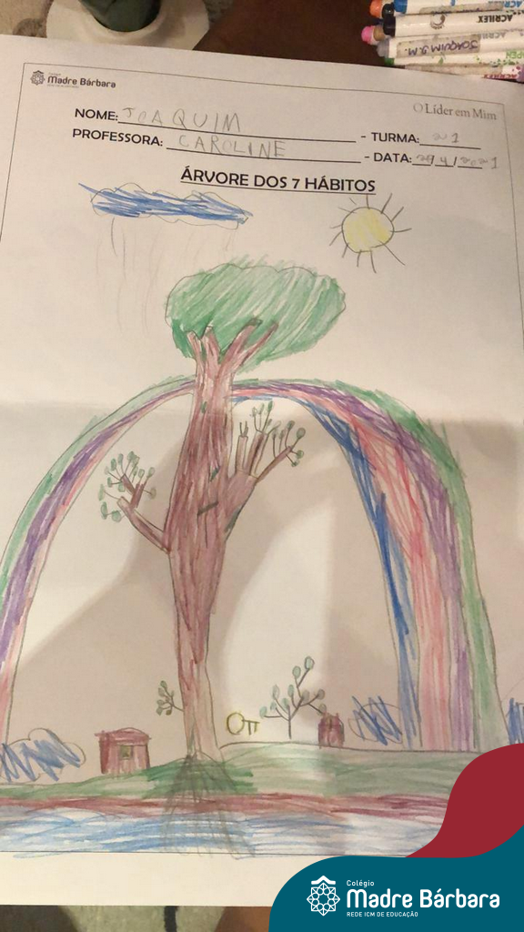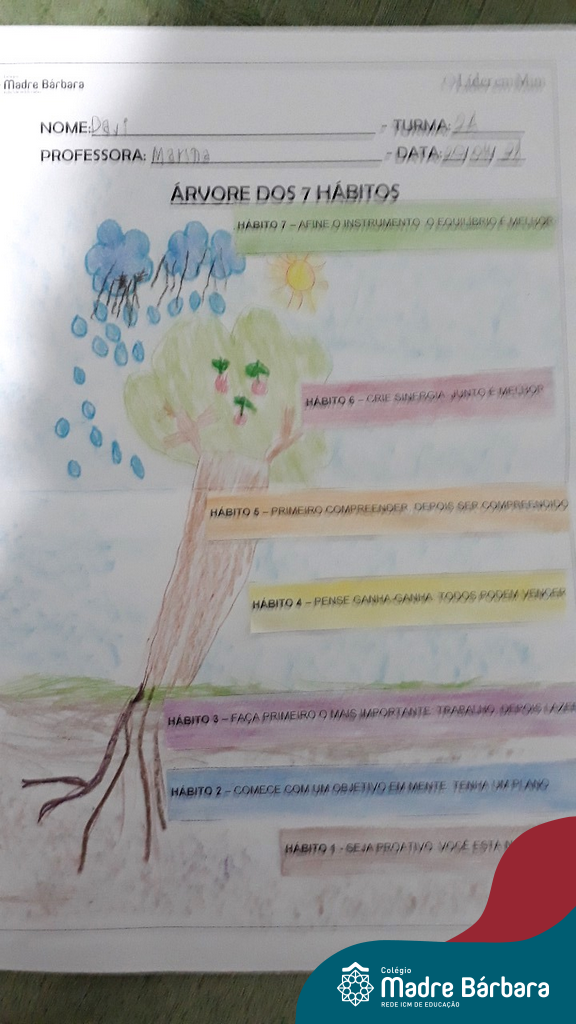 Para dar sequência ao trabalho iniciado nas aulas presenciais, as turmas dos Segundos Anos do Colégio Madre Bárbara – Rede ICM, mostraram que mesmo com a continuidade dos Estudos Domiciliares, a sinergia está presente em nossa rotina escolar. De maneira remota, as turmas 21, 22 e 24 através da condução e direcionamento das professoras: Caroline, Mara S. e Marina, tendo um objetivo em mente, construíram em suas casas a Árvore dos 7 hábitos em uma aula síncrona, utilizando diferentes materiais e a ferramenta Jamboard com explicações e exemplos de diferentes tipos de árvores, fazendo um link com os estudos sobre os seres vivos e a as plantas, aproveitando para juntos pensar nos principais elementos para a nossa vida: sol, água, terra e ar.