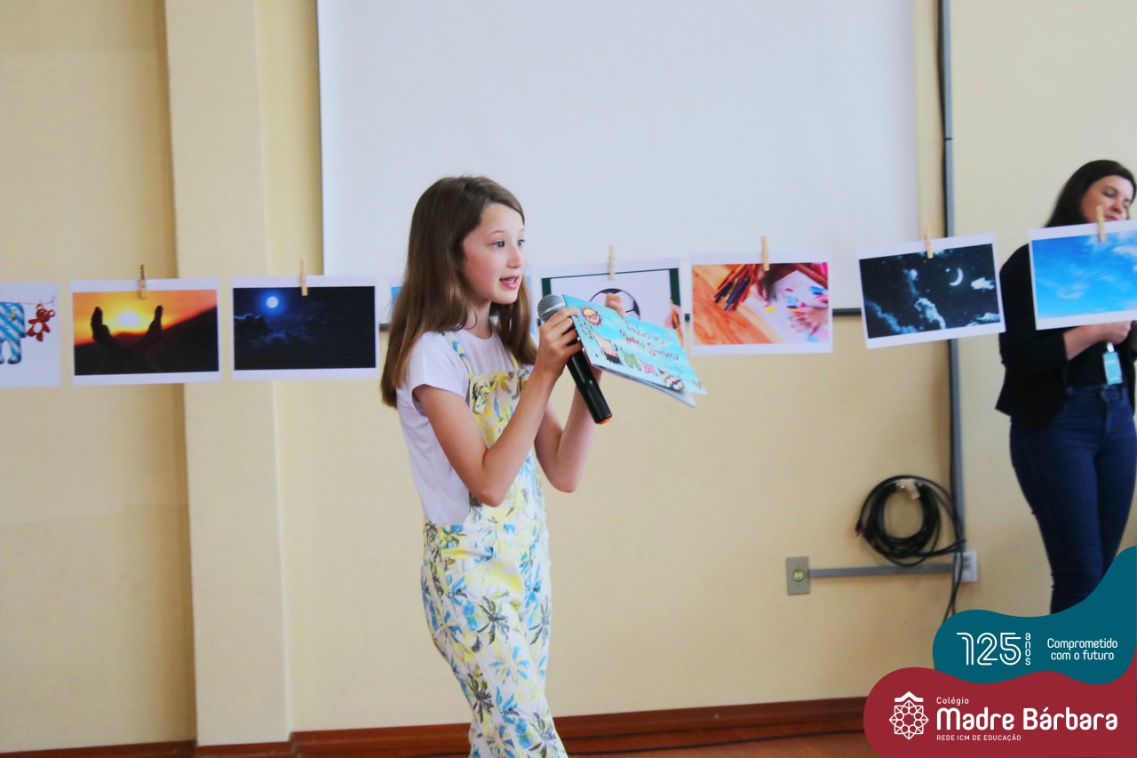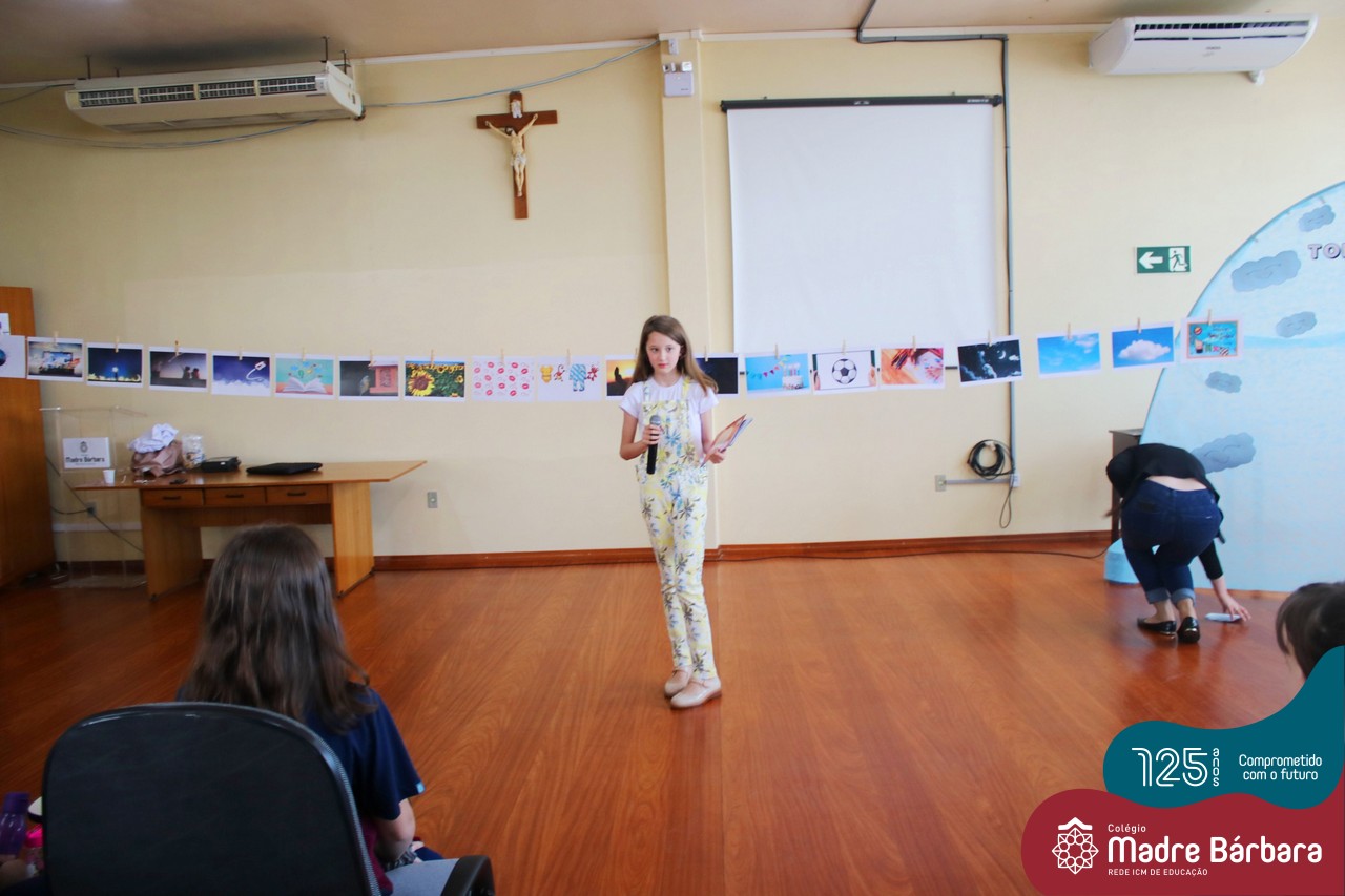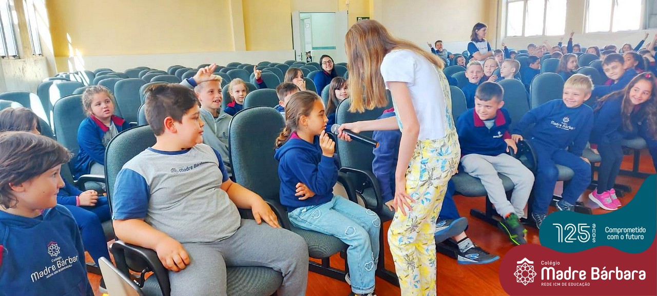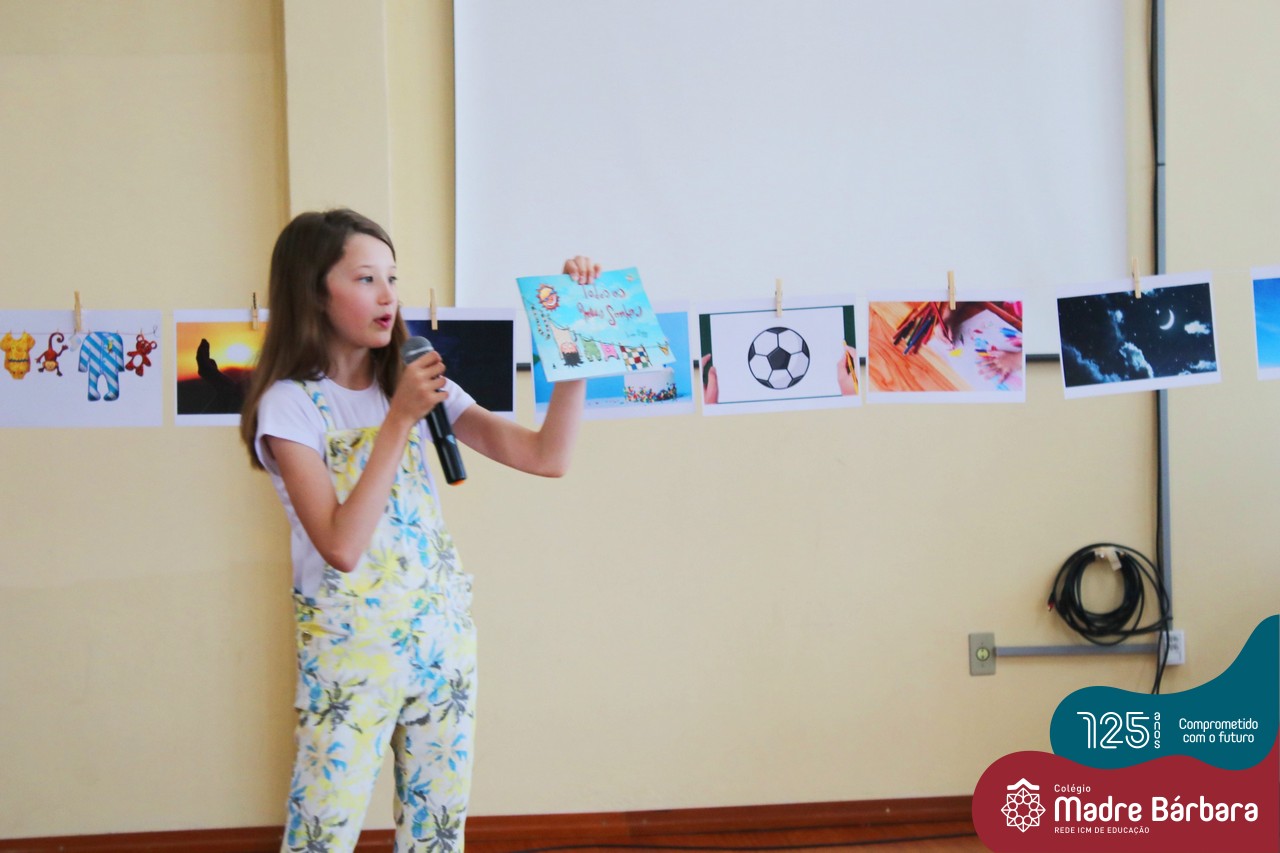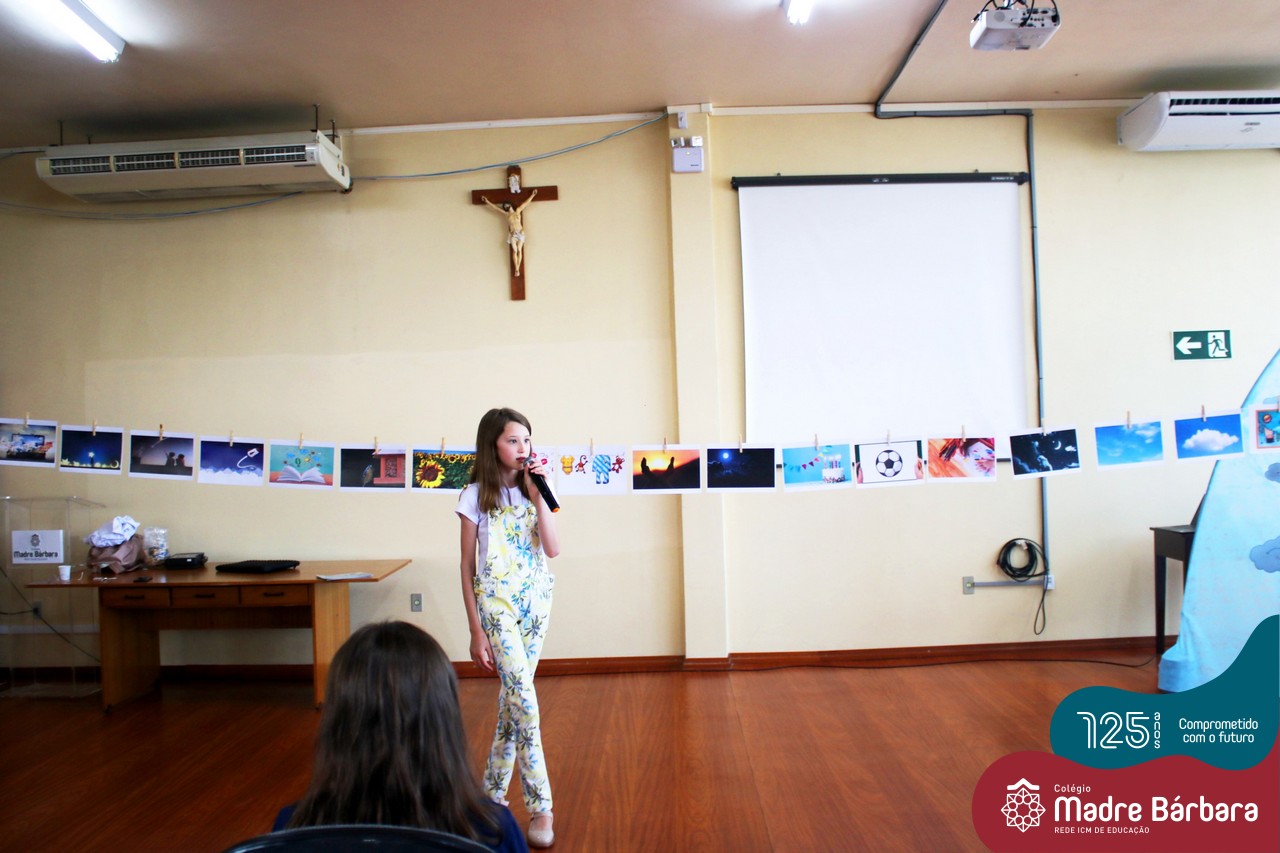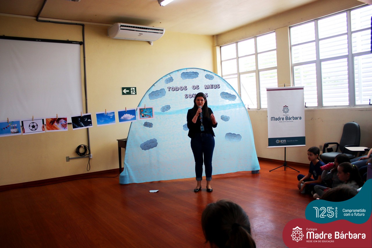 Os alunos dos Anos Iniciais do Colégio Madre Bárbara participaram no dia 09.11(quarta-feira), de um momento de contação de história com a Clarinha, a Tracinha. Ana Clara é aluna do 6º ano do colégio e é conhecida por sua paixão pelos livros e pela contação de histórias. Clarinha contou para os estudantes a história “Todos os meus sonhos” do escritor Ivan Zigg. Em uma narrativa cheia de encantos e magia, pela voz de Tracinha, os alunos refletiram sobre seus sonhos, sobre os sonhos que estão por toda a parte: no varal, no quintal, nos barquinhos…