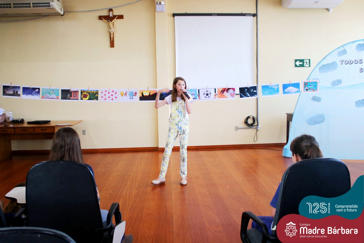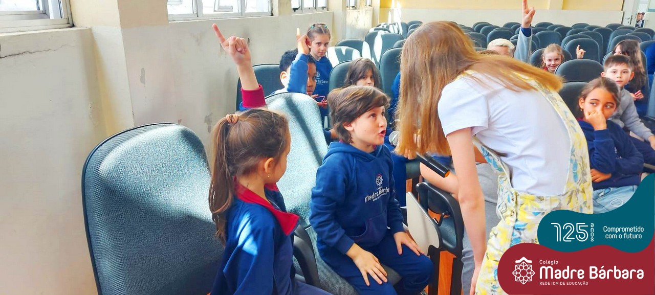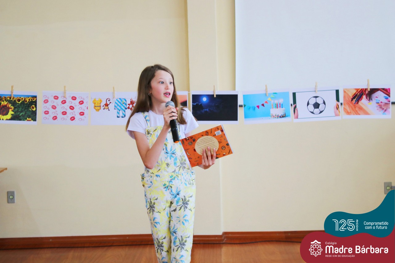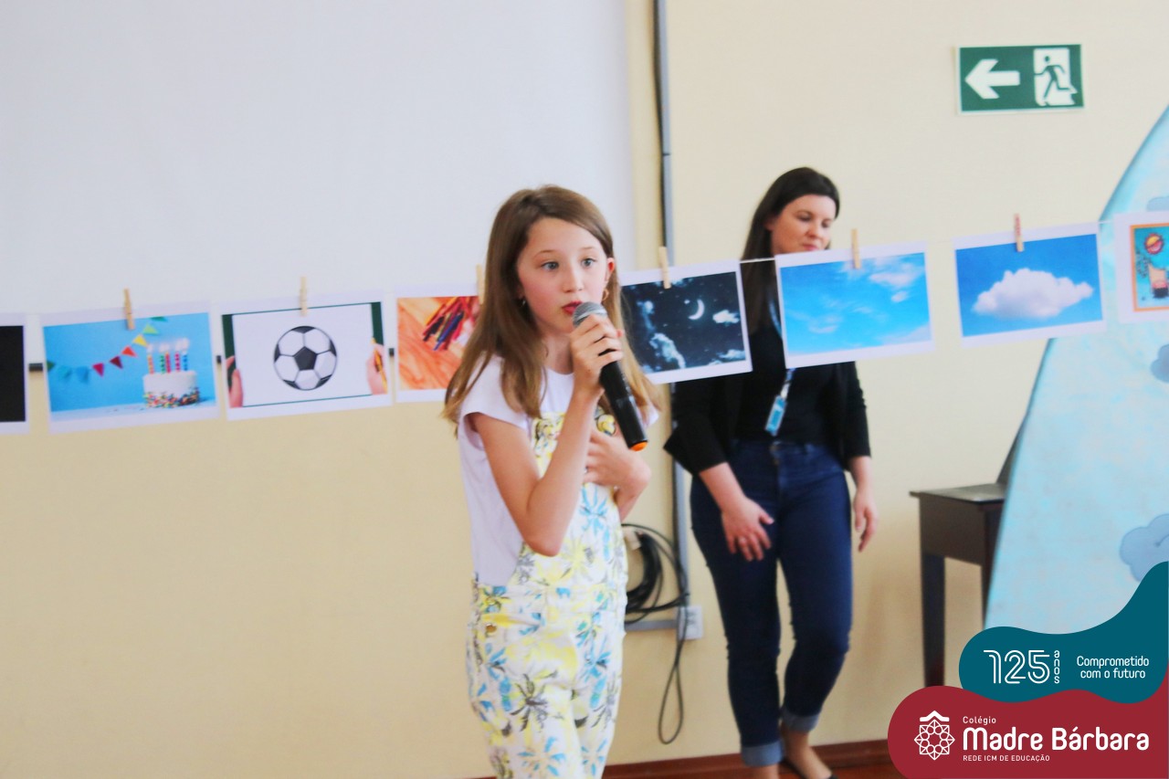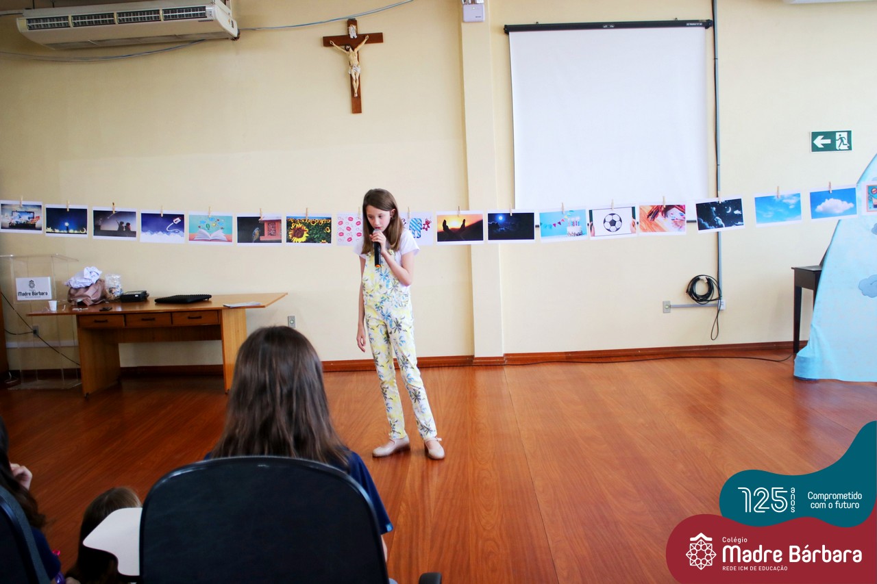 Os alunos dos Anos Iniciais do Colégio Madre Bárbara participaram no dia 09.11(quarta-feira), de um momento de contação de história com a Clarinha, a Tracinha. Ana Clara é aluna do 6º ano do colégio e é conhecida por sua paixão pelos livros e pela contação de histórias. Clarinha contou para os estudantes a história “Todos os meus sonhos” do escritor Ivan Zigg. Em uma narrativa cheia de encantos e magia, pela voz de Tracinha, os alunos refletiram sobre seus sonhos, sobre os sonhos que estão por toda a parte: no varal, no quintal, nos barquinhos…