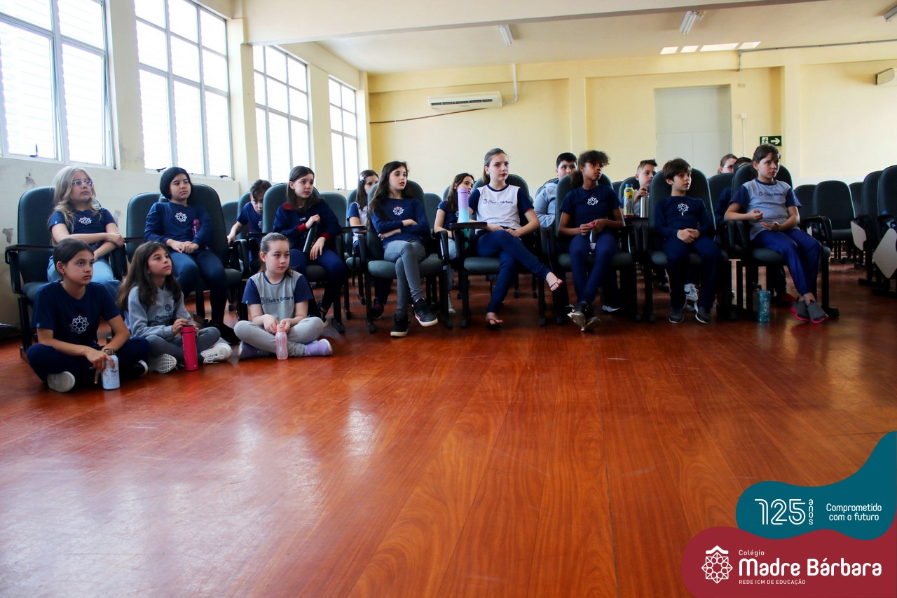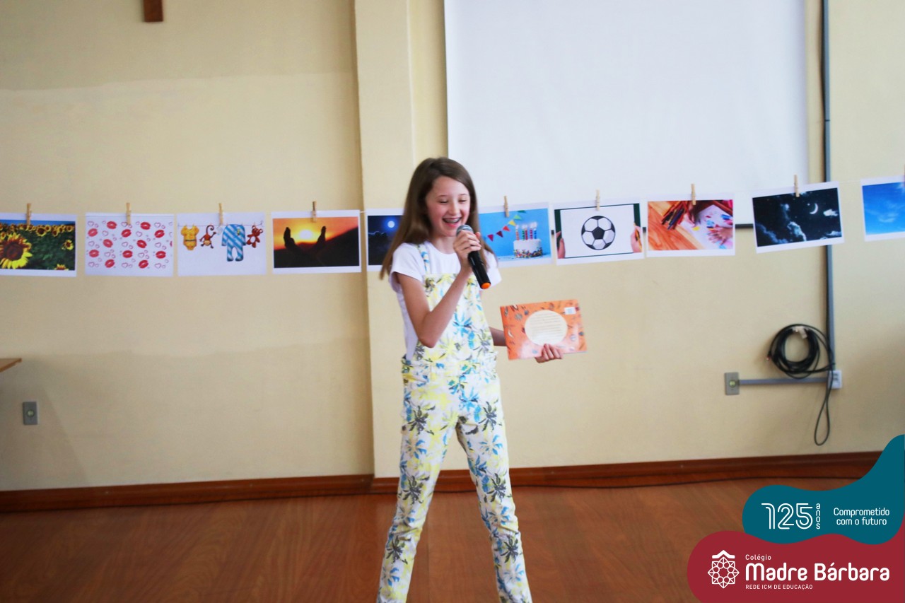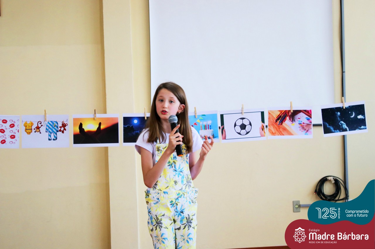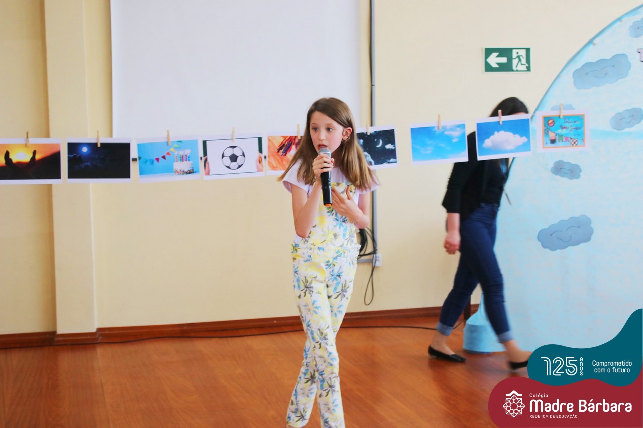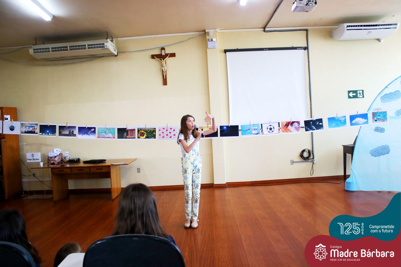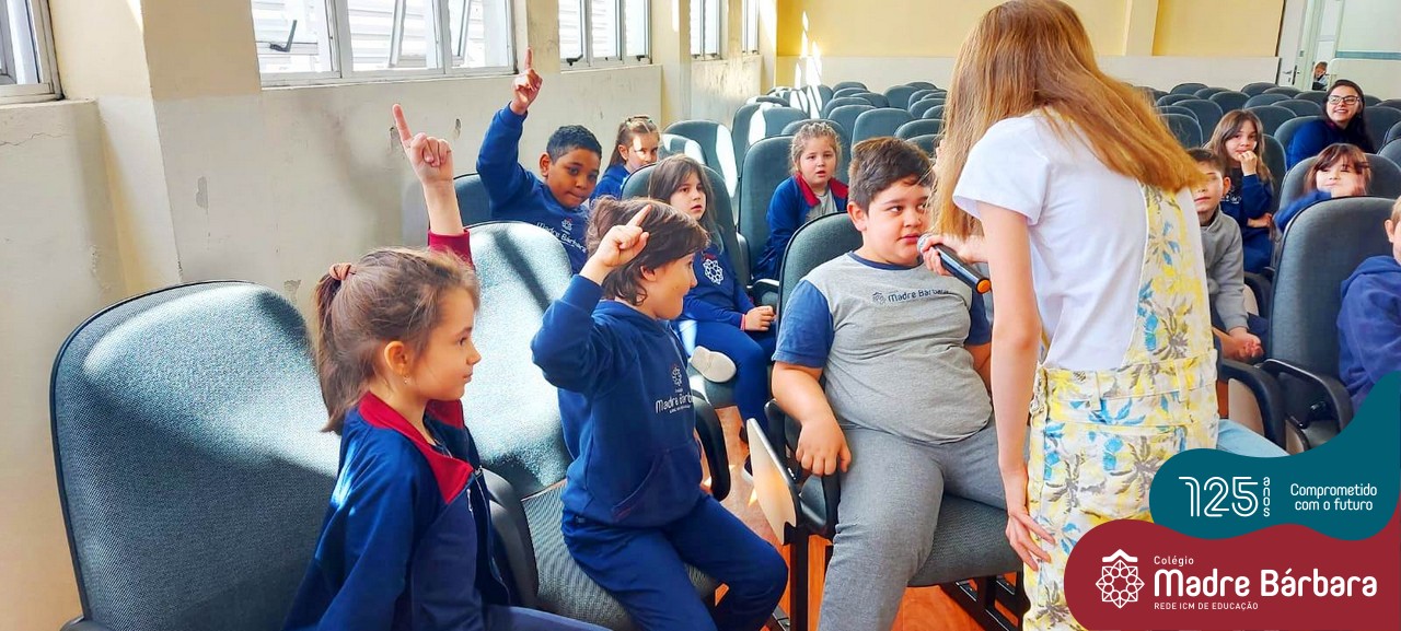 Os alunos dos Anos Iniciais do Colégio Madre Bárbara participaram no dia 09.11(quarta-feira), de um momento de contação de história com a Clarinha, a Tracinha. Ana Clara é aluna do 6º ano do colégio e é conhecida por sua paixão pelos livros e pela contação de histórias. Clarinha contou para os estudantes a história “Todos os meus sonhos” do escritor Ivan Zigg. Em uma narrativa cheia de encantos e magia, pela voz de Tracinha, os alunos refletiram sobre seus sonhos, sobre os sonhos que estão por toda a parte: no varal, no quintal, nos barquinhos…