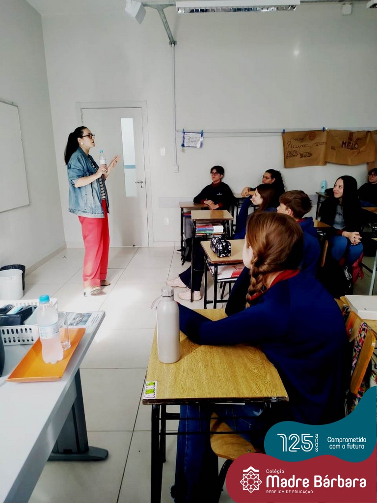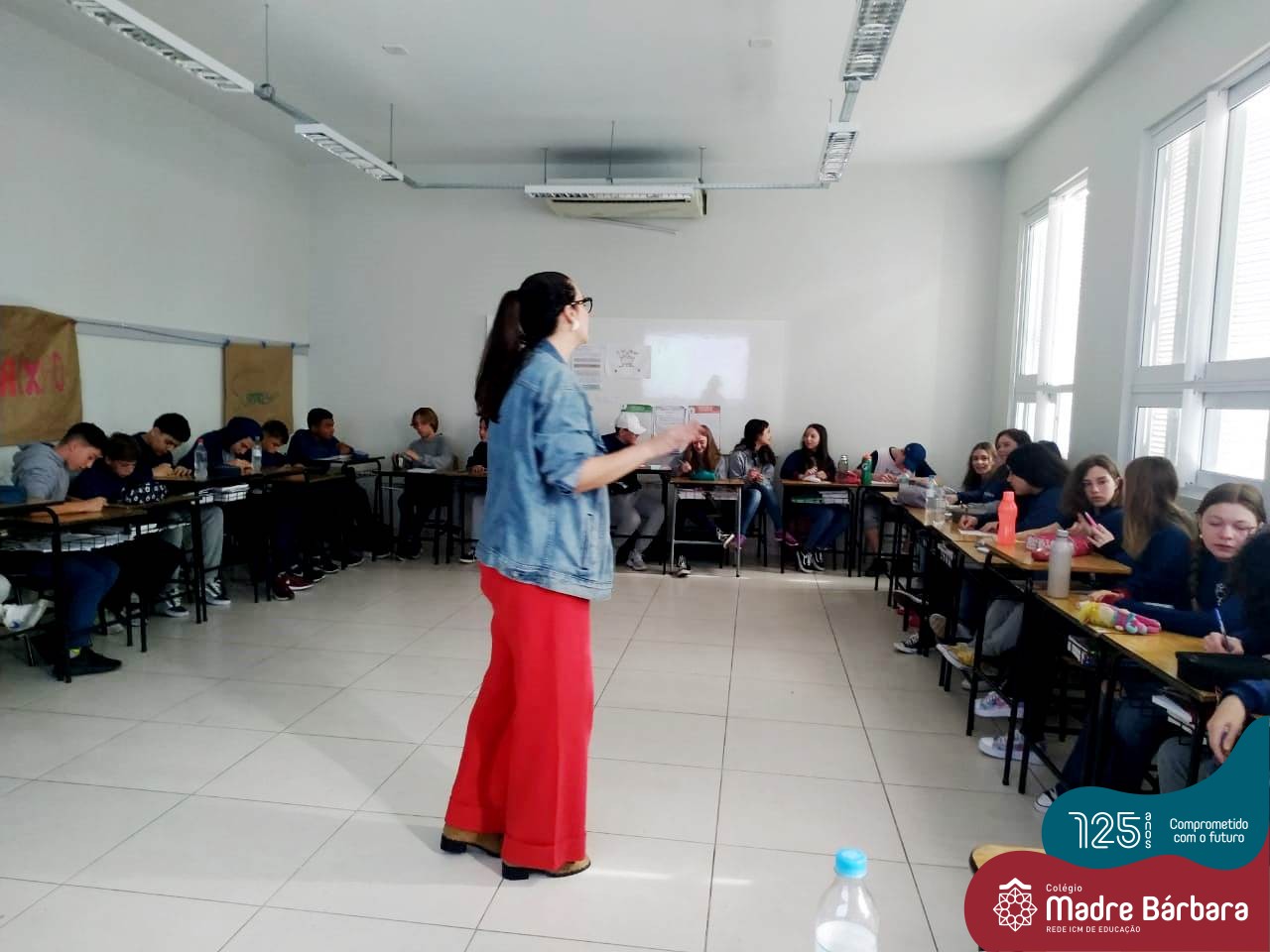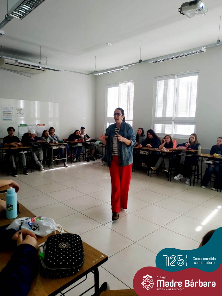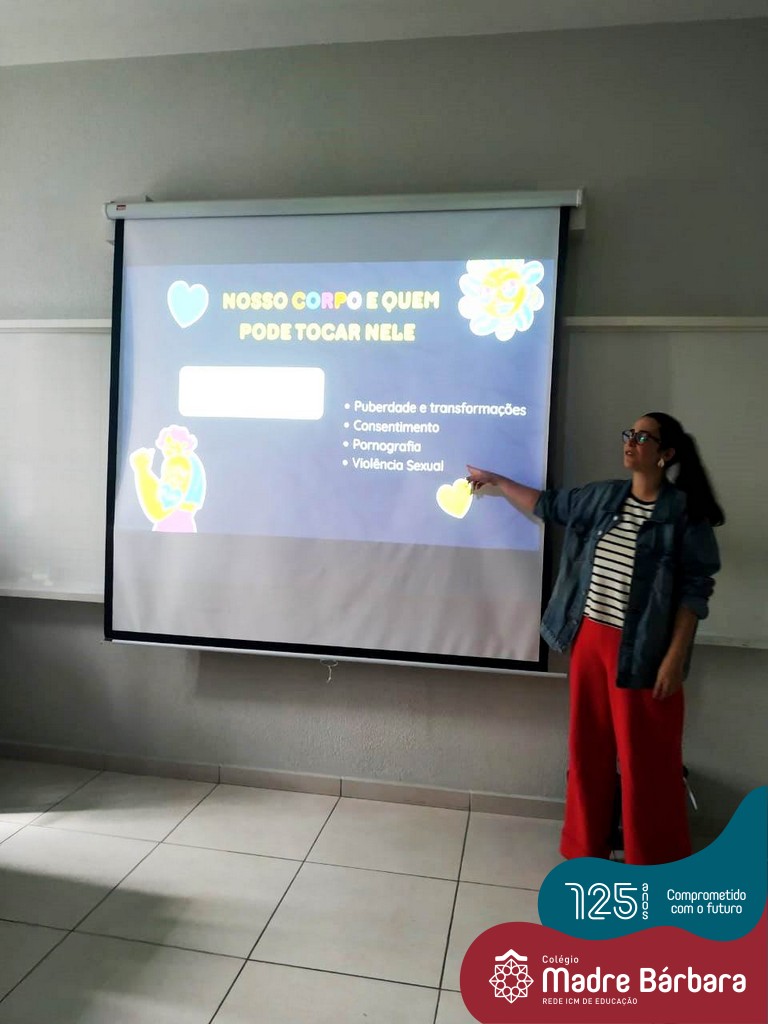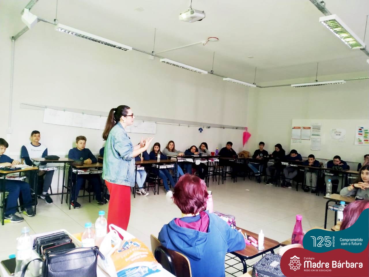 Roda de Conversa sobre Sexualidade na Adolescência, turmas 81 e 82 com a Psicóloga Natália Rissinger Bonotto, Mestra em Psicologia Social. Foram abordados os seguintes assuntos: Mudanças corporais e emocionais, respeito ao corpo, conceito de consentimento, masturbação como uma manifestação saudável do desenvolvimento.