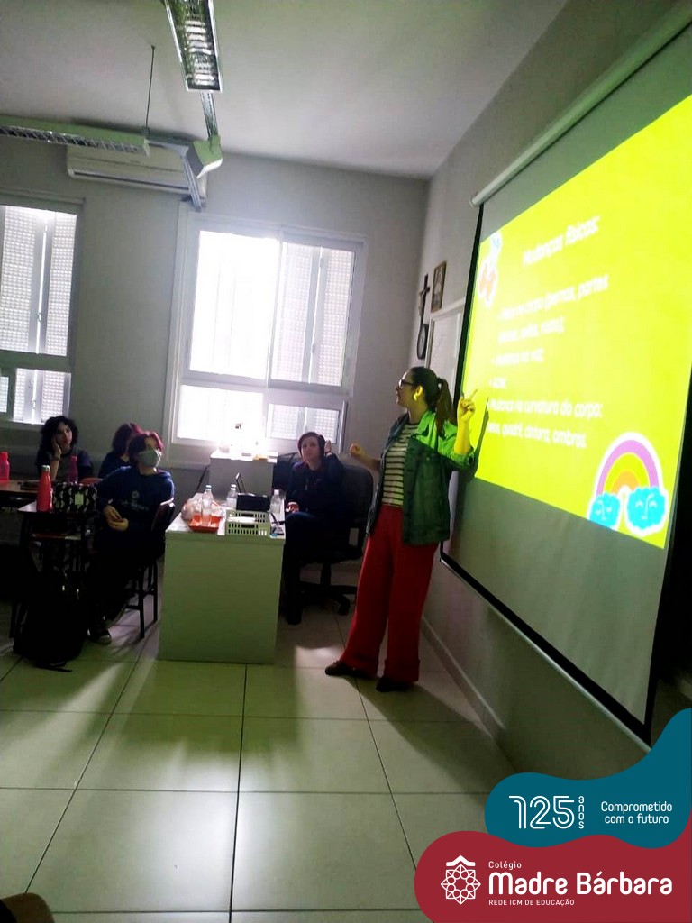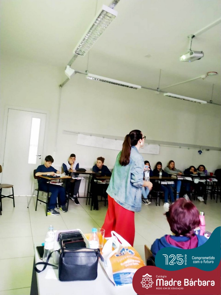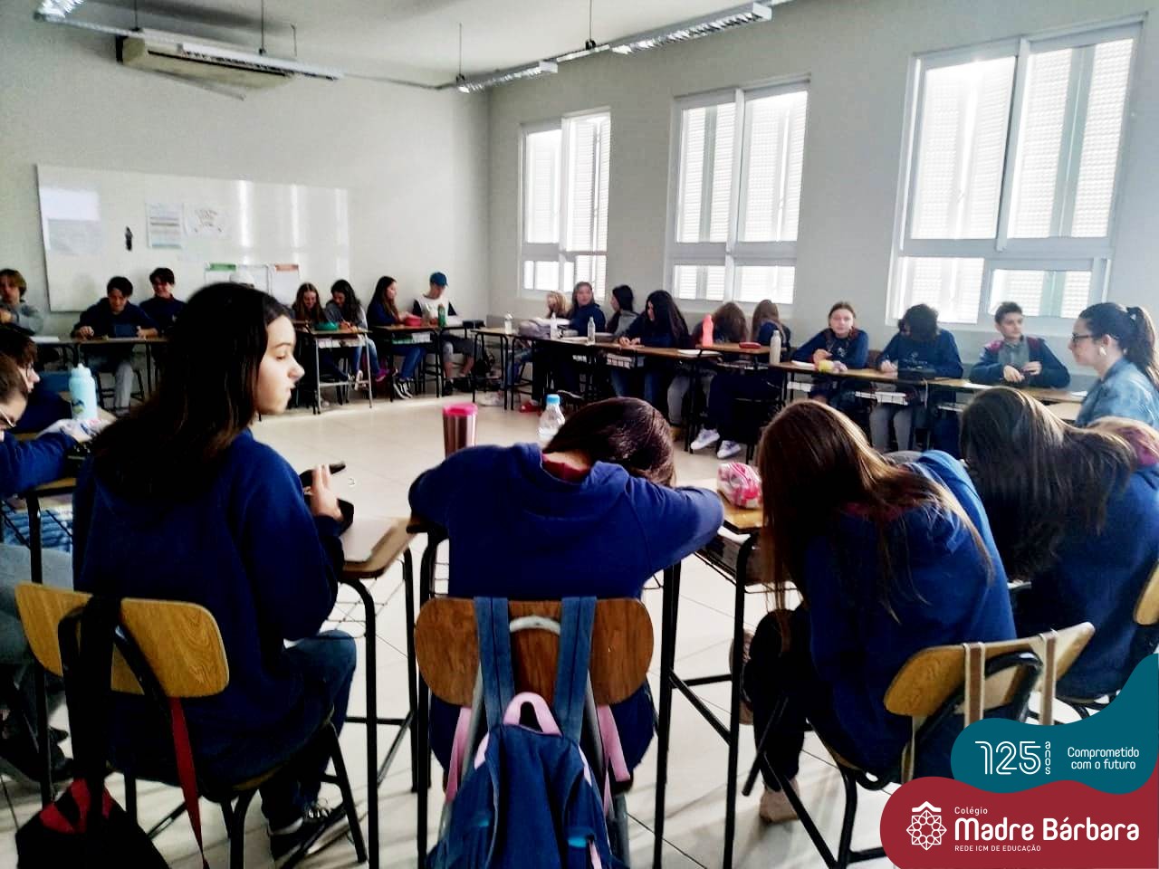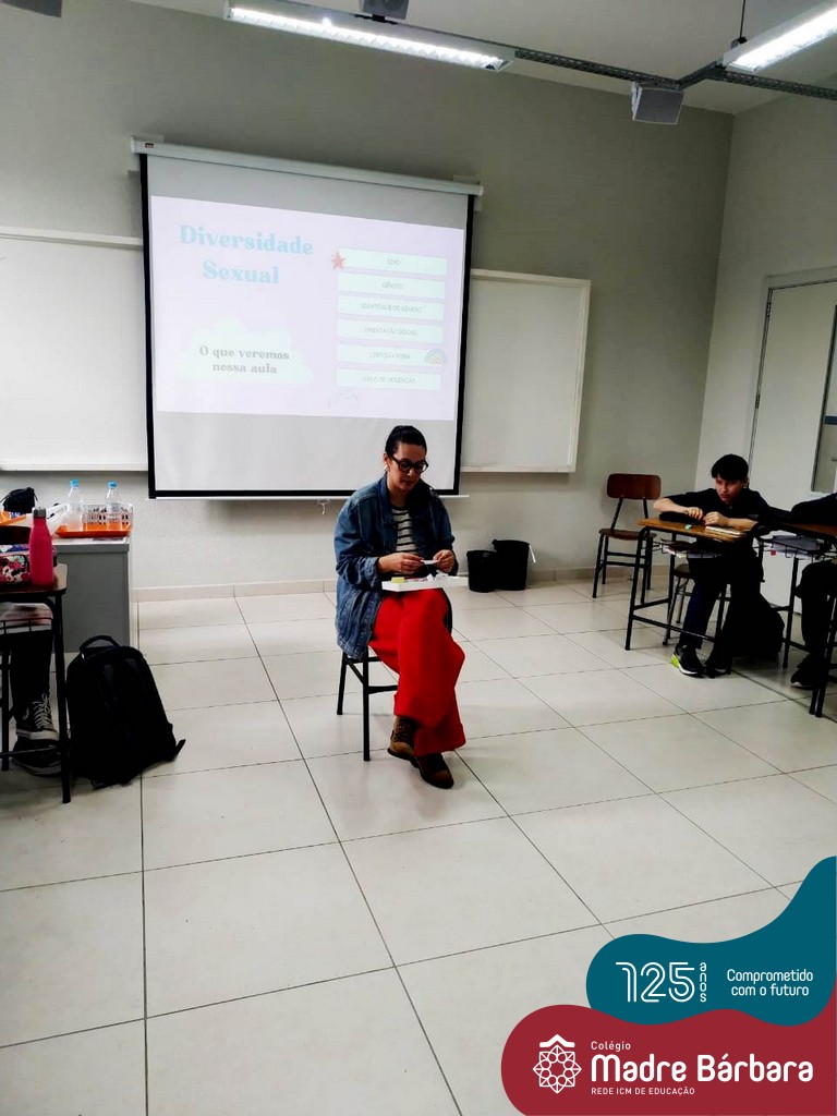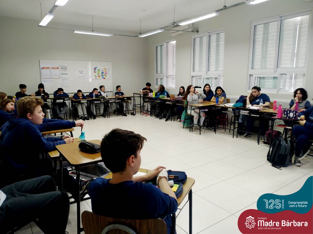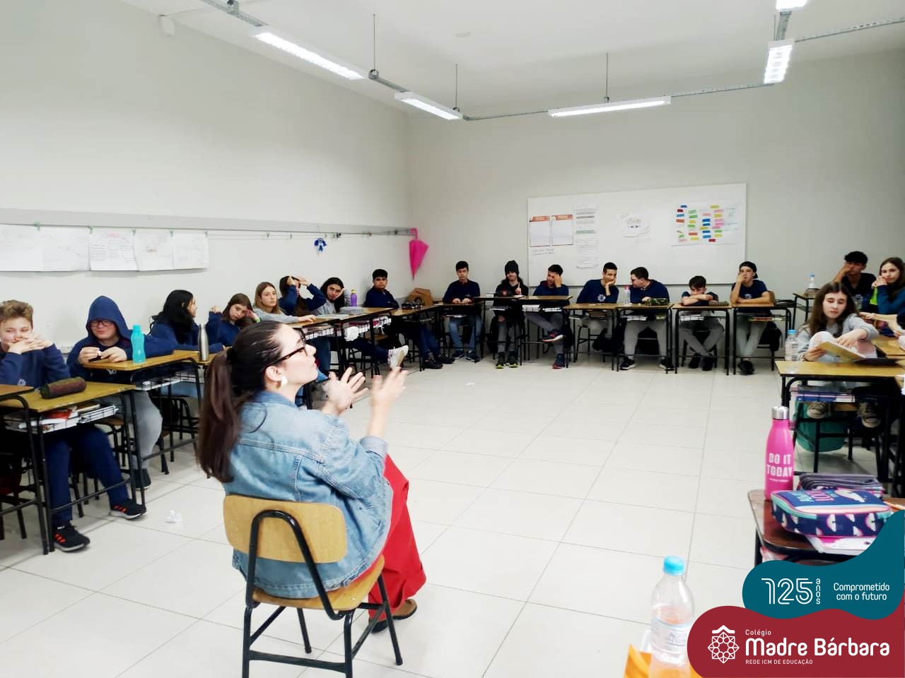 Roda de Conversa sobre Sexualidade na Adolescência, turmas 81 e 82 com a Psicóloga Natália Rissinger Bonotto, Mestra em Psicologia Social. Foram abordados os seguintes assuntos: Mudanças corporais e emocionais, respeito ao corpo, conceito de consentimento, masturbação como uma manifestação saudável do desenvolvimento.