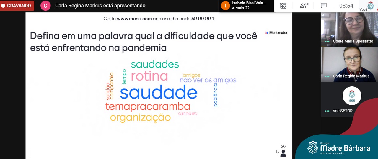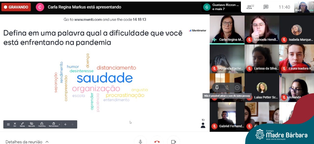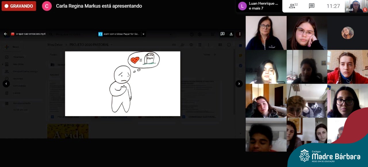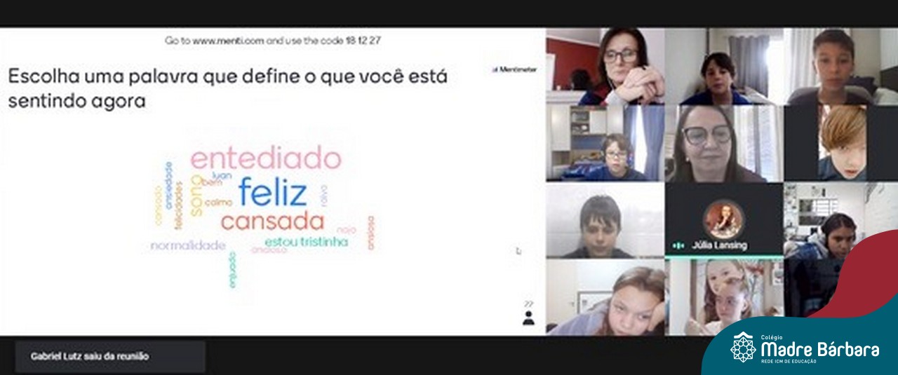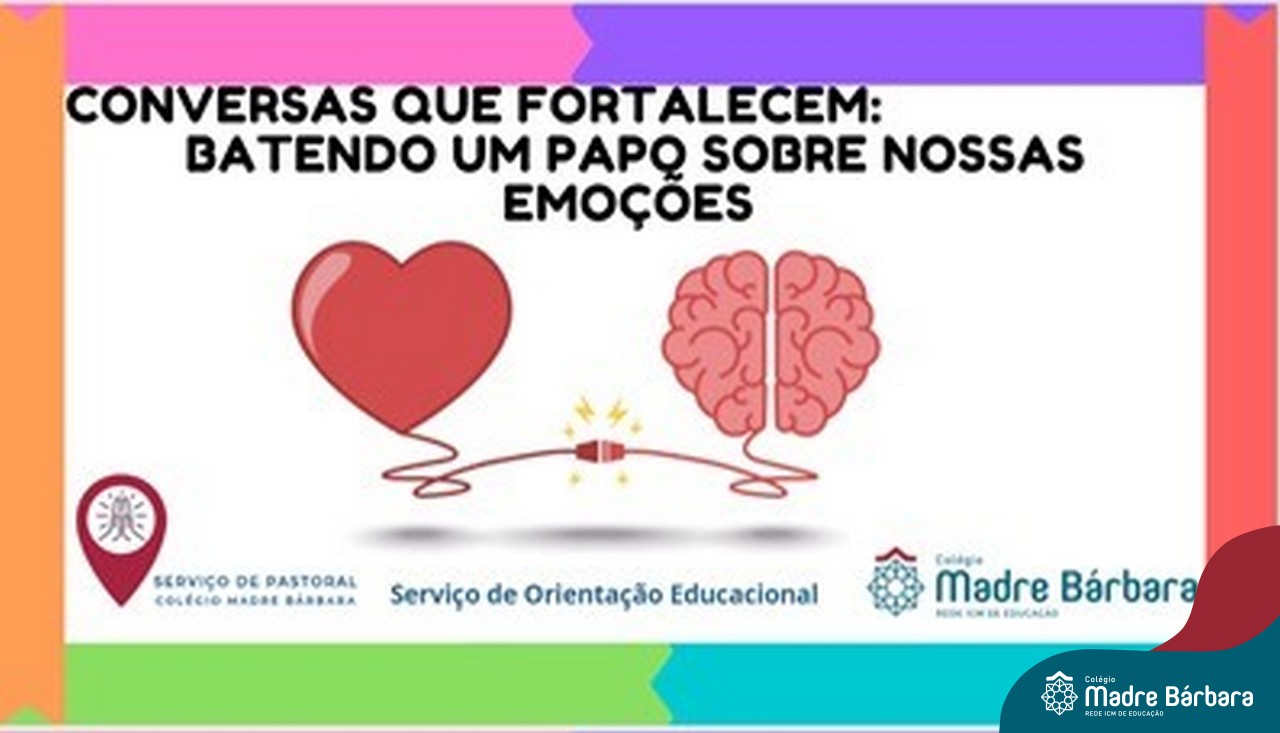 O Serviço de Orientação Educacional (SOE) e a Pastoral Escolar do Colégio Madre Bárbara – Rede ICM, realizou encontros online com todas as turmas do Ensino Fundamental – Anos Finais e Ensino Médio, contemplando atividades planejadas no Projeto “CONVERSAS QUE FORTALECEM: BATENDO UM PAPO SOBRE NOSSAS EMOÇÕES”. Tendo como foco o trabalho das competências socioemocionais, oportunizou-se um espaço aos alunos de conversas sobre as adversas situações que compactuam a nossa vida diária com a pandemia, a escuta dos educandos expressando suas emoções e sentimentos, como também, reflexões sobre regulação emocional, algumas técnicas e estratégias para reconhecer, identificar e controlar habilidades emocionais, afim de aproveitar as oportunidades que a vida nos traz, com sabedoria e resiliência.