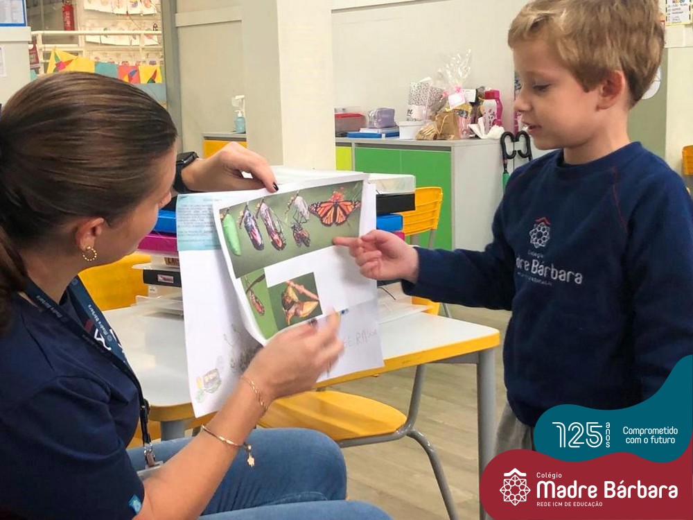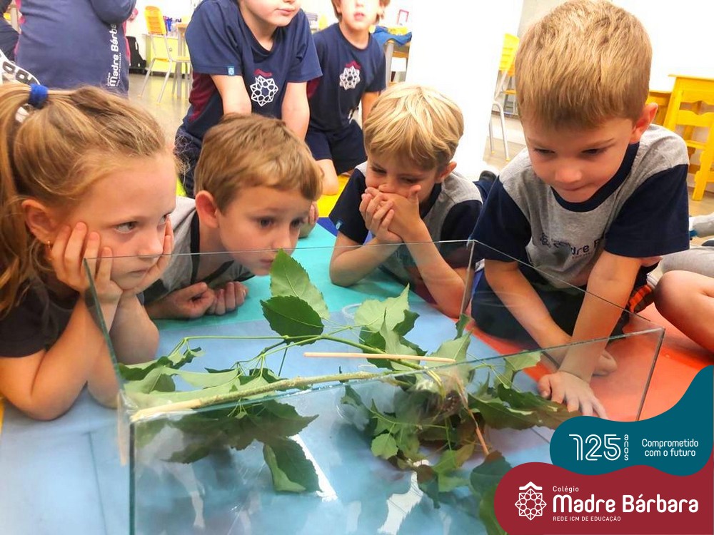 O mundo onde as crianças vivem se constitui em um conjunto de fenômenos naturais e estar diante de tais acontecimentos, despertou nos pequenos a curiosidade e o pensamento investigativo. A turma do Nível 5A, acompanhou o ciclo de vida das lagartas, a partir de algumas lagartas e casulos que foram trazidas para a escola por colegas da turma. Inúmeras situações foram oportunizadas às crianças, o estudo da vida e a metamorfose do inseto, o acompanhamento da transformação de lagarta para casulo, casulo para borboleta. O cuidado com a alimentação e o bem-estar dos pequenos animais também foi assunto de trabalho com as crianças. Na manhã da quinta-feira do dia 14 de abril, a turma teve a oportunidade de vivenciar uma situação de aprendizagem no Laboratório de Ciências do Colégio.