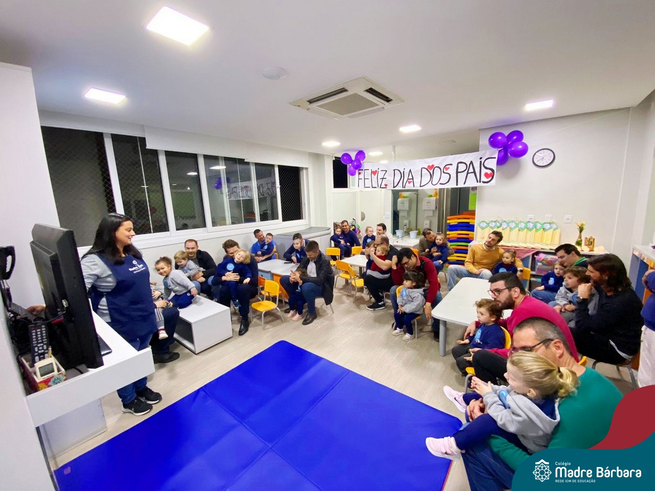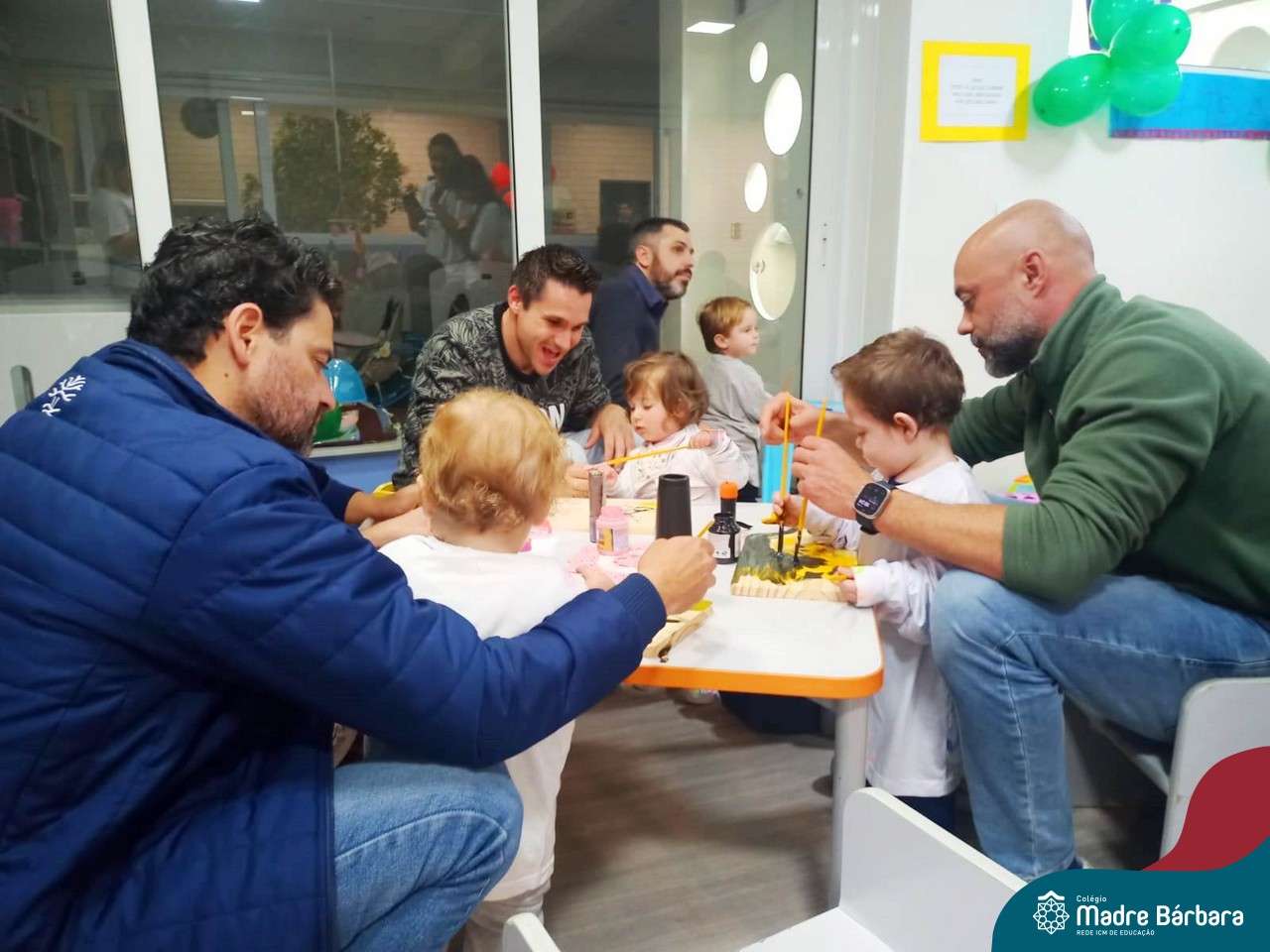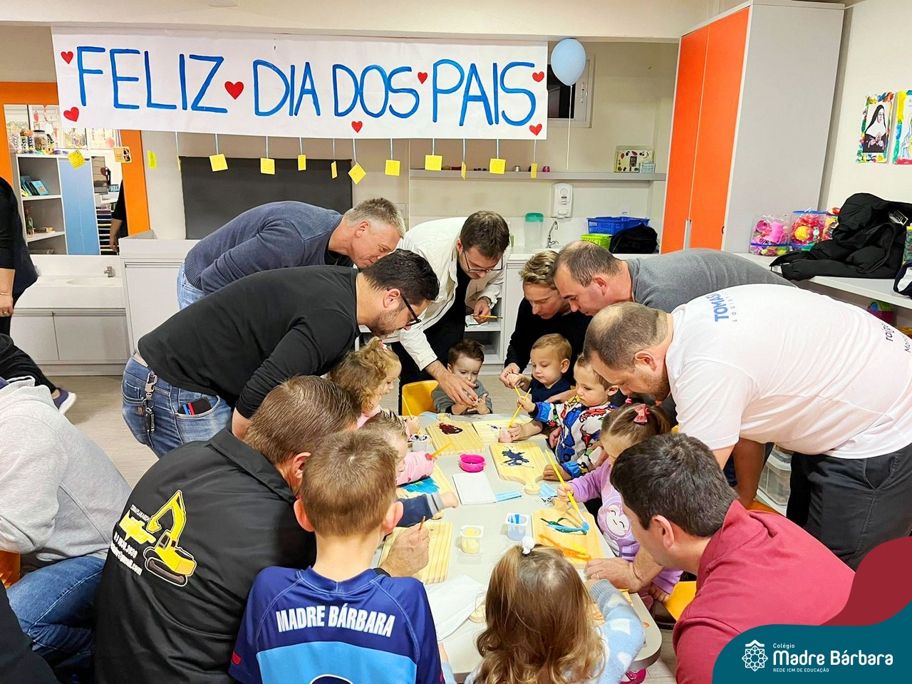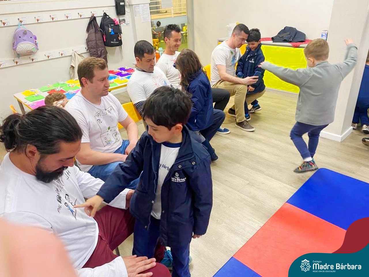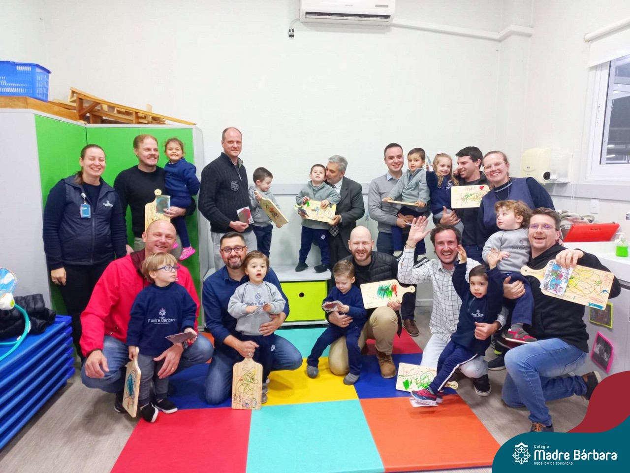 Nesta segunda-feira (14.08) nossos pequenos da Educação Infantil fizeram as homenagens para os papais. Foram diversas dinâmicas de integração entre os pais e filhos(as), que confeccionaram trabalhos e presentes juntos, curtindo momentos cheios de carinho e amor, do jeitinho que eles amam, grudadinhos! Papais, vocês são essenciais e foi muito especial contar com a presença de vocês. Que sempre seja um Feliz Dia dos Pais para todos!