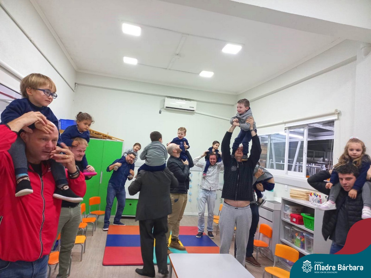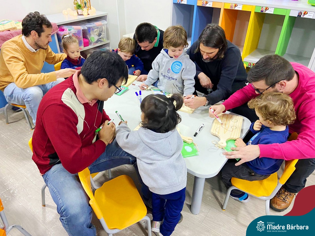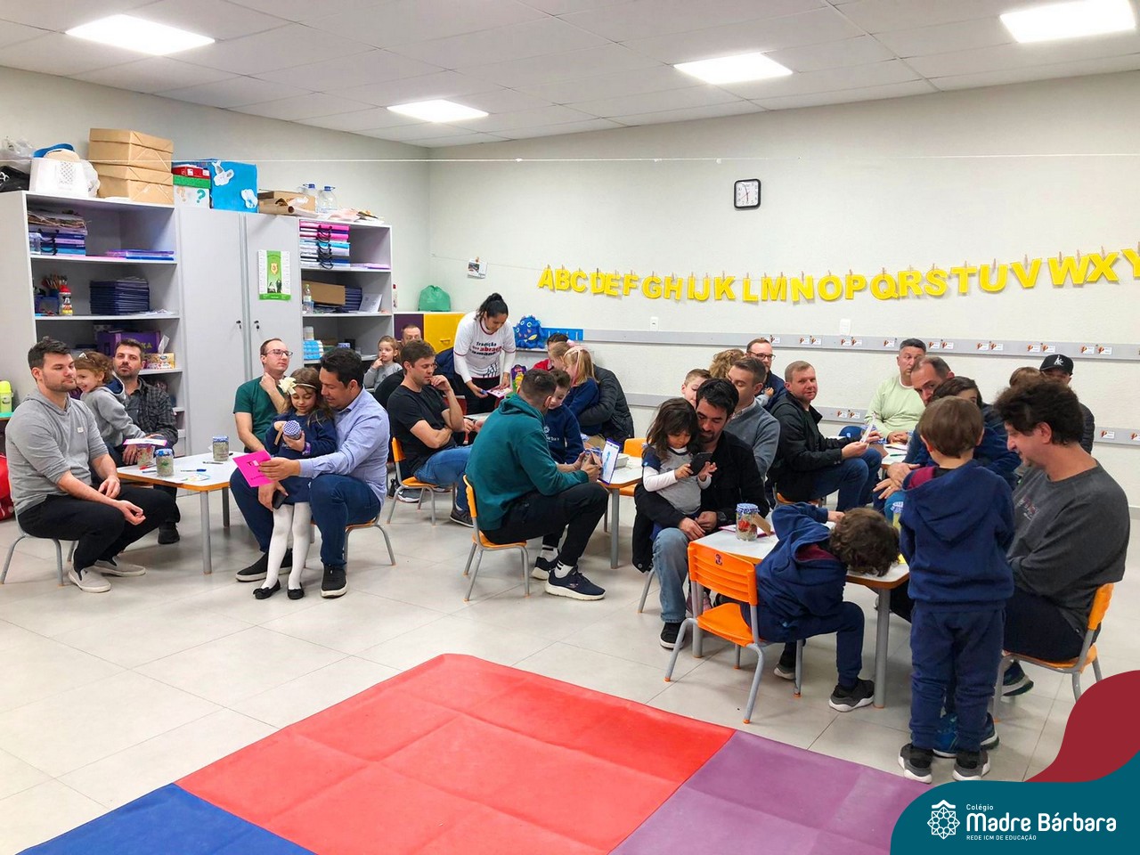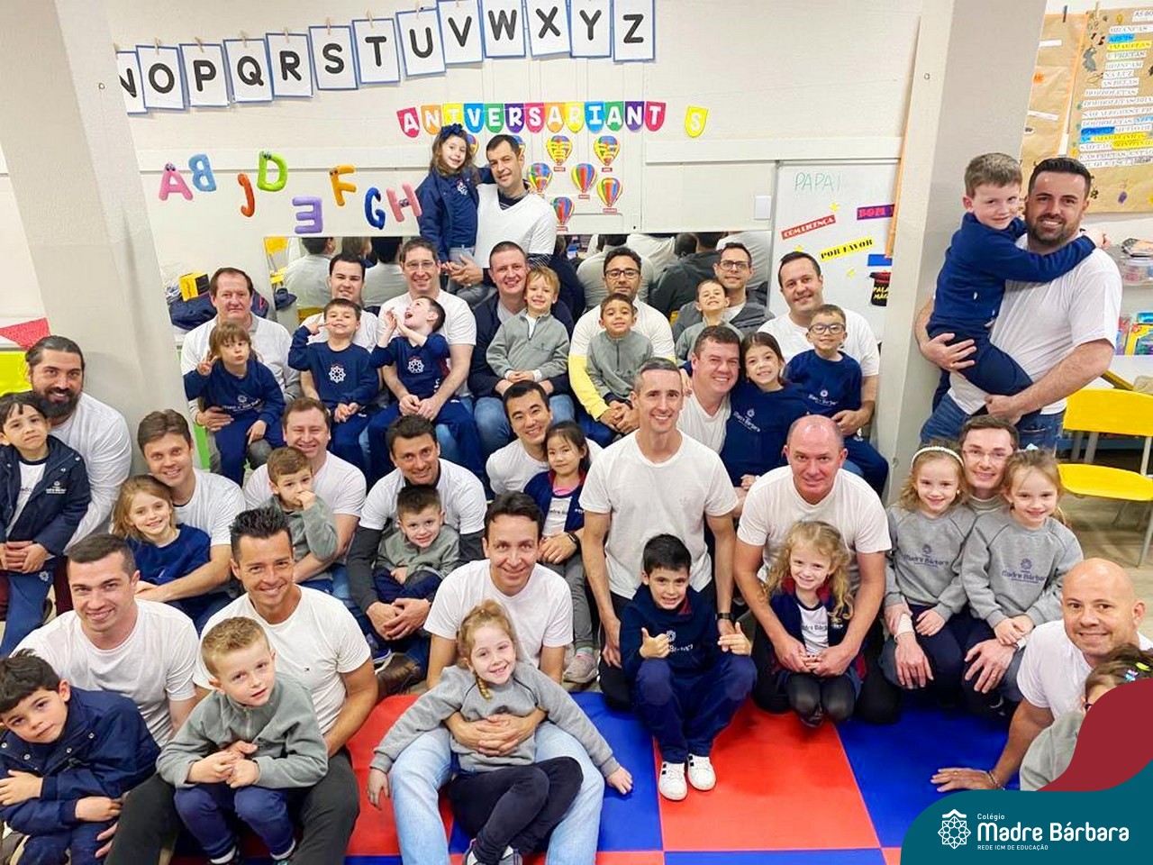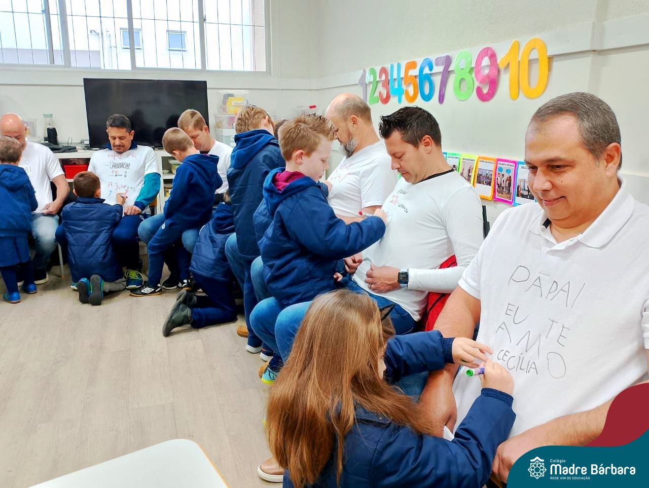 Nesta segunda-feira (14.08) nossos pequenos da Educação Infantil fizeram as homenagens para os papais. Foram diversas dinâmicas de integração entre os pais e filhos(as), que confeccionaram trabalhos e presentes juntos, curtindo momentos cheios de carinho e amor, do jeitinho que eles amam, grudadinhos! Papais, vocês são essenciais e foi muito especial contar com a presença de vocês. Que sempre seja um Feliz Dia dos Pais para todos!