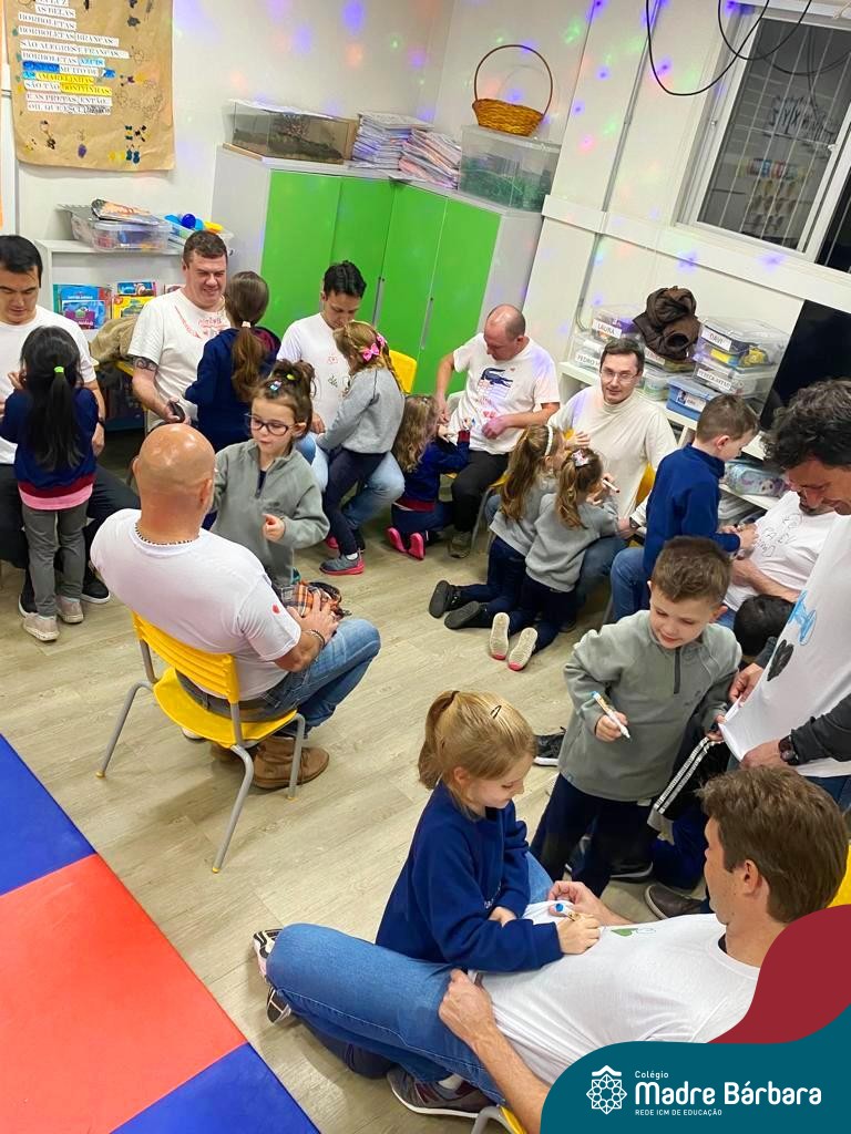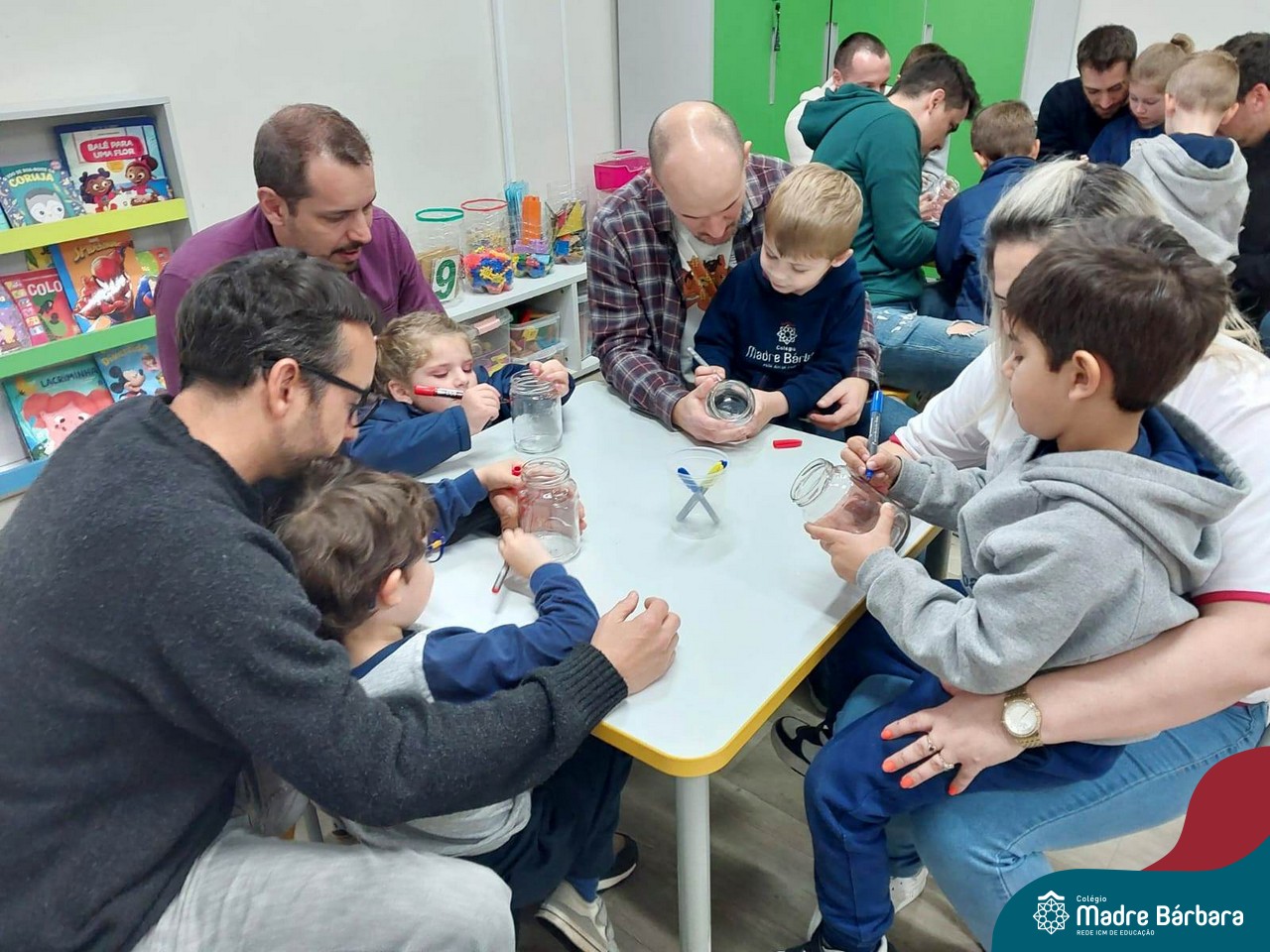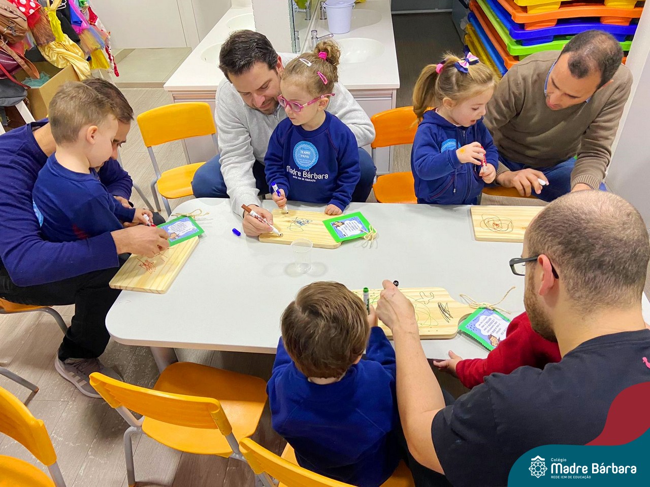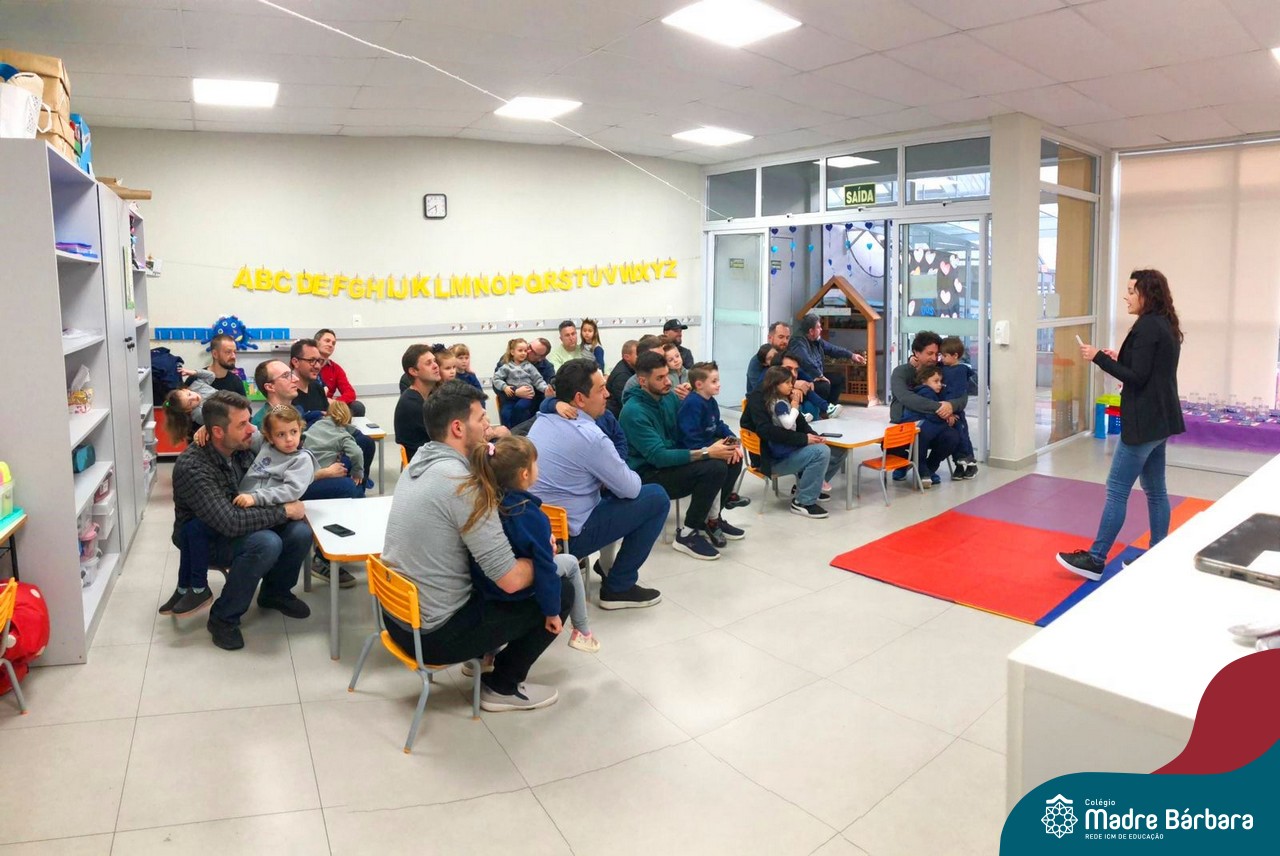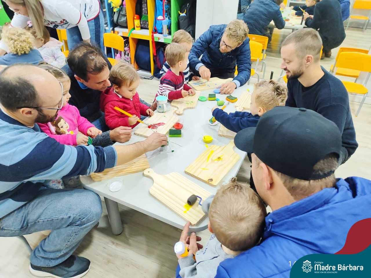 Nesta segunda-feira (14.08) nossos pequenos da Educação Infantil fizeram as homenagens para os papais. Foram diversas dinâmicas de integração entre os pais e filhos(as), que confeccionaram trabalhos e presentes juntos, curtindo momentos cheios de carinho e amor, do jeitinho que eles amam, grudadinhos! Papais, vocês são essenciais e foi muito especial contar com a presença de vocês. Que sempre seja um Feliz Dia dos Pais para todos!