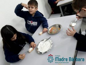 Na tarde de quinta-feira, 27 de junho, os níveis 4 e 5 do Turno Extracurricular tiveram um momento de culinária. Após a contação de história “O homem-biscoito”, as crianças confeitaram um biscoito com merengue e confeitos, se deliciaram com suas produções e ainda puderam levar uma pequena amostra para casa.