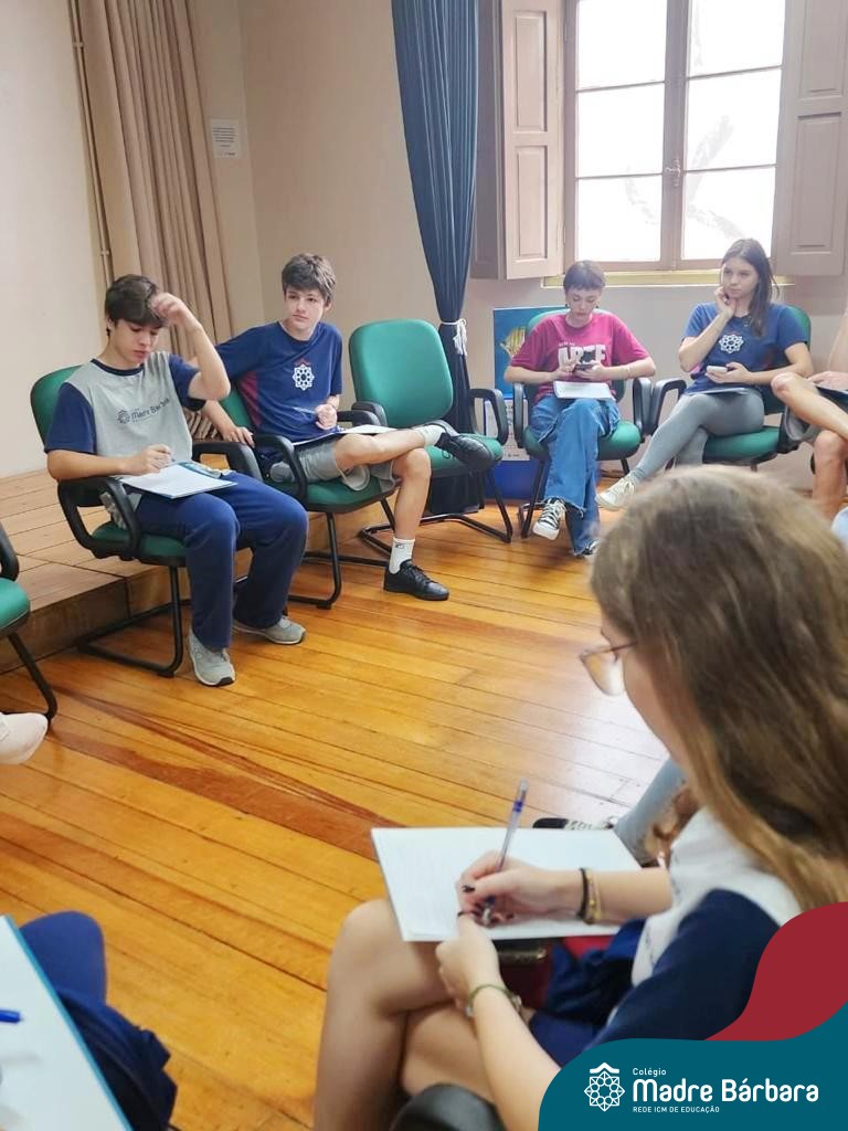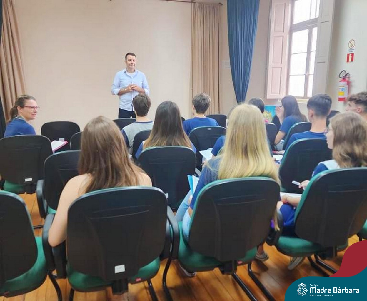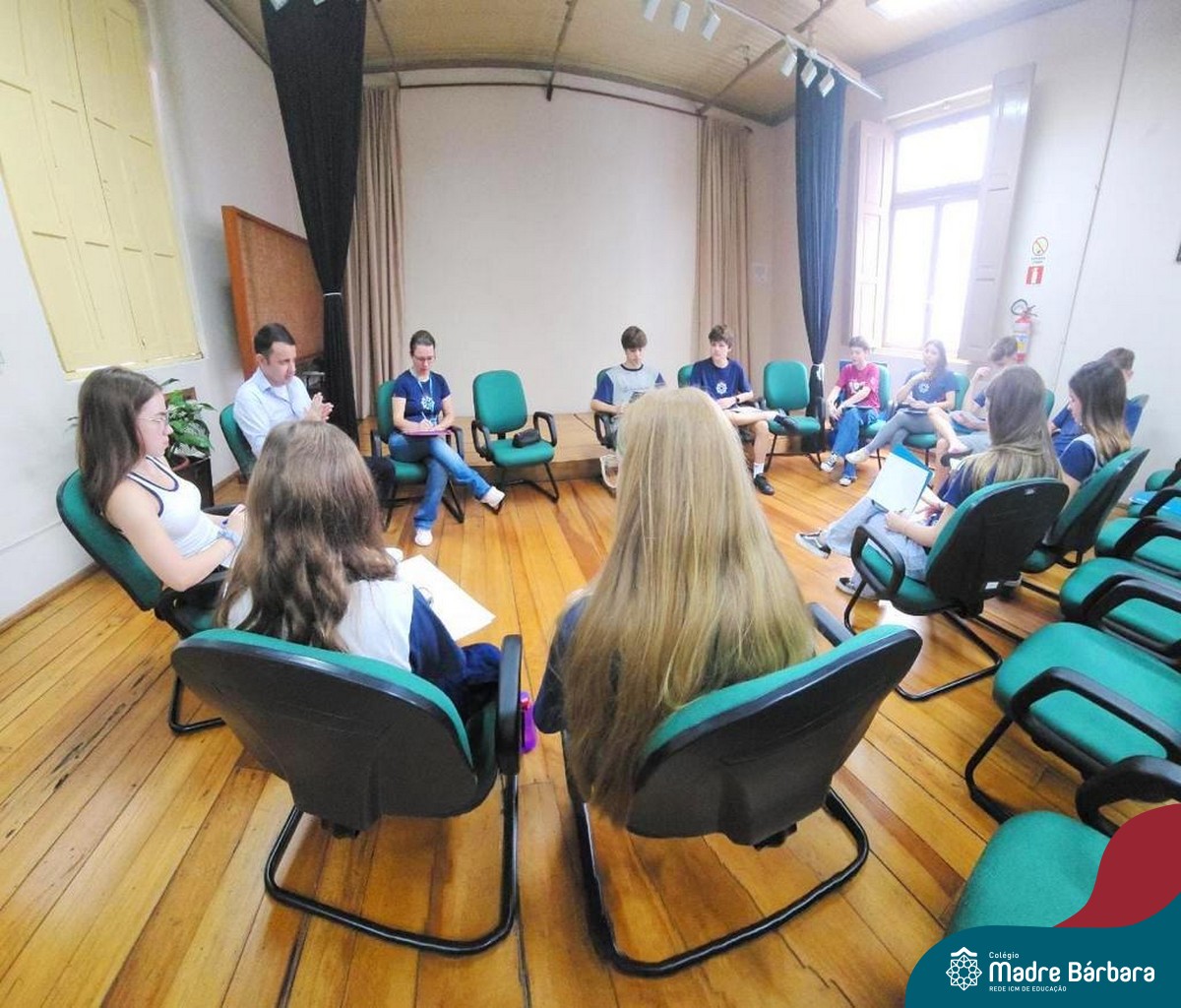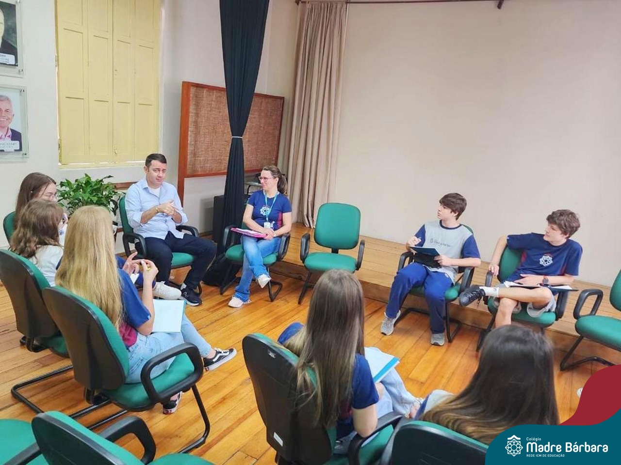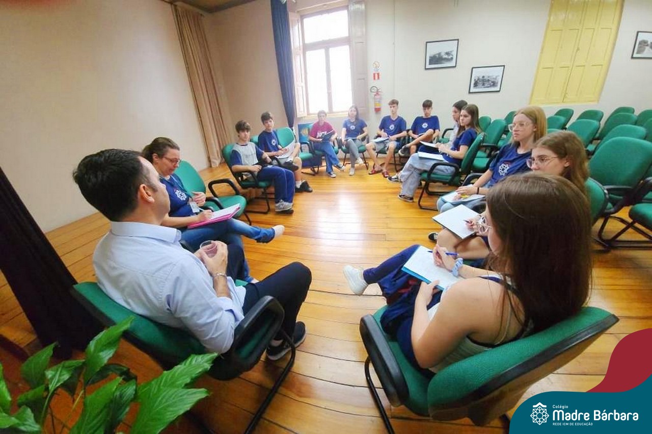 A roda de conversa entre estudantes do 2º ano do Ensino Médio do Colégio Madre Bárbara – Rede ICM e o Secretário da Secretaria da Cultura, Esporte e Lazer de Lajeado (SECEL), o senhor Carlos Rodrigo Reckziegel, no formato de entrevista semiestruturada, foi uma estratégia didática proposta na disciplina Eletiva Cultura e Identidade, ministrada pela professora Juciane Sehn da Silva, e teve por objetivo conhecer o funcionamento da SECEL, investigar as políticas públicas de fomento à cultura no município e verificar de que modo o patrimônio cultural tem sido identificado, resguardado e preservado. Buscou-se saber também de que formas grupos migrantes, refugiados, indígenas e quilombolas são contemplados em sua diversidade nas políticas culturais do município.