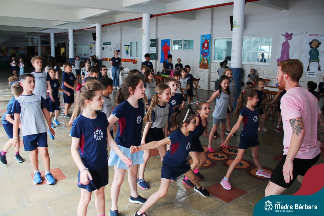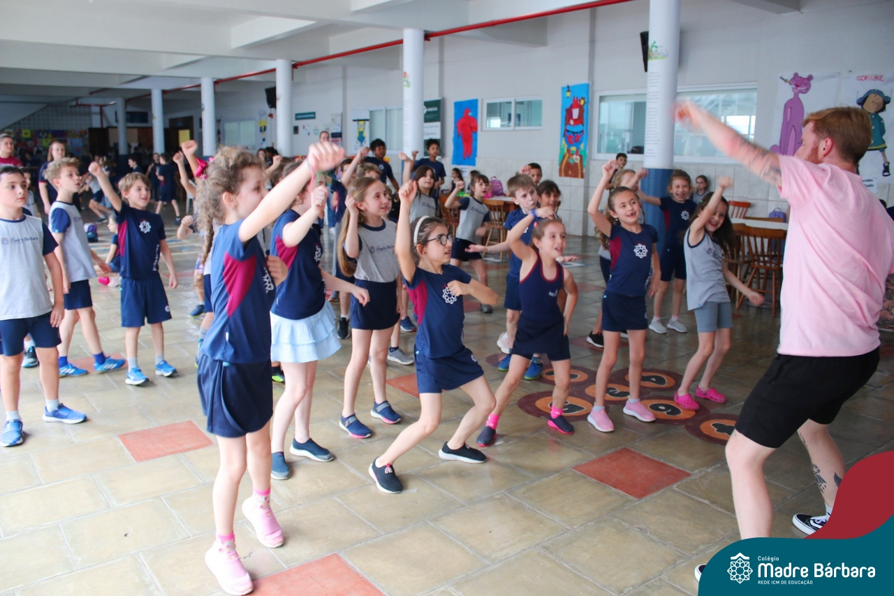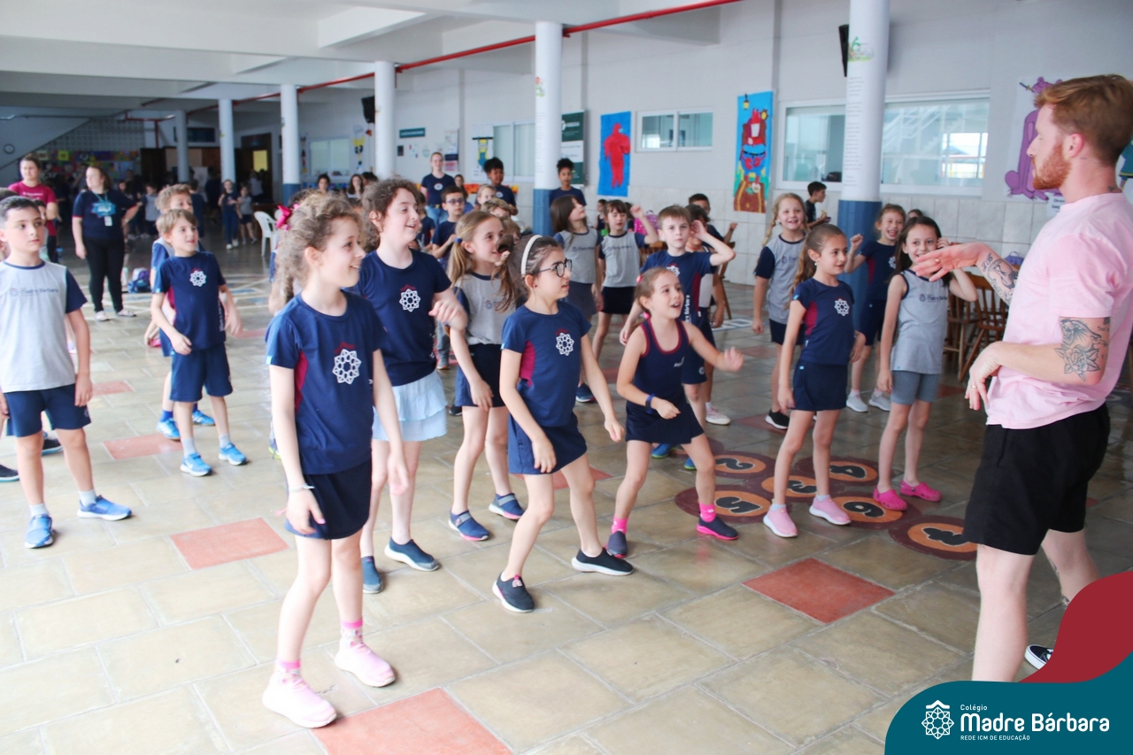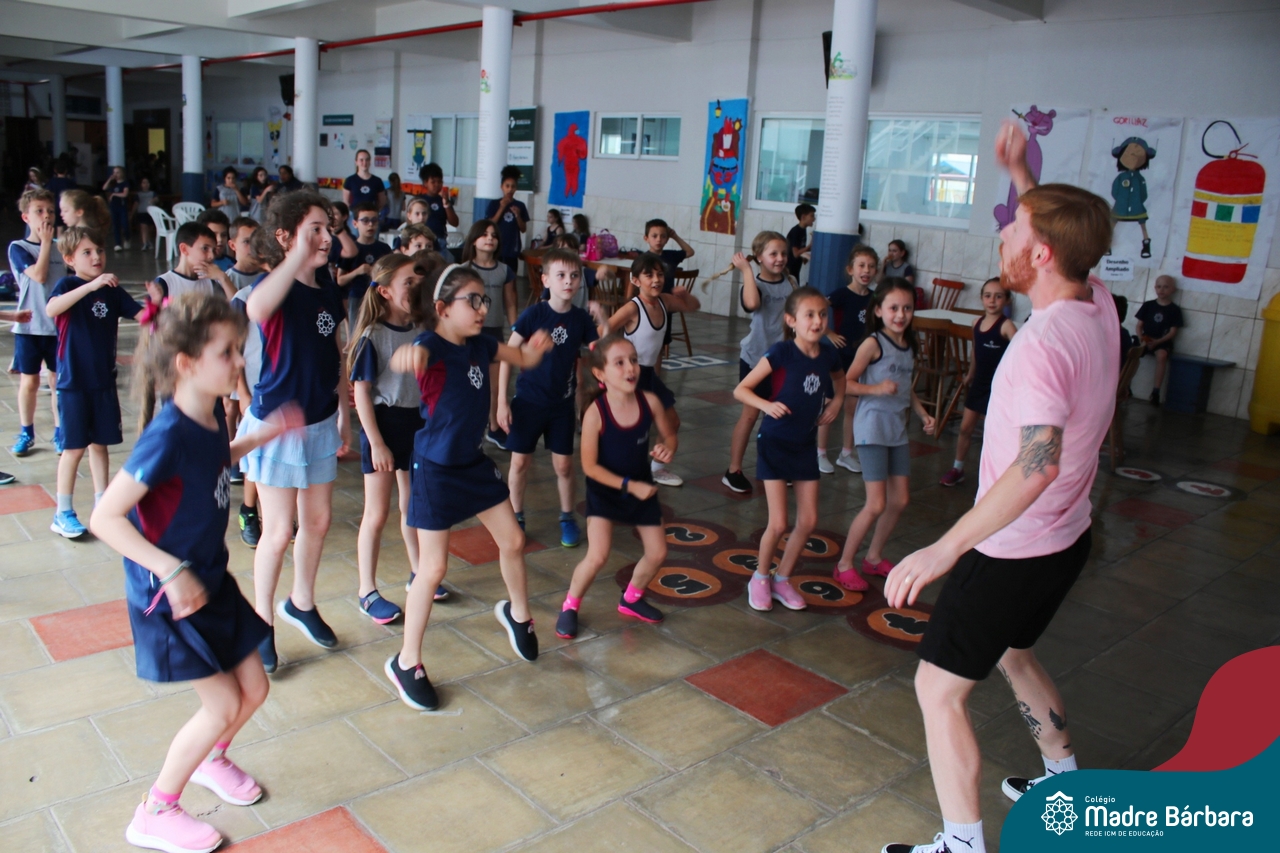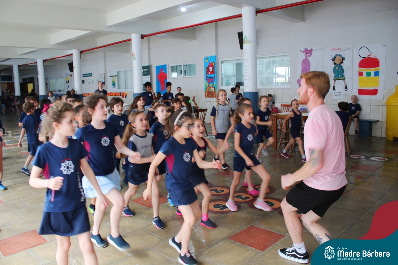 Ainda celebrando o Mês das Crianças do Ensino Fundamental – Anos Iniciais, o turno da tarde recebeu nesta segunda-feira (21.10) o professor de dança da Escola de Dança Empire, Alexandre Bitdinger, que realizou uma Oficina de Dança Kids no recreio, onde puderam dançar e aprender uns passos. As crianças adoraram!