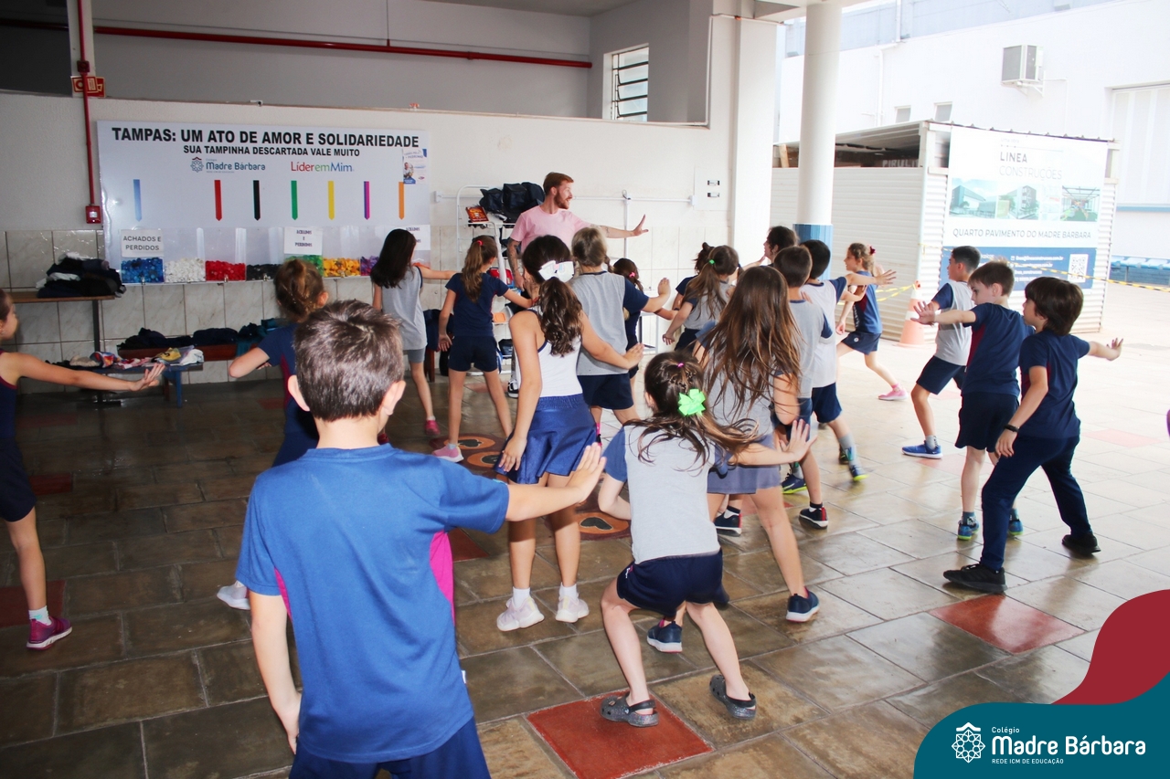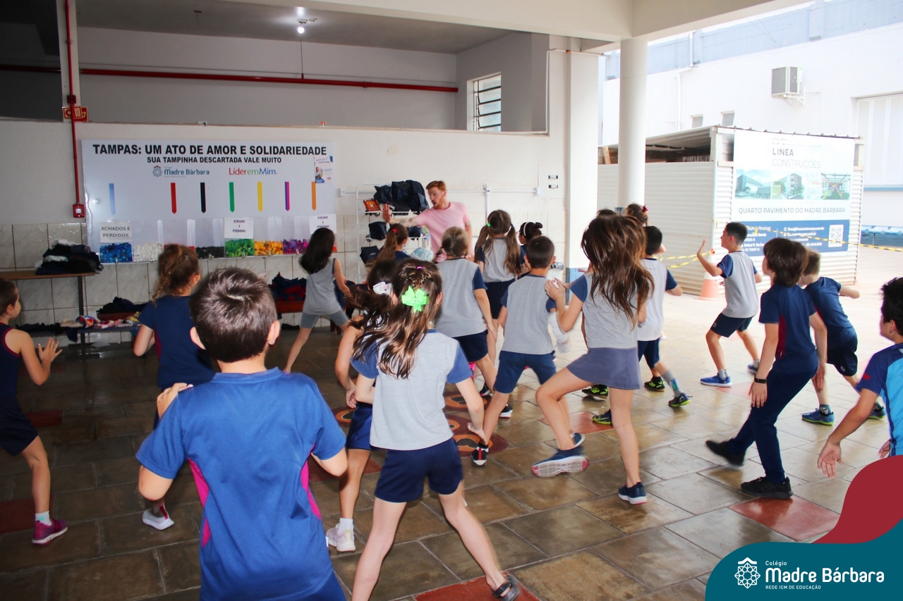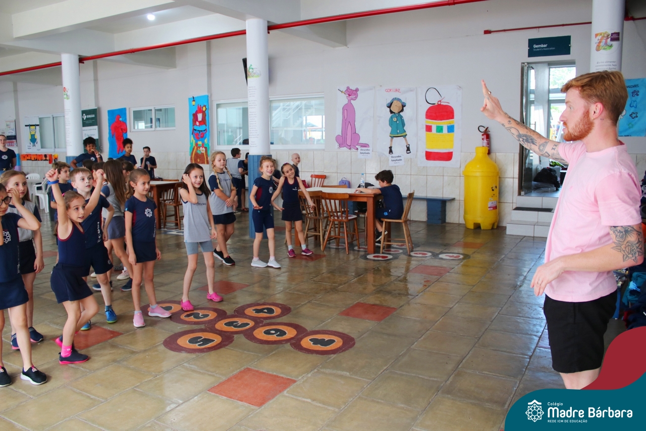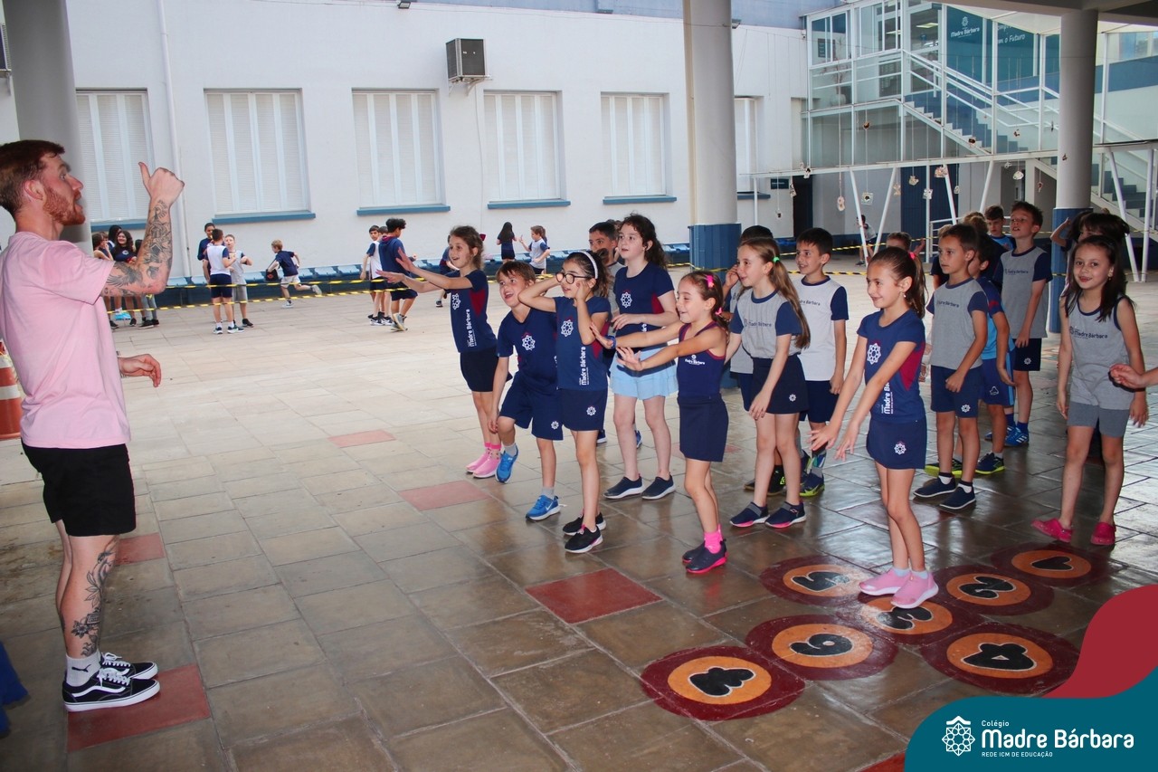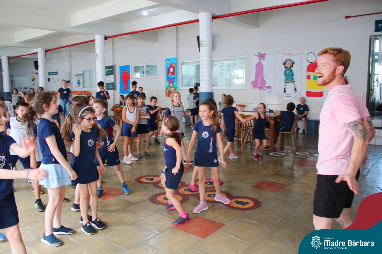 Ainda celebrando o Mês das Crianças do Ensino Fundamental – Anos Iniciais, o turno da tarde recebeu nesta segunda-feira (21.10) o professor de dança da Escola de Dança Empire, Alexandre Bitdinger, que realizou uma Oficina de Dança Kids no recreio, onde puderam dançar e aprender uns passos. As crianças adoraram!
