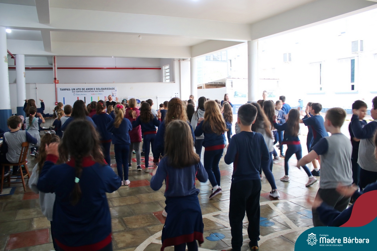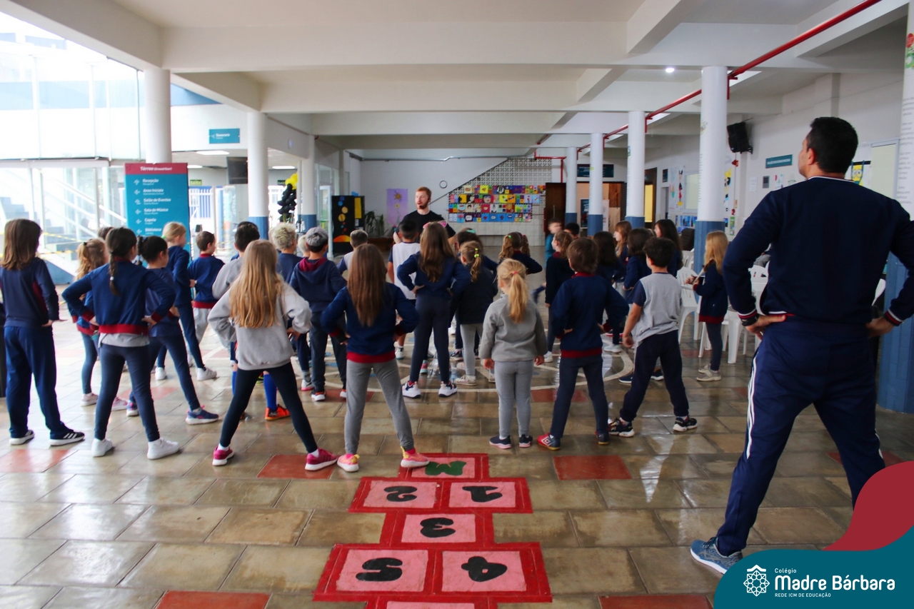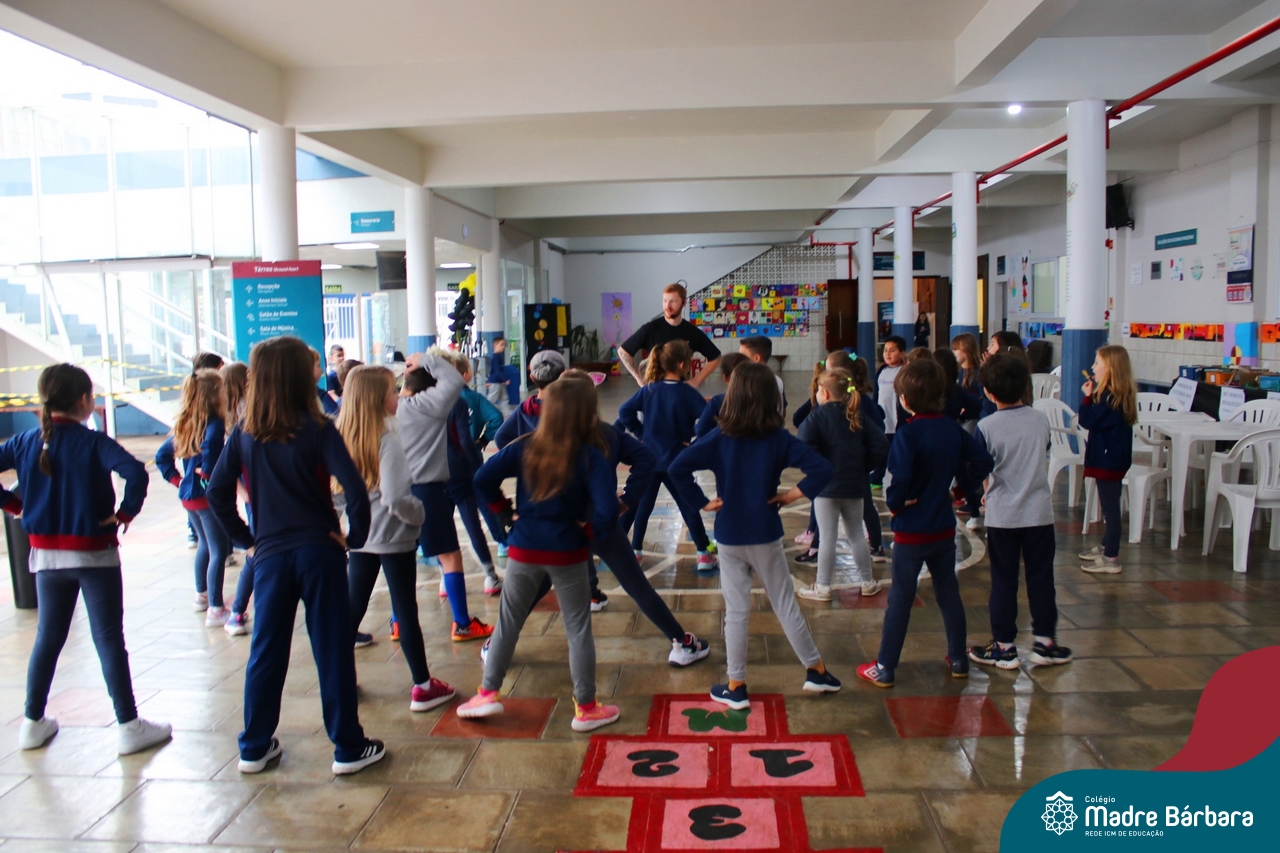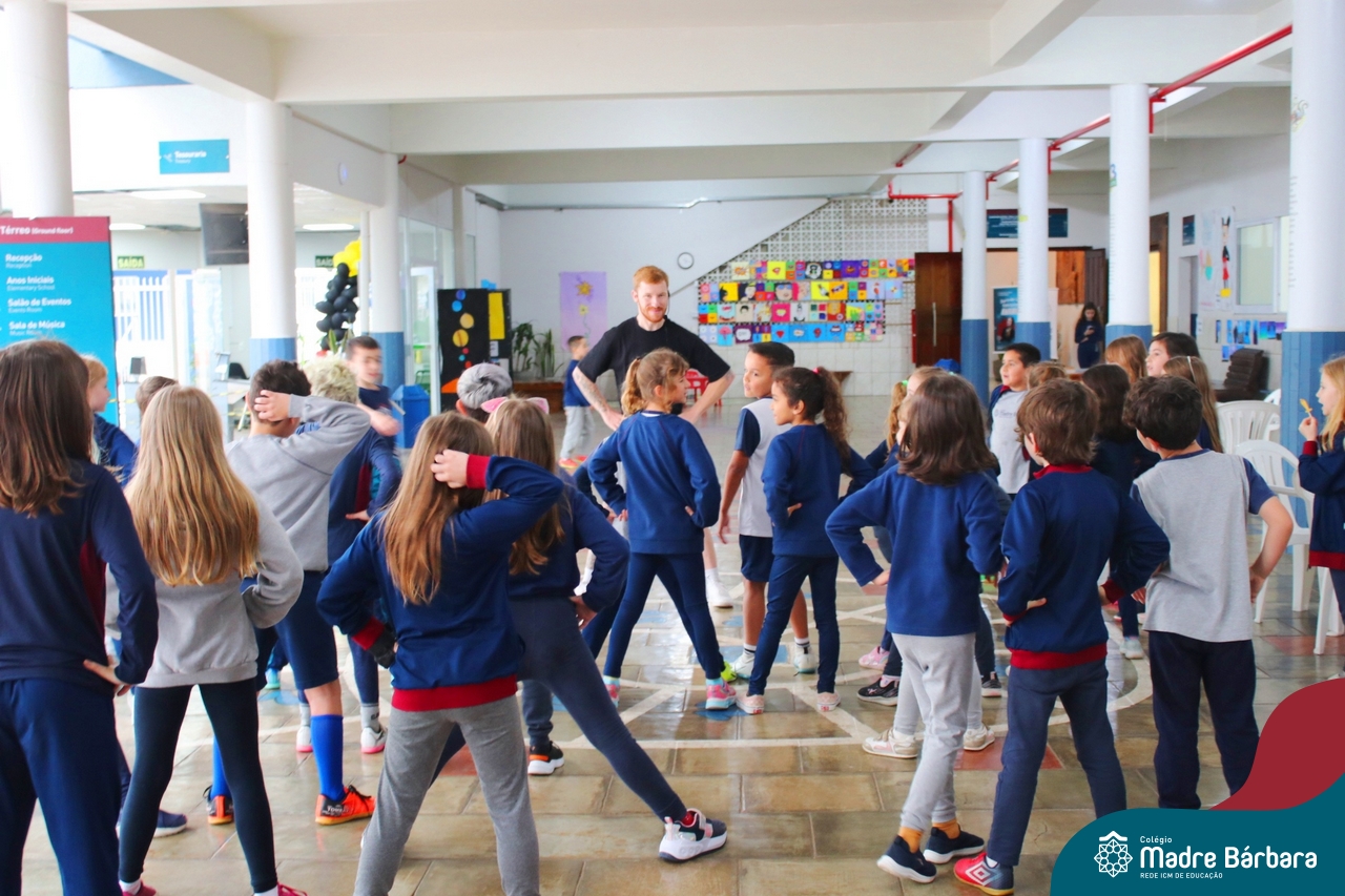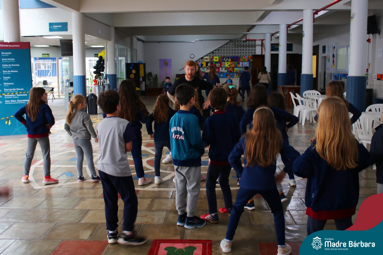 As crianças do Ensino Fundamental – Anos Iniciais – Turno da manhã (10.10) puderam dançar muito no recreio com o professor de dança da Escola de Dança Empire, Alexandre Bitdinger, que esteve mostrando uns passos e fazendo a galera se mexer. A oficina de dança foi uma das atrações do Mês da Criança.