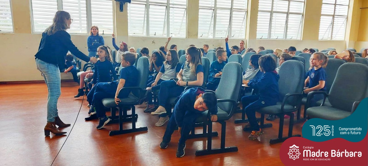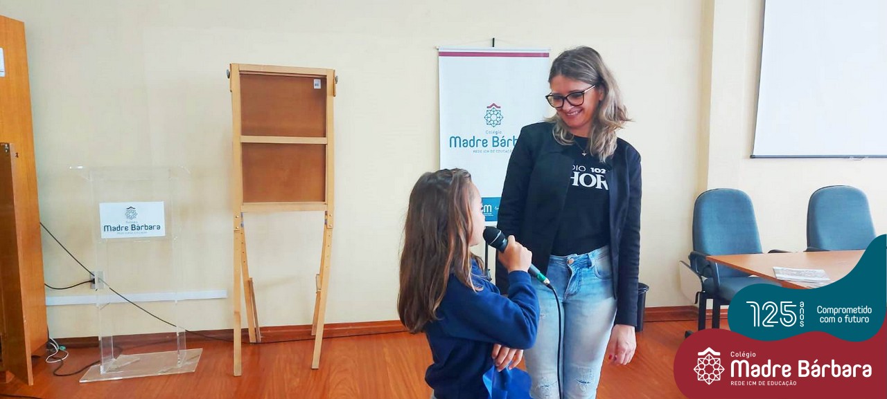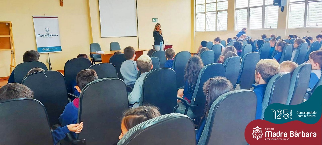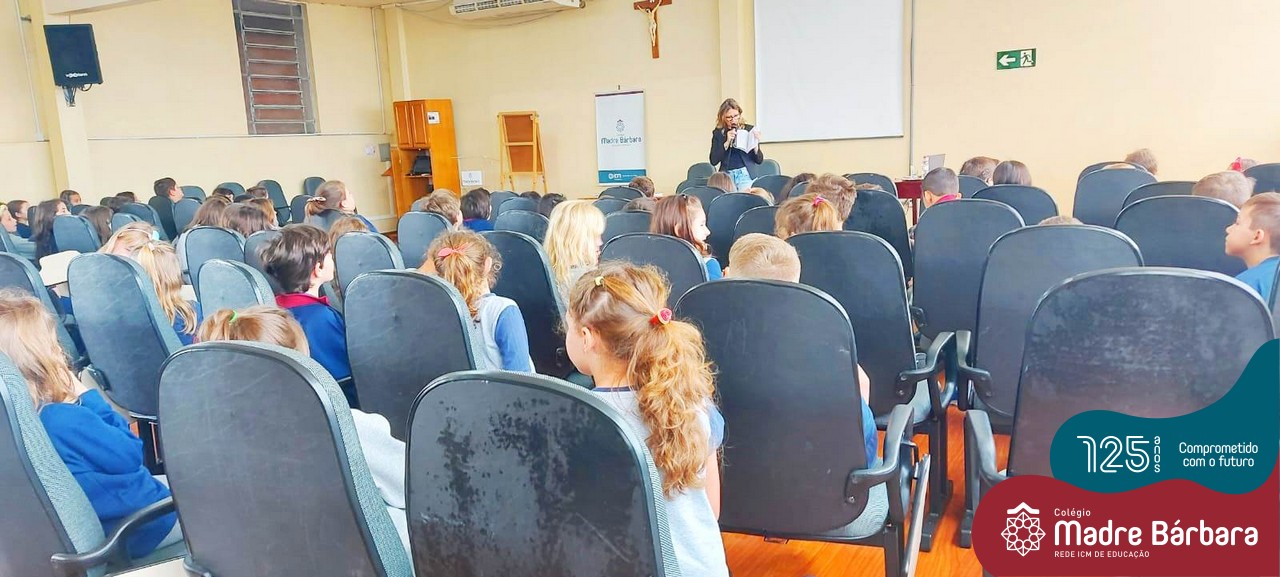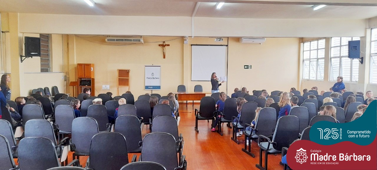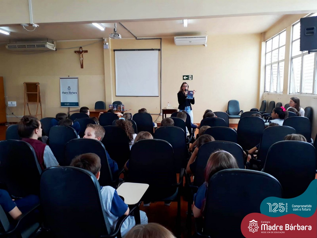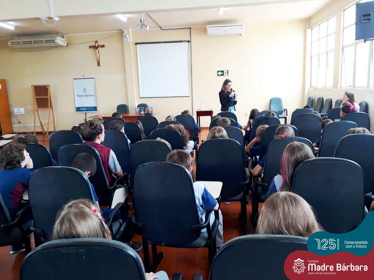 No dia 24.10, as turmas dos Segundos Anos do Colégio Madre Bárbara, juntamente com suas professoras, participaram de um momento muito especial com a comunicadora Lisiane Costa da Silva.