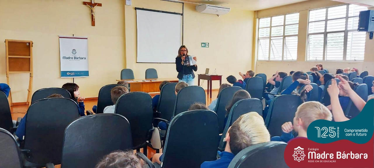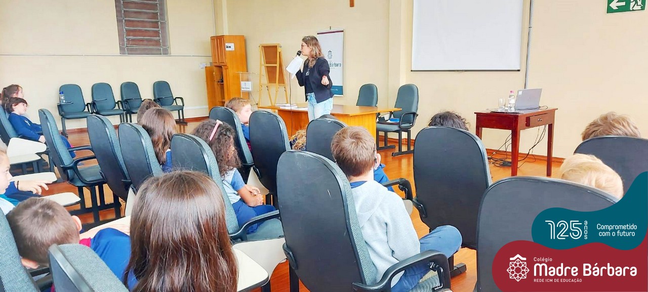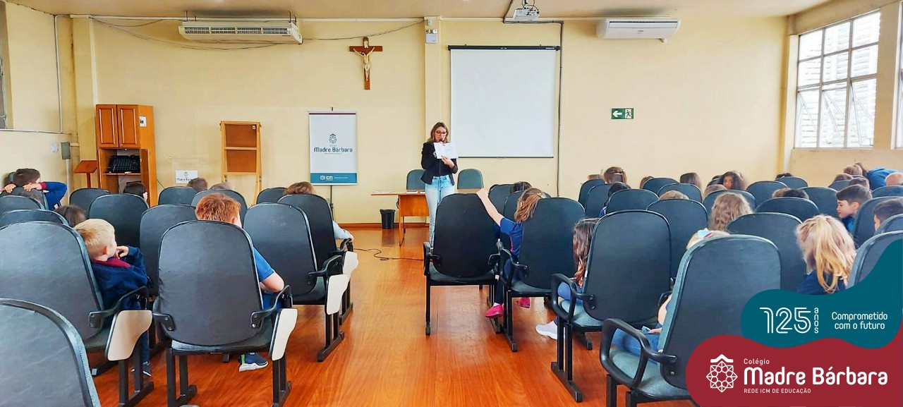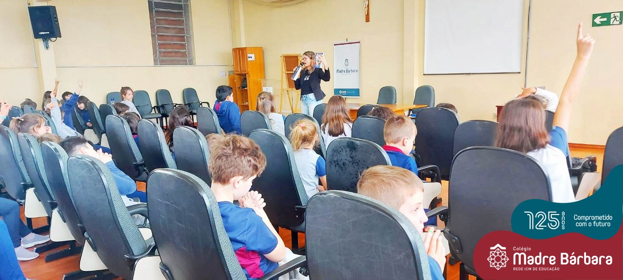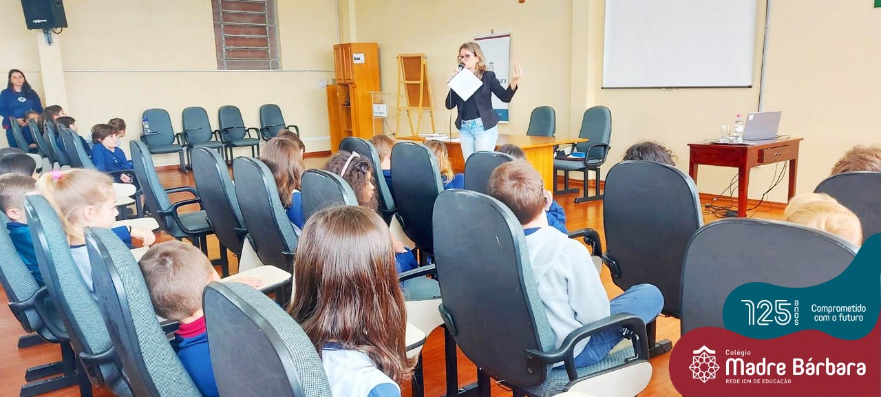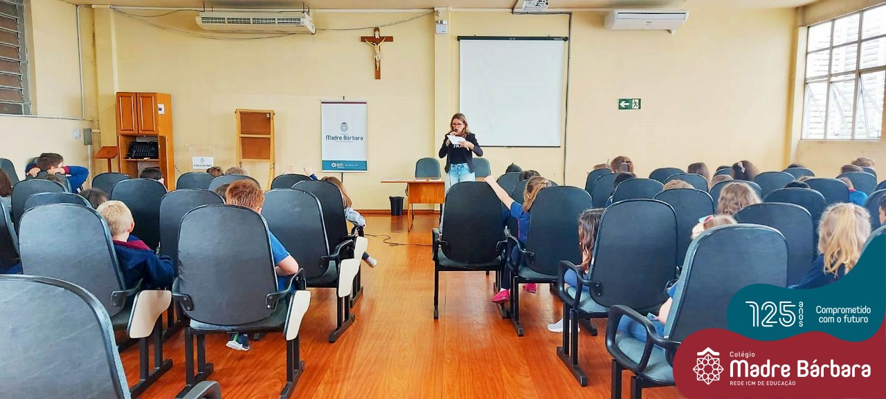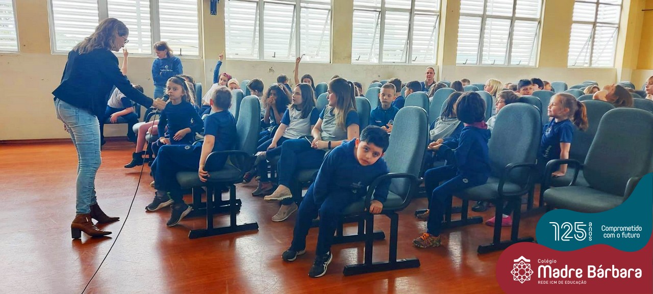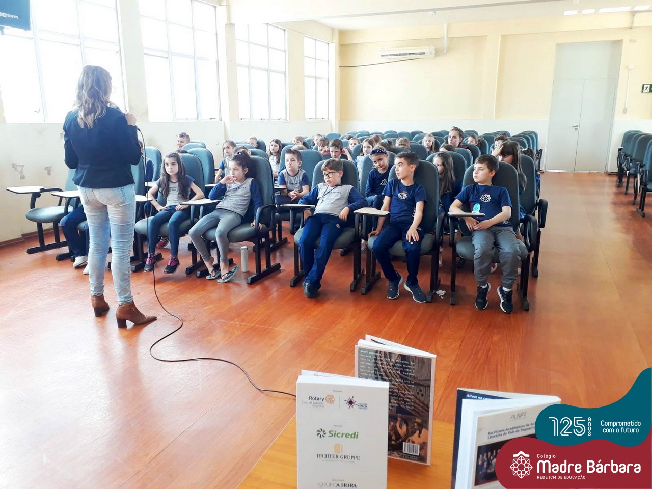 No dia 24.10, as turmas dos Segundos Anos do Colégio Madre Bárbara, juntamente com suas professoras, participaram de um momento muito especial com a comunicadora Lisiane Costa da Silva.