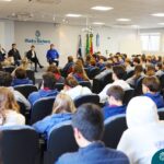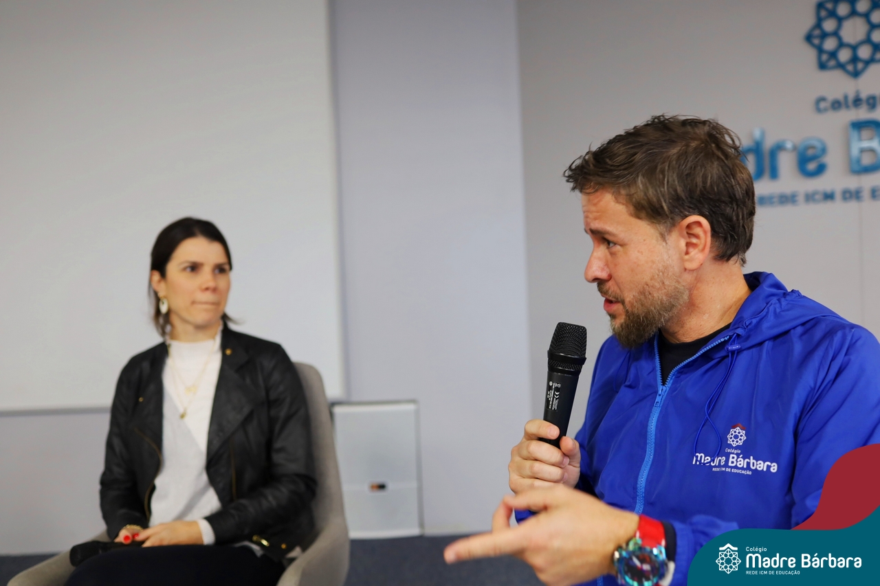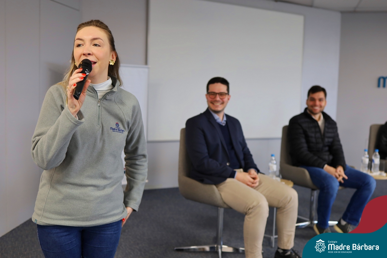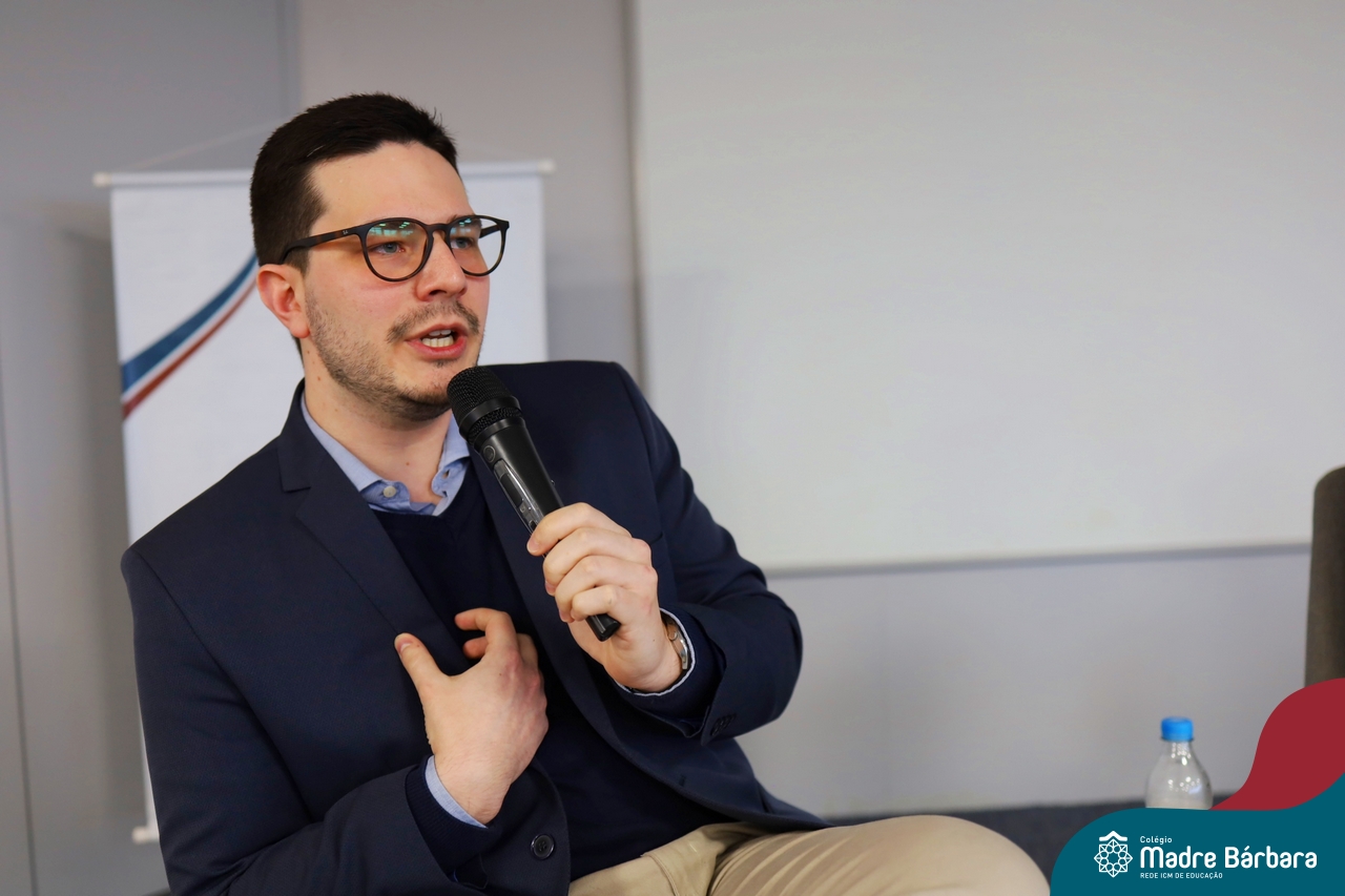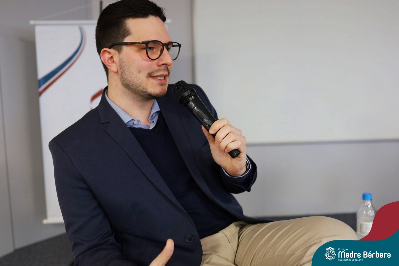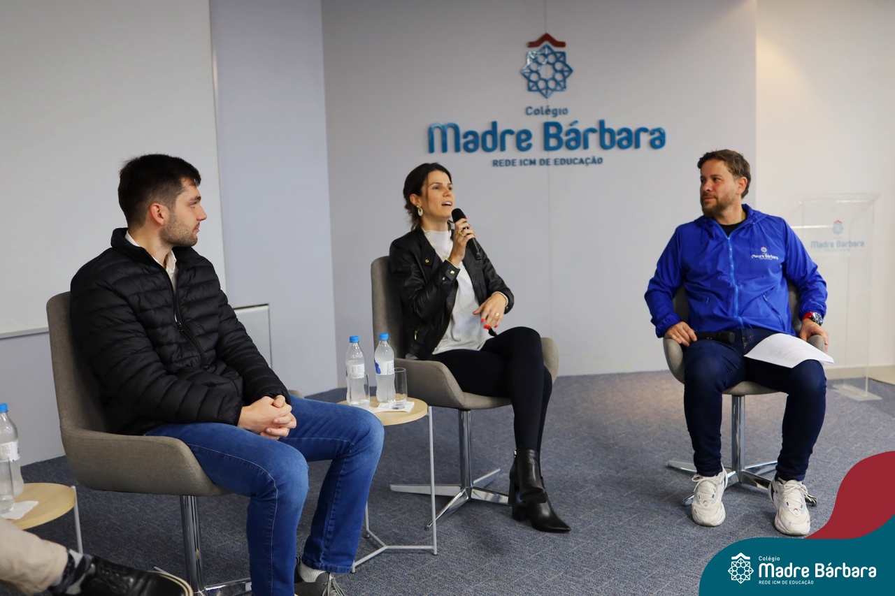 A escolha profissional é um projeto de vida e não apenas de carreira. Trata-se de um processo de autoconhecimento, de compreensão de suas habilidades e da busca constante por aprendizados. Sabendo que toda esta caminhada inicia muito antes da graduação, na manhã da última quinta-feira (07.07), os ex-alunos Augusto Armani, Gabriel Ely e Gabriela Pedó, estiveram no Colégio Madre Bárbara – Rede ICM para compartilhar com os estudantes do Ensino Médio um pouco sobre sua trajetória profissional e explorar como o Colégio contribuiu em seus processos de formação integral. O momento contou com a participação e condução do professor David Orling que, juntamente com os convidados, relembrou momentos marcantes da trajetória escolar dos mesmos.