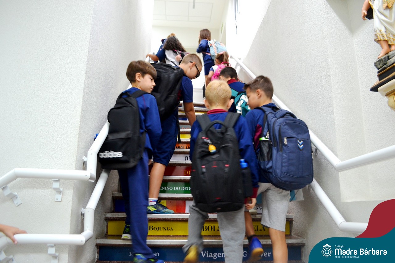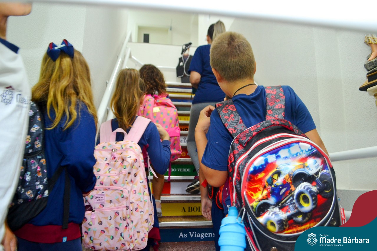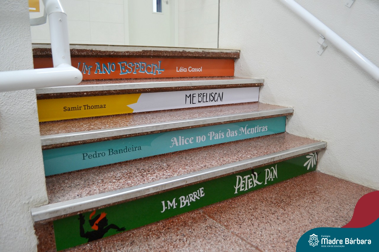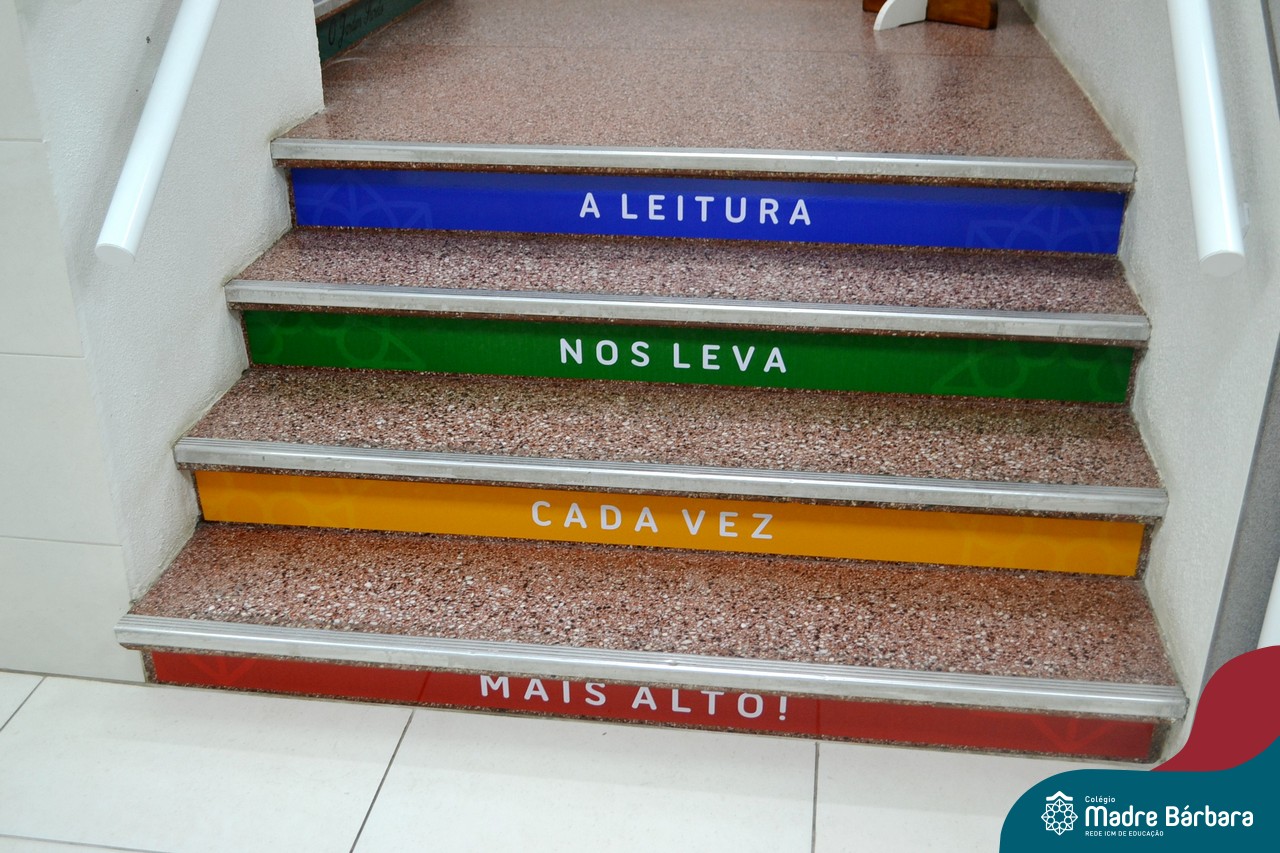 Nessa quarta-feira (26.02) os alunos e professores dos Anos Iniciais do Colégio Madre Bárbara – Rede ICM foram surpreendidos ao subir a escada do prédio. Em todos os andares, palavras de motivação, citações e dicas de livros enfeitavam e coloriam os degraus. A novidade além de levar mais conhecimento e fazer com que subam animados para suas salas, busca inserir e lembrar os alunos dos sete hábitos do Líder em Mim (OLEM).