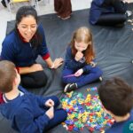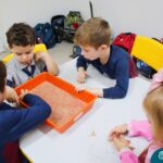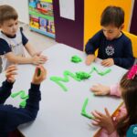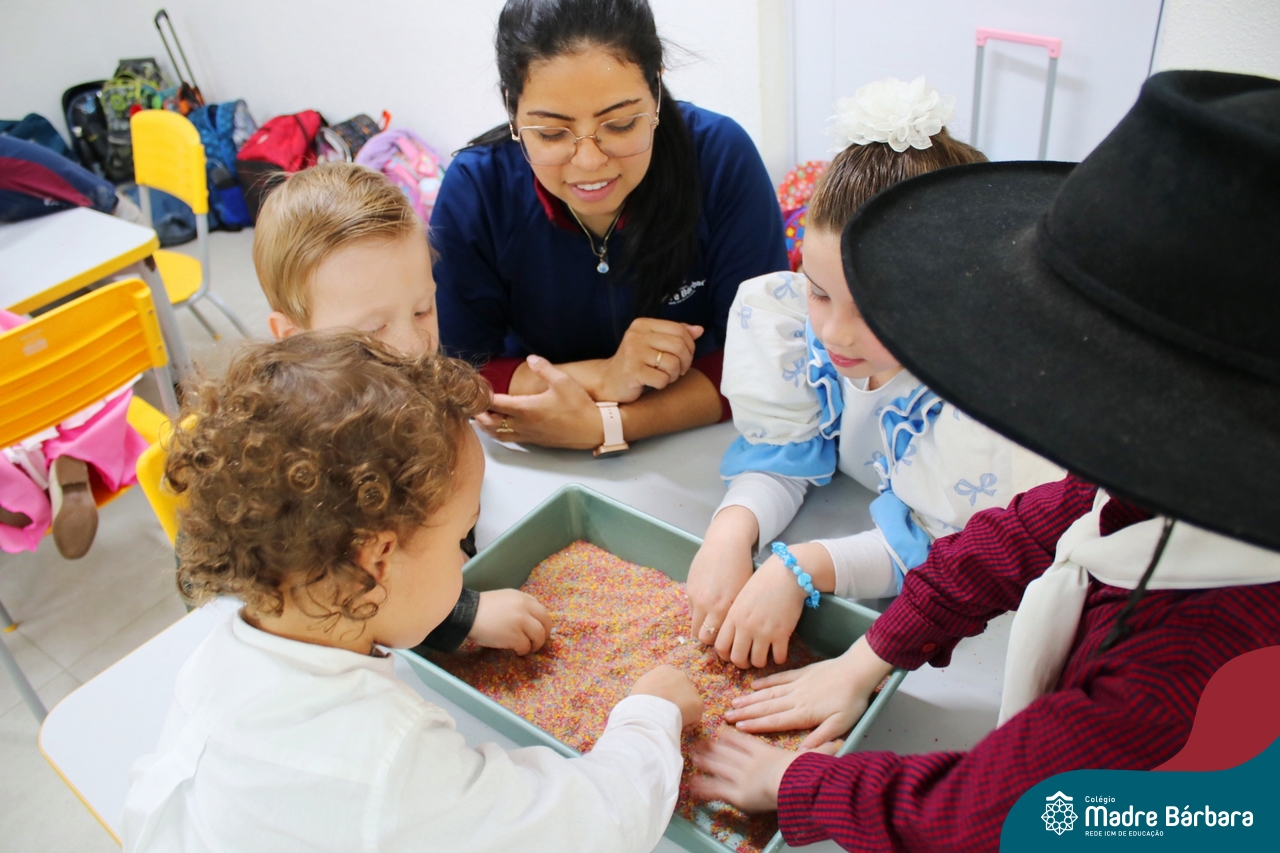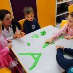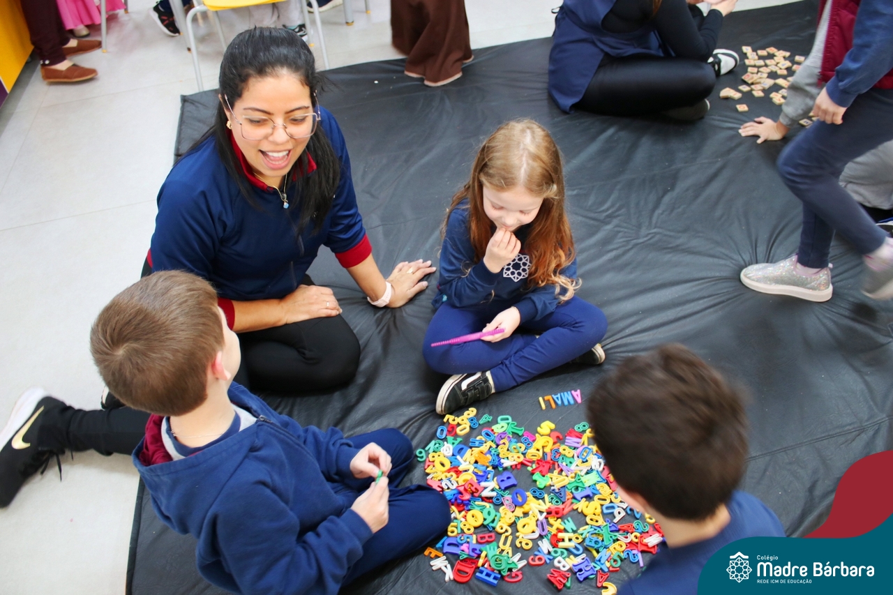 Na tarde de segunda-feira, 16 de setembro, as crianças dos Níveis 3A e 5D participaram de uma experiência enriquecedora. Os amigos do 5D prepararam diferentes contextos com letras e brincadeiras fonológicas para interagir com a turma do 3A, que está começando a descobrir sobre a letra inicial dos nomes. Essa interação proporcionou experiências valiosas e estimulantes para ambas as faixas etárias.