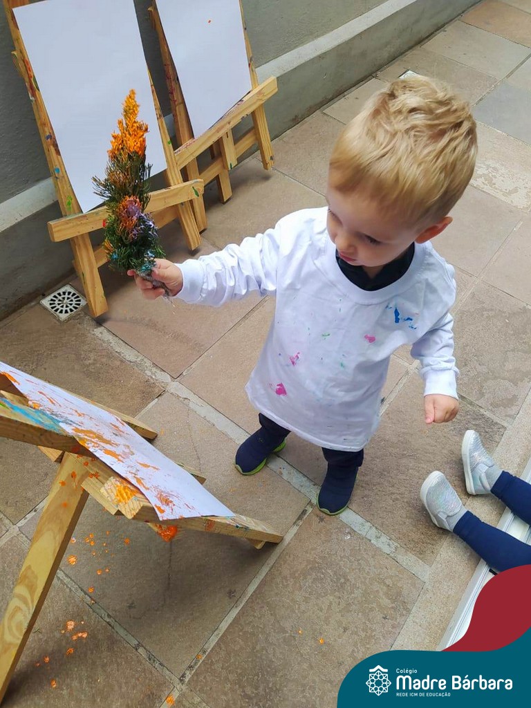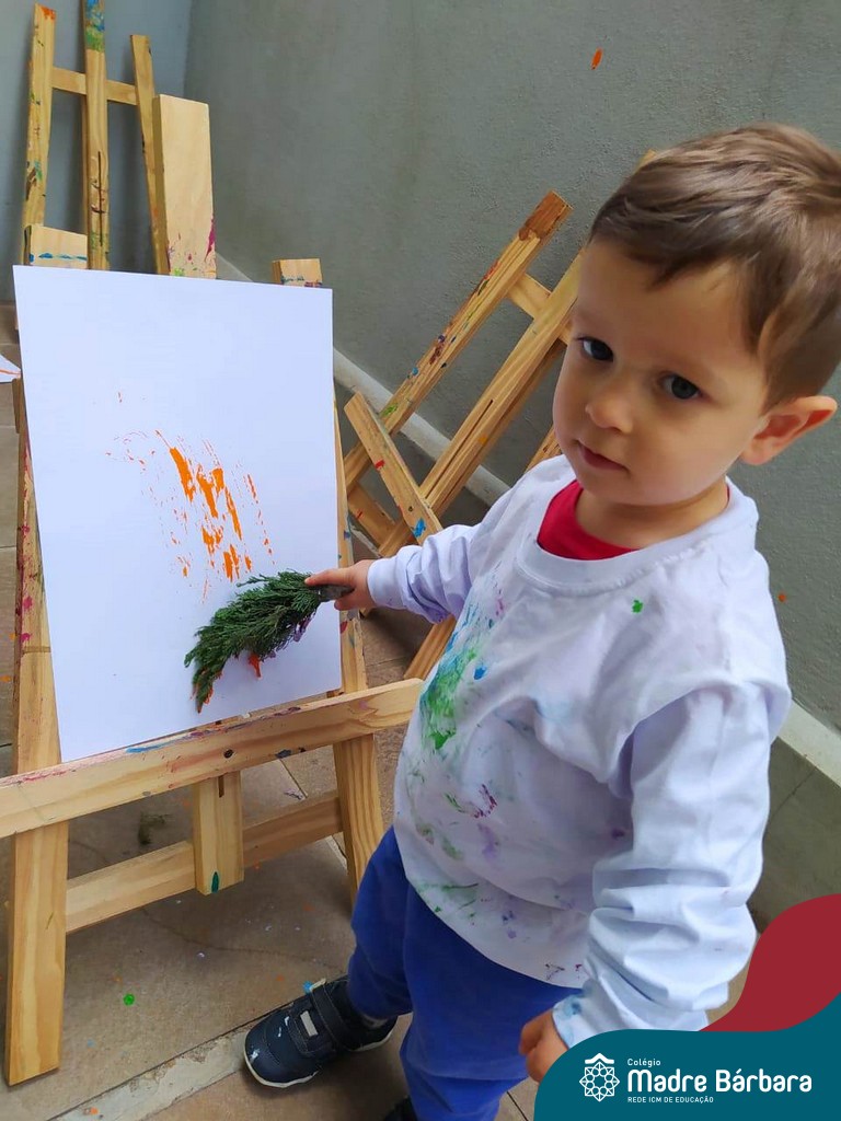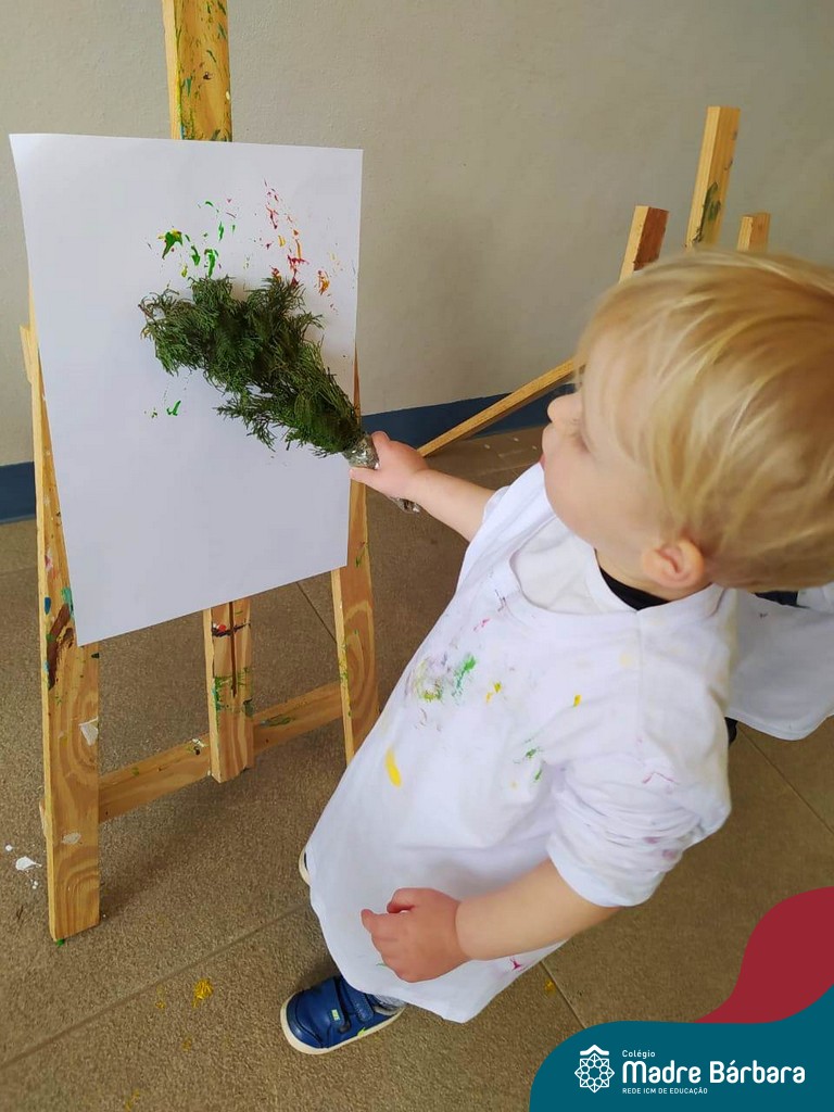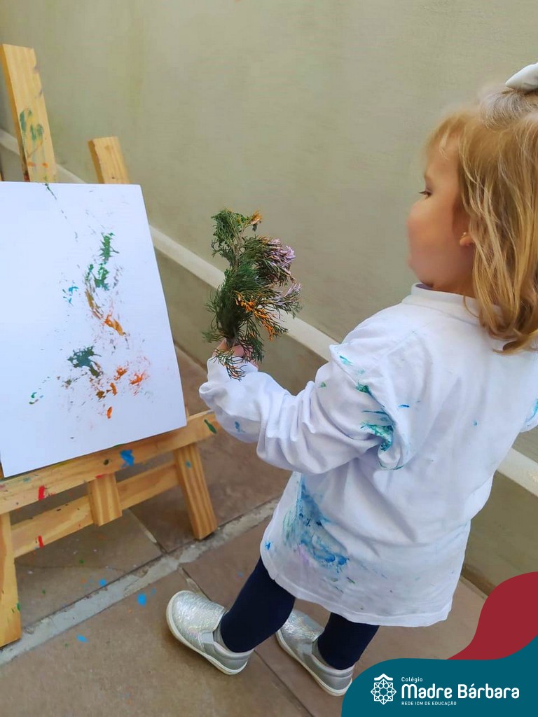 Reconhecendo a importância do contato das crianças com a natureza, bem como da utilização de alguns elementos para criar, imaginar e experimentar, as professoras Daiane, Morgana e Angélica proporcionaram para as crianças dos Níveis 1C e 1D, dentro do projeto: “Descobrindo e conhecendo as possibilidades do meu corpo” a exploração de um pincel confeccionado com folhas. As crianças participaram com alegria e entusiasmo da situação de aprendizagem.