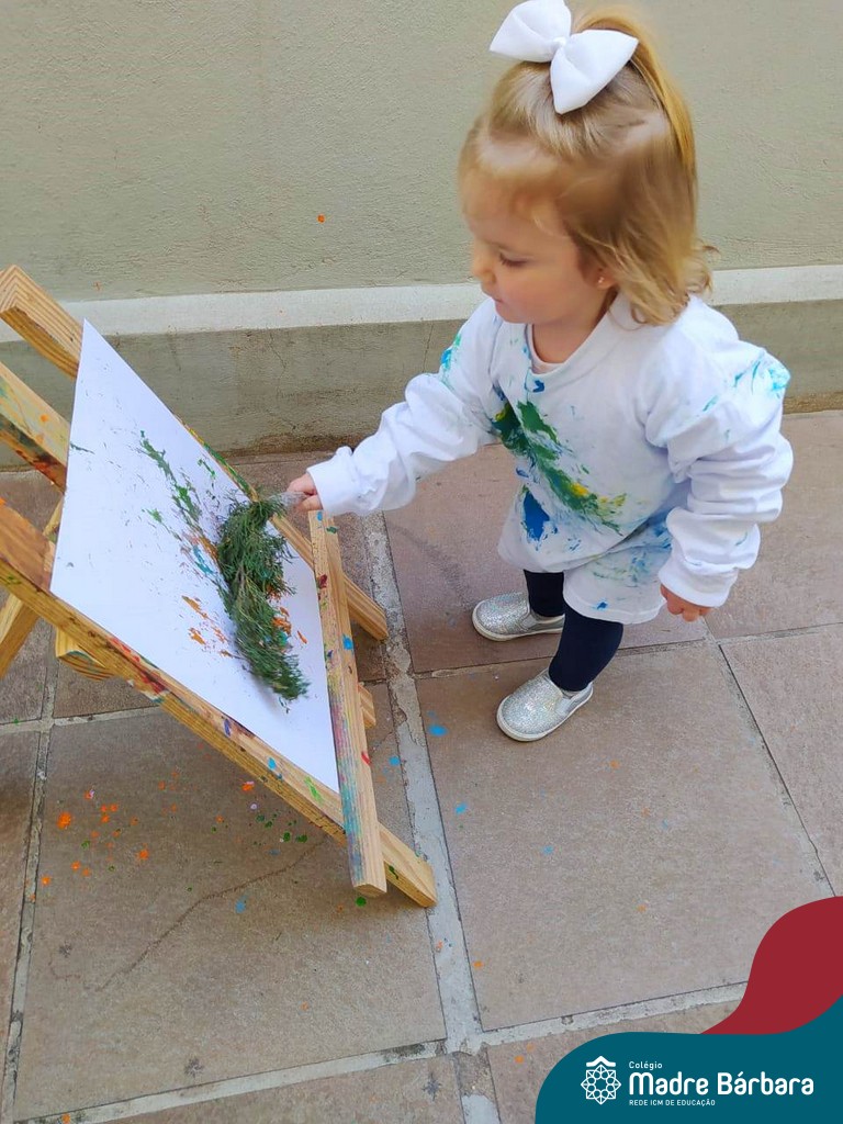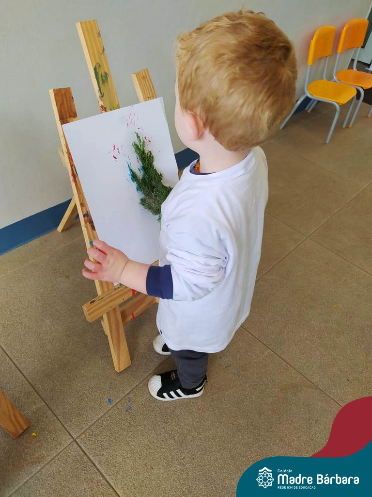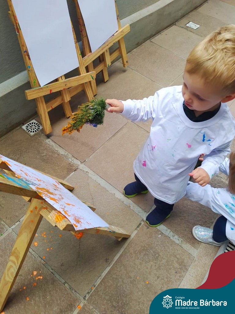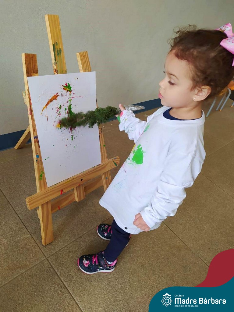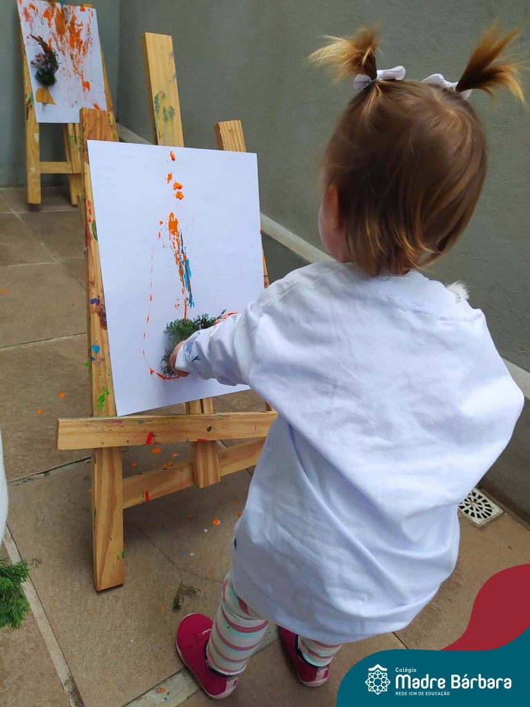 Reconhecendo a importância do contato das crianças com a natureza, bem como da utilização de alguns elementos para criar, imaginar e experimentar, as professoras Daiane, Morgana e Angélica proporcionaram para as crianças dos Níveis 1C e 1D, dentro do projeto: “Descobrindo e conhecendo as possibilidades do meu corpo” a exploração de um pincel confeccionado com folhas. As crianças participaram com alegria e entusiasmo da situação de aprendizagem.