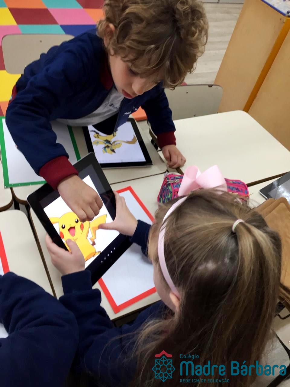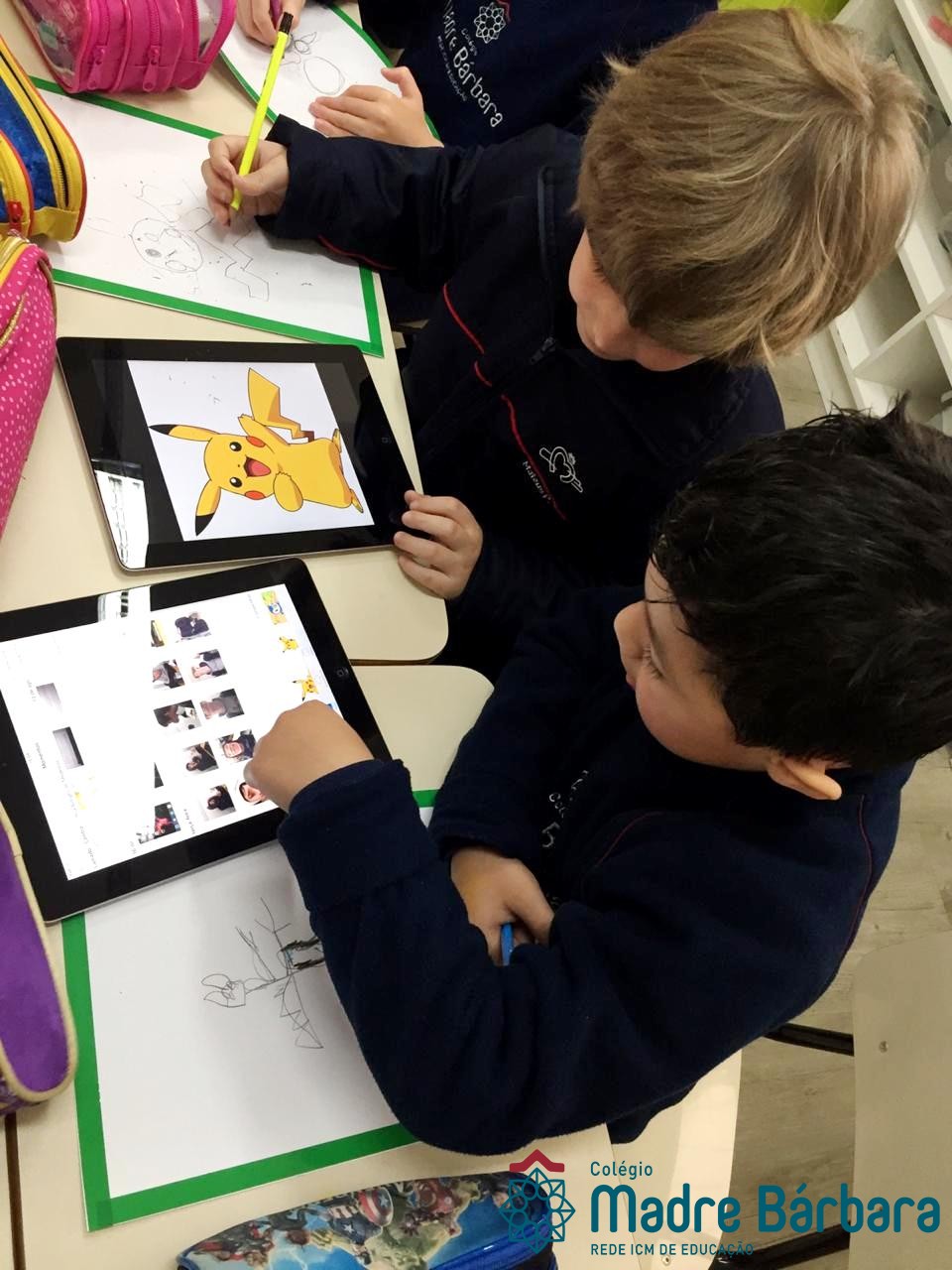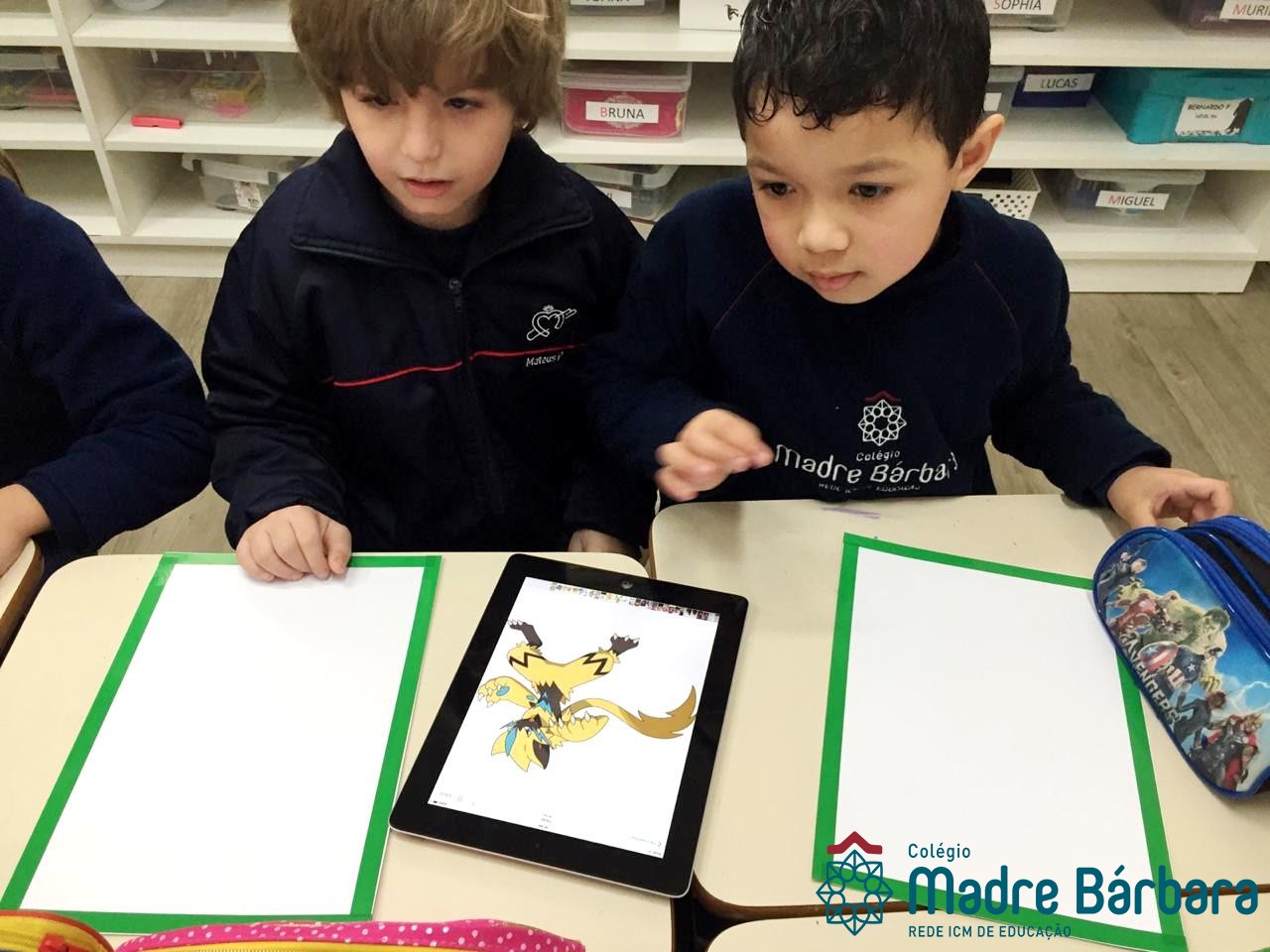 Os alunos do Nível 5C da Professora Christiane e da Monitora Milene, estão encantados com o mundo dos Pokémons. Através desta temática várias situações estão sendo exploradas com as crianças e uma delas foi o Desenho através da Observação. As crianças receberam os Ipad’s para escolher a imagem que gostariam de desenhar, após a escolha as reproduziram. Sendo que com o auxílio da Ipad puderam aumentar e diminuir as imagens prestando mais atenção aos detalhes. E o resultado não poderia ser melhor!