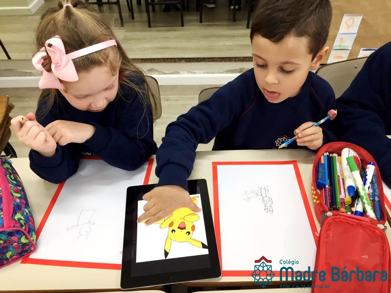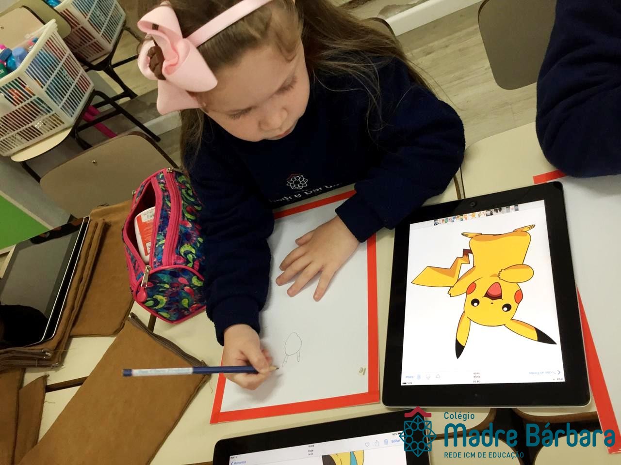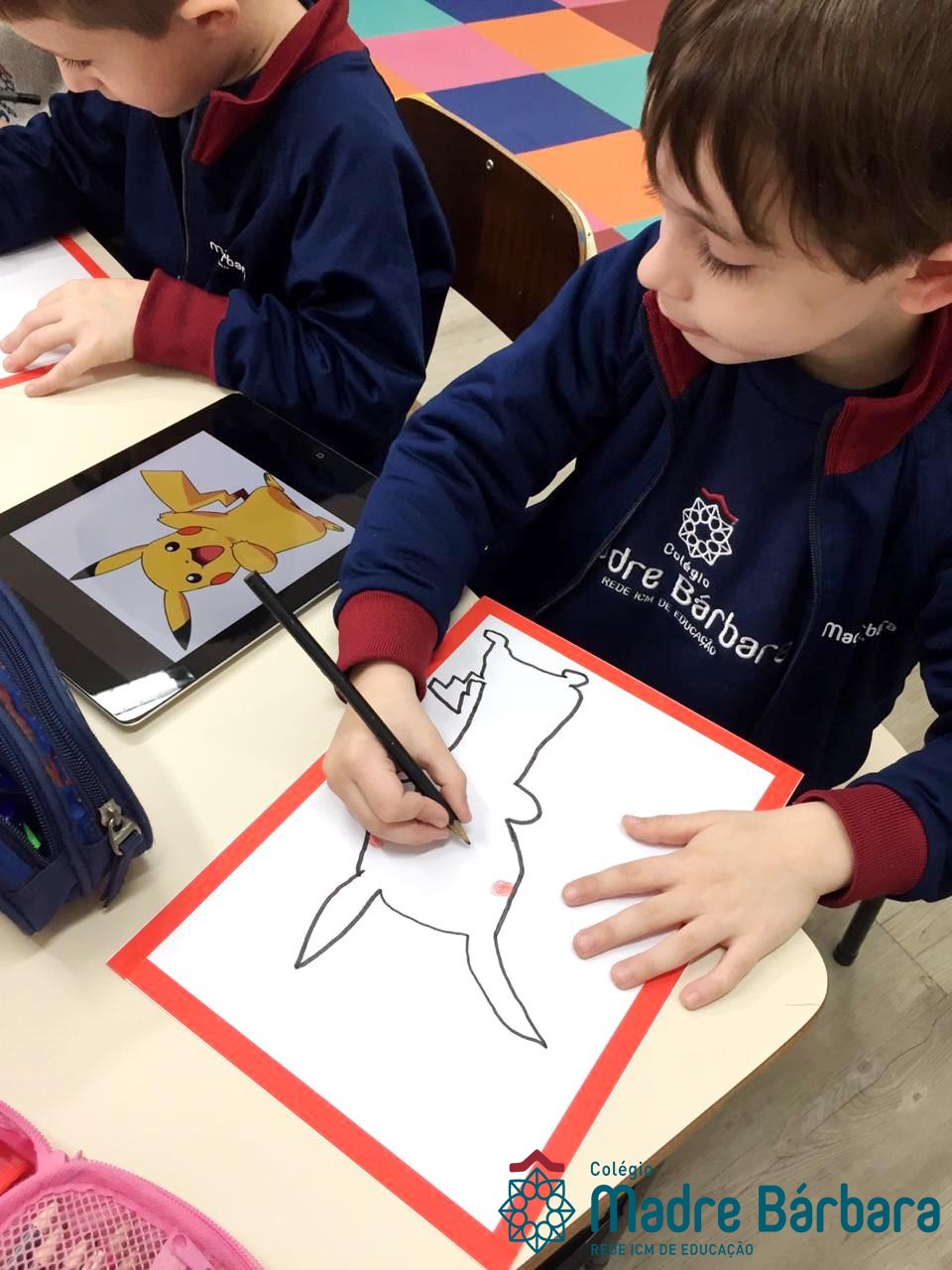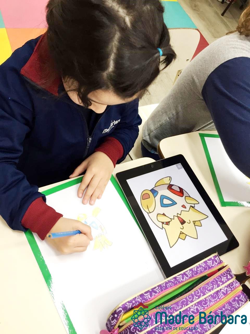 Os alunos do Nível 5C da Professora Christiane e da Monitora Milene, estão encantados com o mundo dos Pokémons. Através desta temática várias situações estão sendo exploradas com as crianças e uma delas foi o Desenho através da Observação. As crianças receberam os Ipad’s para escolher a imagem que gostariam de desenhar, após a escolha as reproduziram. Sendo que com o auxílio da Ipad puderam aumentar e diminuir as imagens prestando mais atenção aos detalhes. E o resultado não poderia ser melhor!