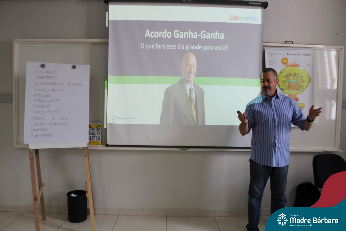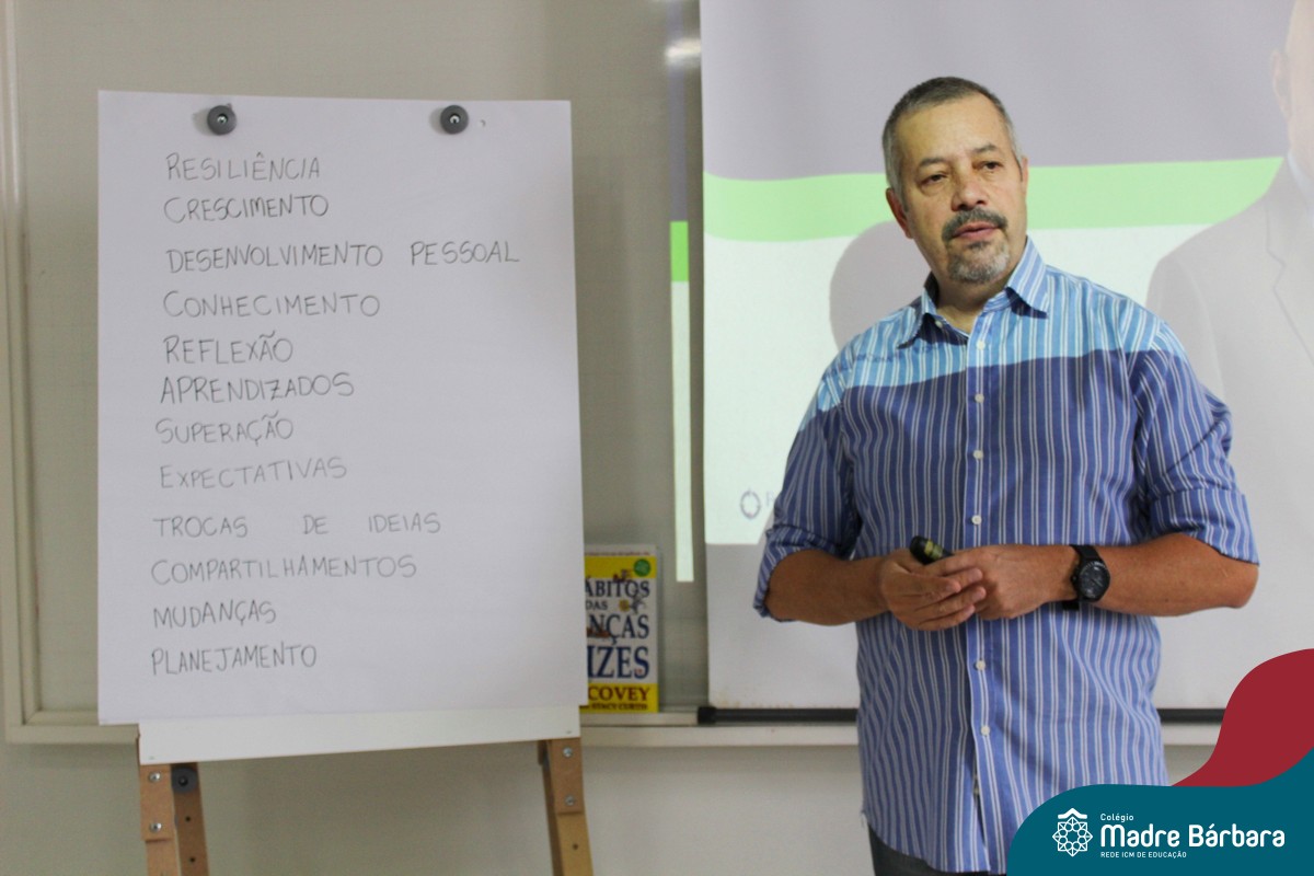 Os professores dos Anos Iniciais participaram na quinta-feira (13.02) da formação “Desenvolvendo a cultura de liderança”, ministrada pelo Assessor Pedagógico, César Rinaldi. Foram abordados paradigmas eficazes do processo Líder em Mim, apresentando práticas para a realização de mudanças positivas. Esses paradigmas incluem: acreditar que todo estudante pode ser líder e nasce com dons únicos; que o propósito da educação é desenvolver uma pessoa completa e que a chave para mudar para melhor começa com a mudança em nós mesmos.