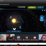 A oficina simulou, de forma virtual, uma viagem ao espaço, em que foi possível visualizar a estrutura e composição do Sistema Solar: os planetas, satélites, o sol e o cinturão de asteroides, além de conhecer as principais características de cada um dos planetas.