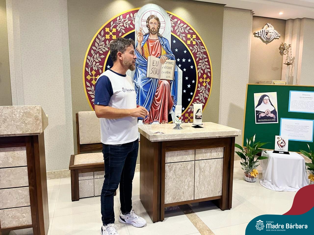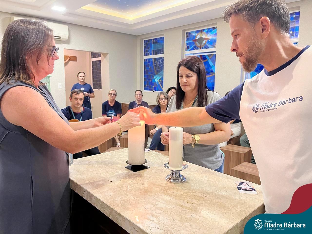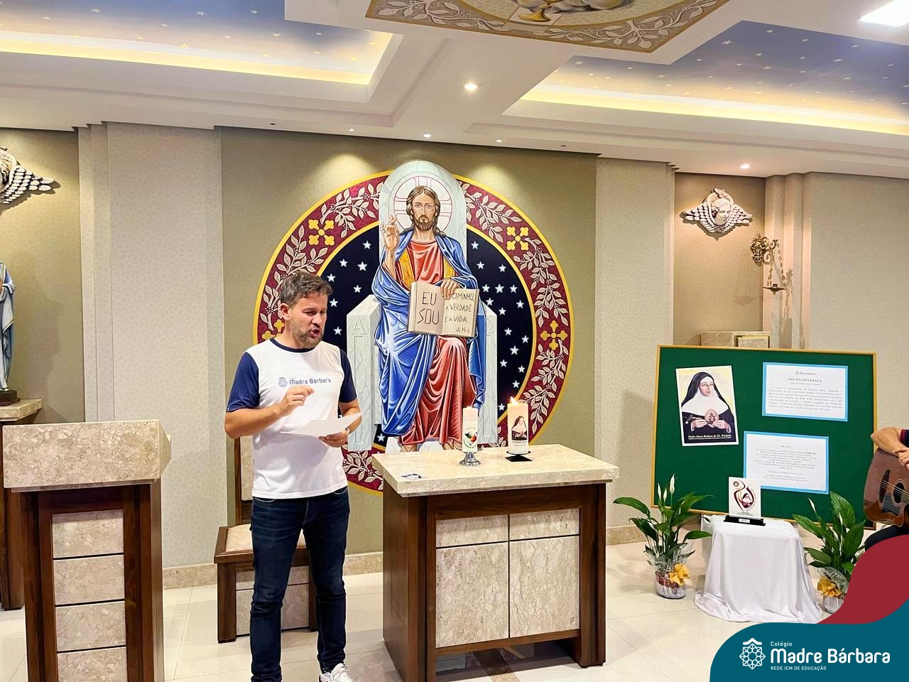 No final da tarde desta segunda-feira (17.03), os professores dos Anos Finais e do Ensino Médio do Colégio Madre Bárbara – Rede ICM reuniram-se para um momento orante muito especial, dirigido pela Pastoral Escolar, em celebração ao Dia da Esperança que relembra a morte e o legado da Bem-Aventurada Bárbara Maix, fundadora da Congregação do Imaculado Coração de Maria. O encontro aconteceu na capela, que, depois de ter sido destruída pelas cheias de maio do ano passado, foi restaurada e devolvida à comunidade como um símbolo de renovação e fé. Nesse espaço sagrado, relembramos não apenas a história de Bárbara Maix, mas também seu compromisso com a educação, a justiça social e a construção de um mundo mais fraterno.