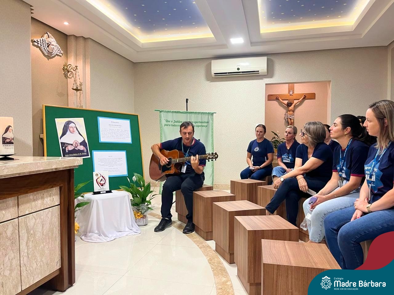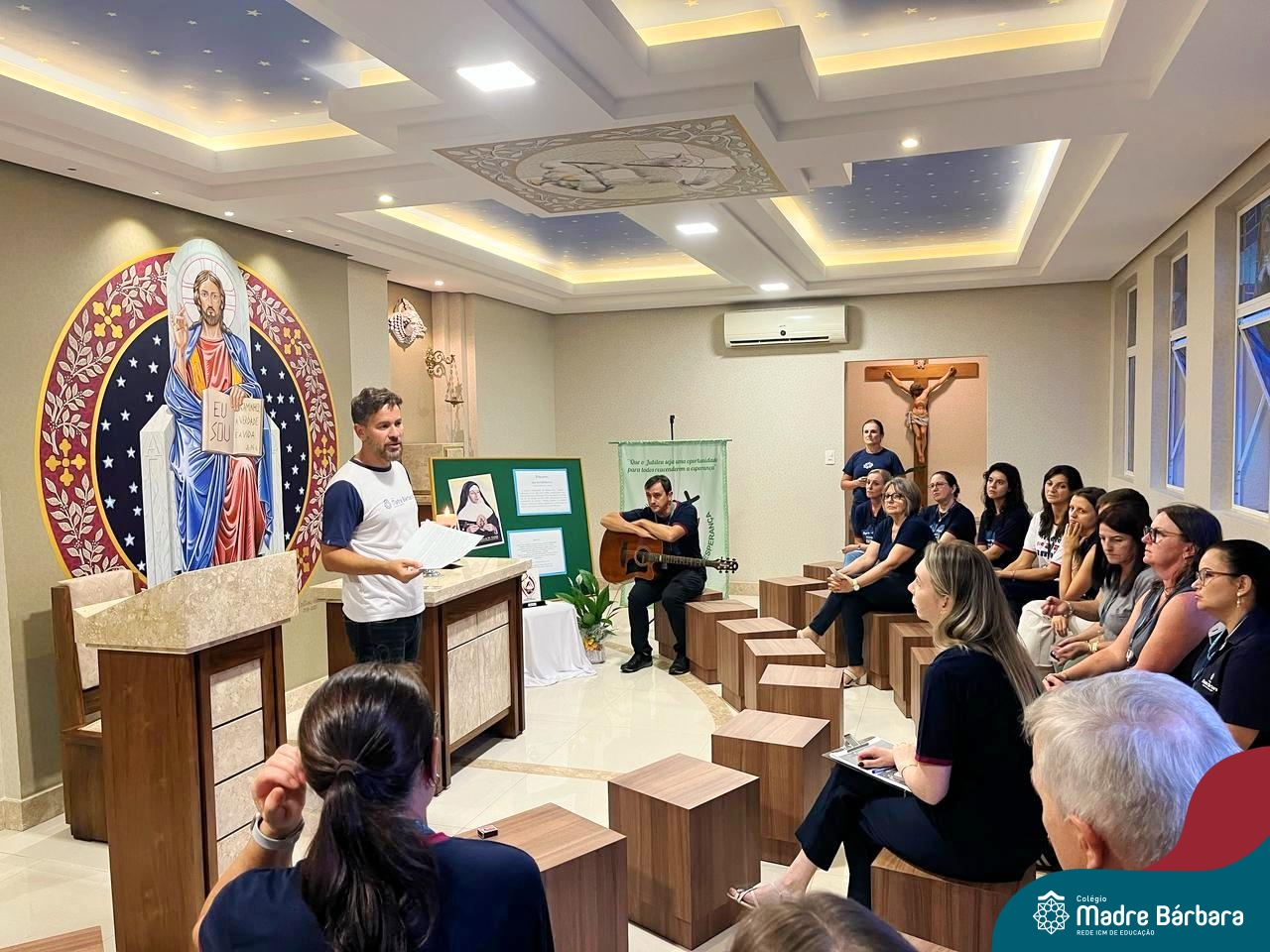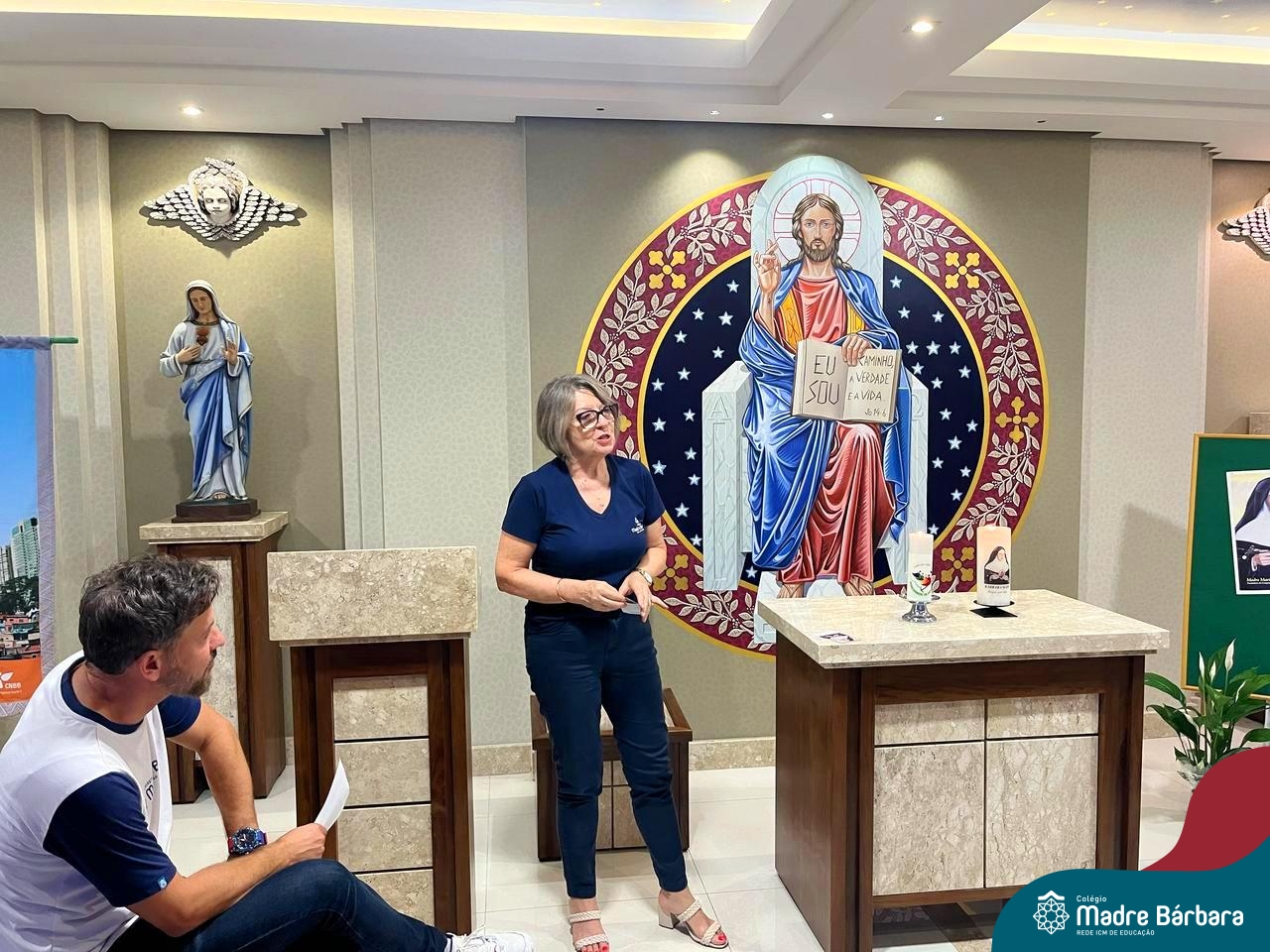 No final da tarde desta segunda-feira (17.03), os professores dos Anos Finais e do Ensino Médio do Colégio Madre Bárbara – Rede ICM reuniram-se para um momento orante muito especial, dirigido pela Pastoral Escolar, em celebração ao Dia da Esperança que relembra a morte e o legado da Bem-Aventurada Bárbara Maix, fundadora da Congregação do Imaculado Coração de Maria. O encontro aconteceu na capela, que, depois de ter sido destruída pelas cheias de maio do ano passado, foi restaurada e devolvida à comunidade como um símbolo de renovação e fé. Nesse espaço sagrado, relembramos não apenas a história de Bárbara Maix, mas também seu compromisso com a educação, a justiça social e a construção de um mundo mais fraterno.