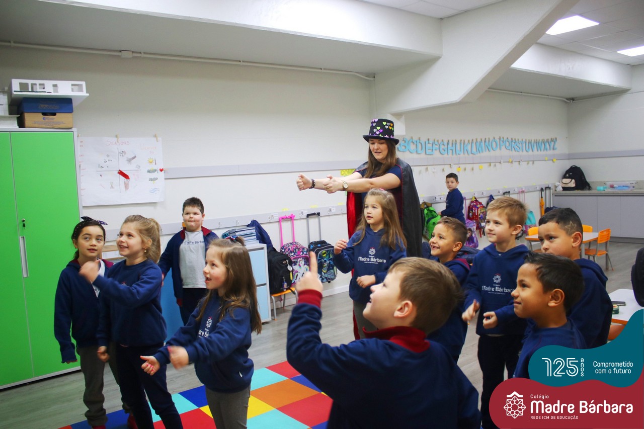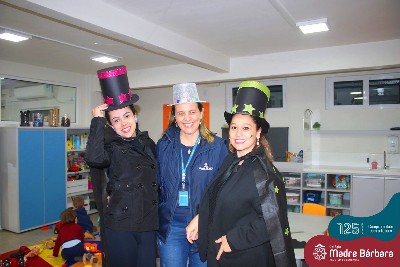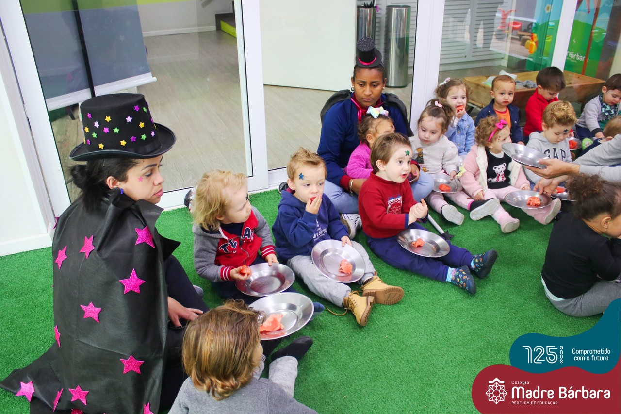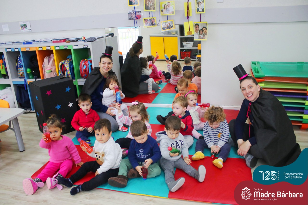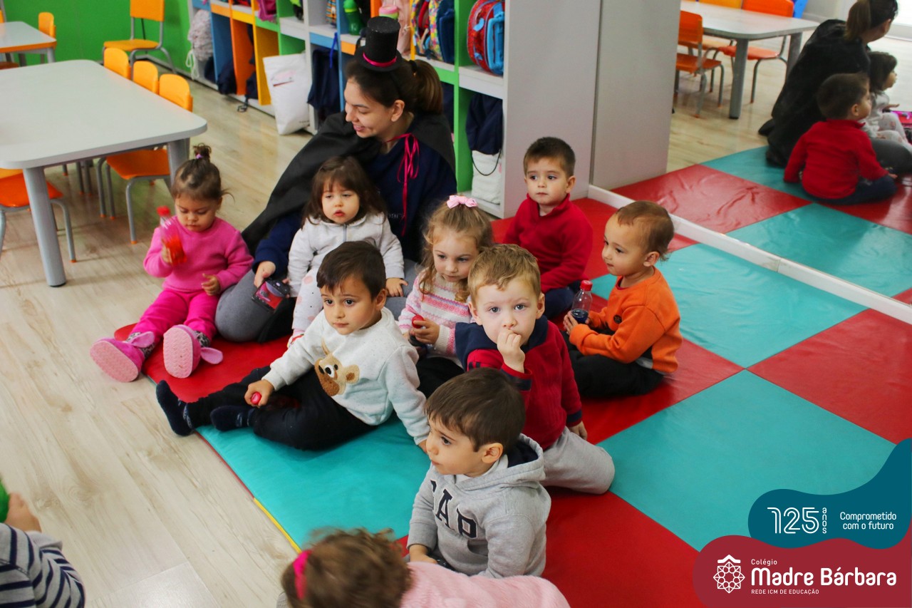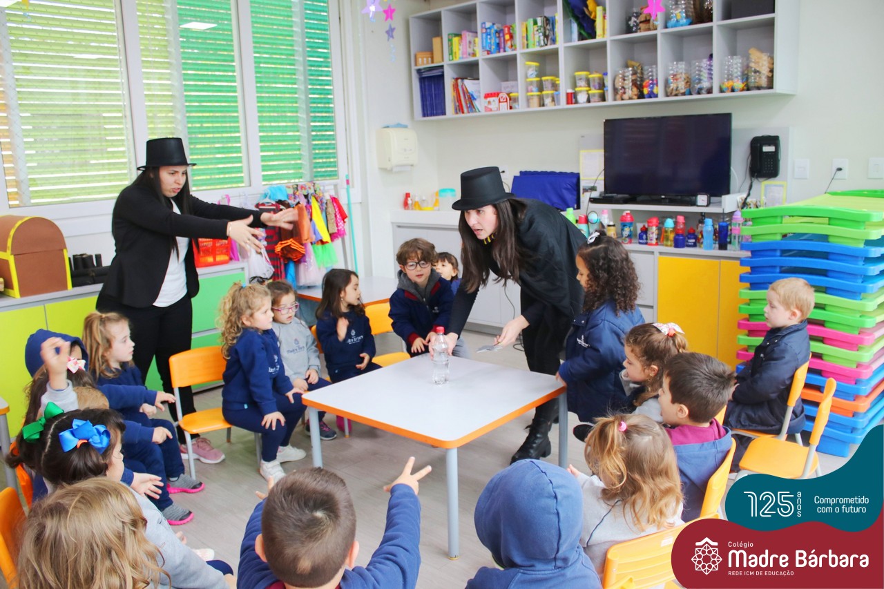 O primeiro dia da Semana da Criança foi marcado por encanto e magia. As crianças foram recebidas em um ambiente especialmente preparado com muita cor, cartolas e estrelas! O dia foi de mágicas que empolgaram as crianças e professoras. Abracadabra…simsalabim!!!