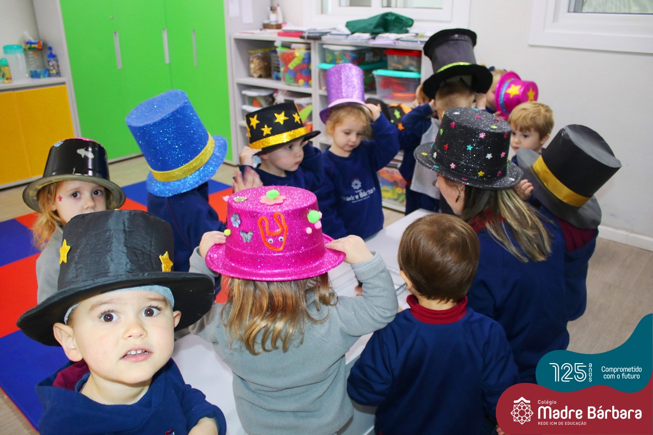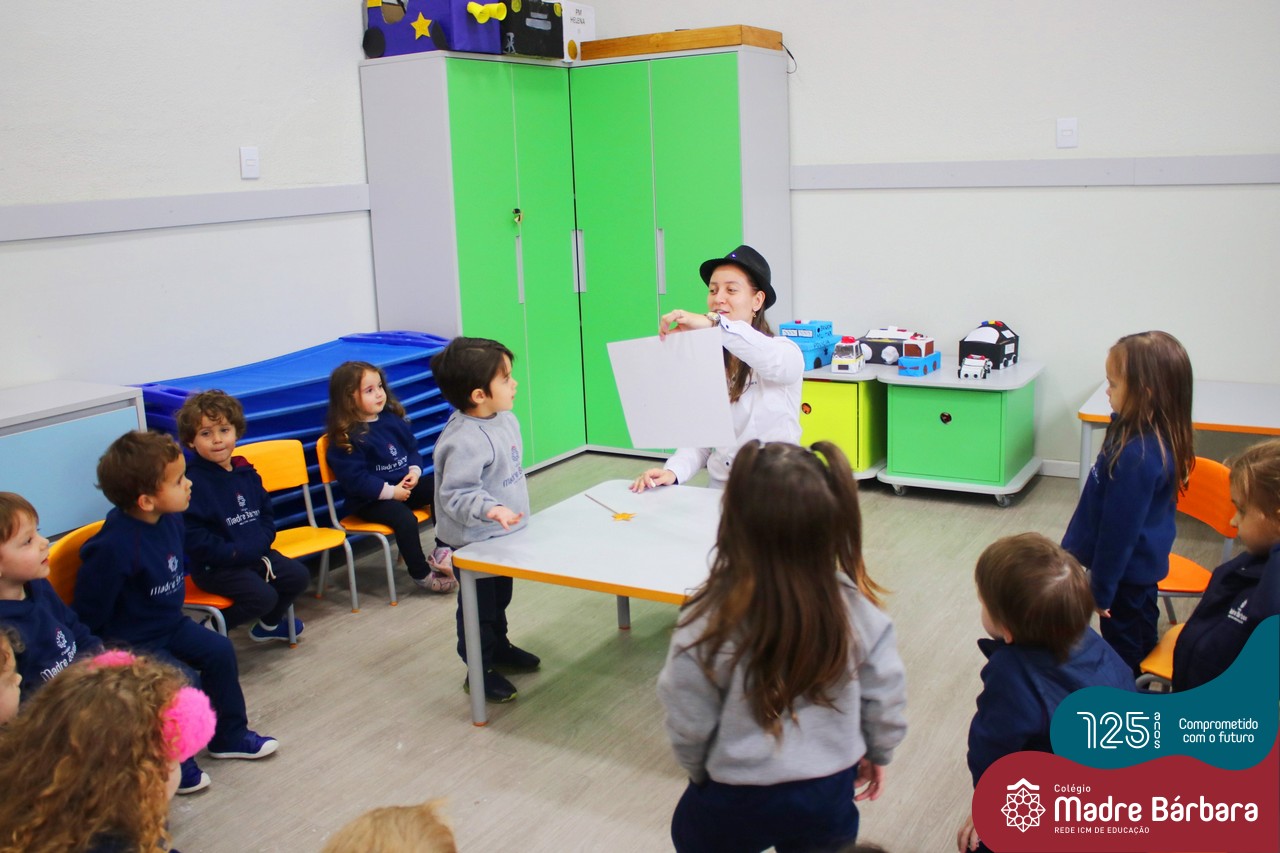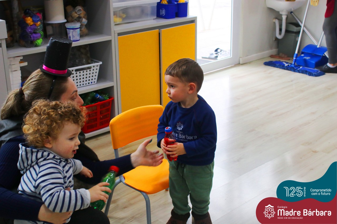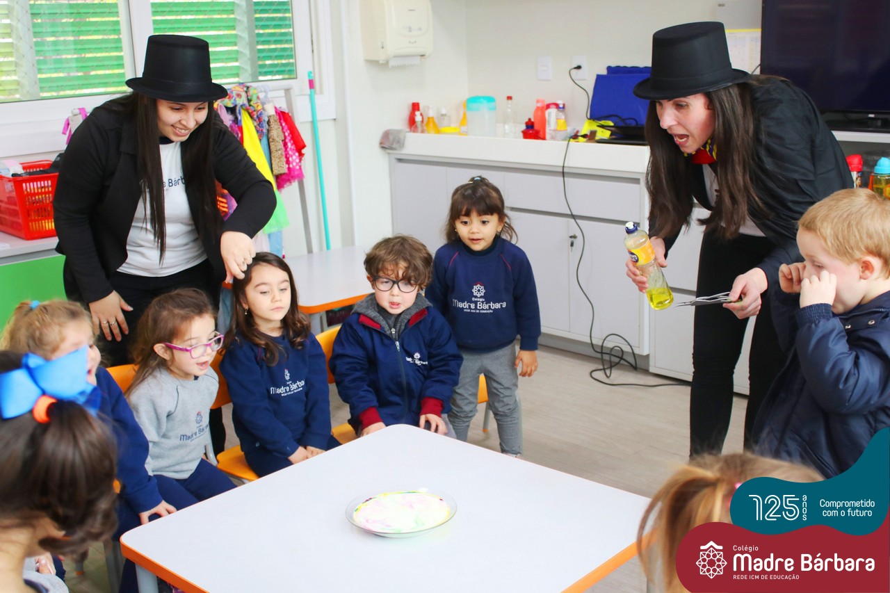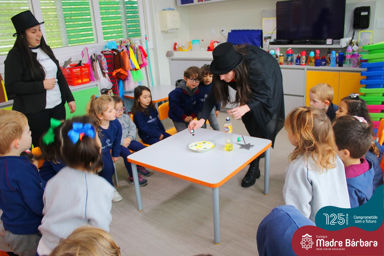 O primeiro dia da Semana da Criança foi marcado por encanto e magia. As crianças foram recebidas em um ambiente especialmente preparado com muita cor, cartolas e estrelas! O dia foi de mágicas que empolgaram as crianças e professoras. Abracadabra…simsalabim!!!