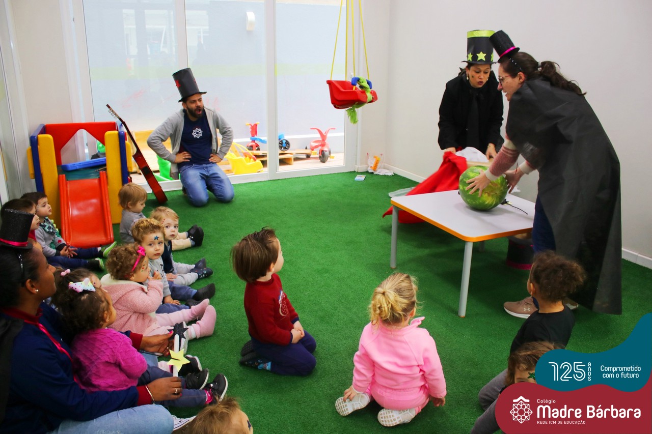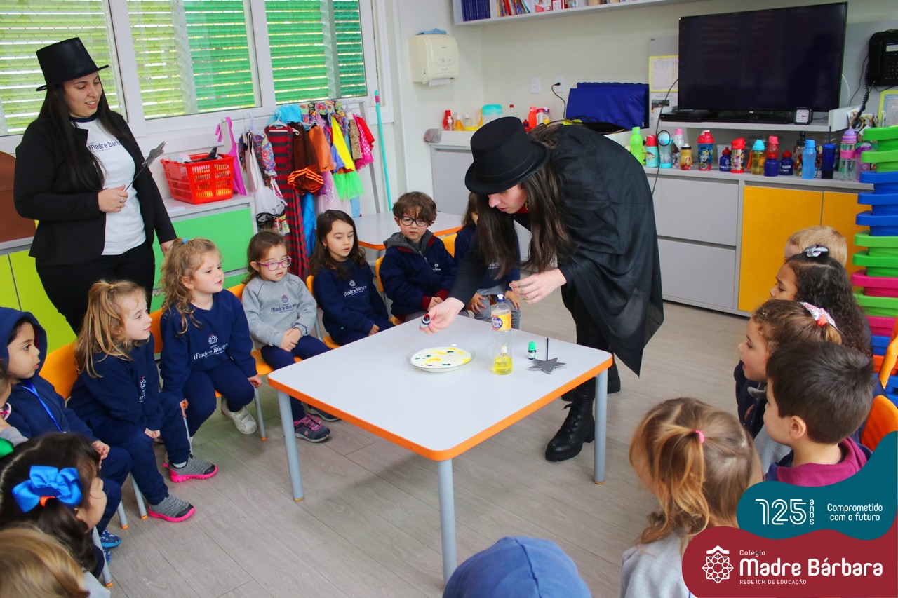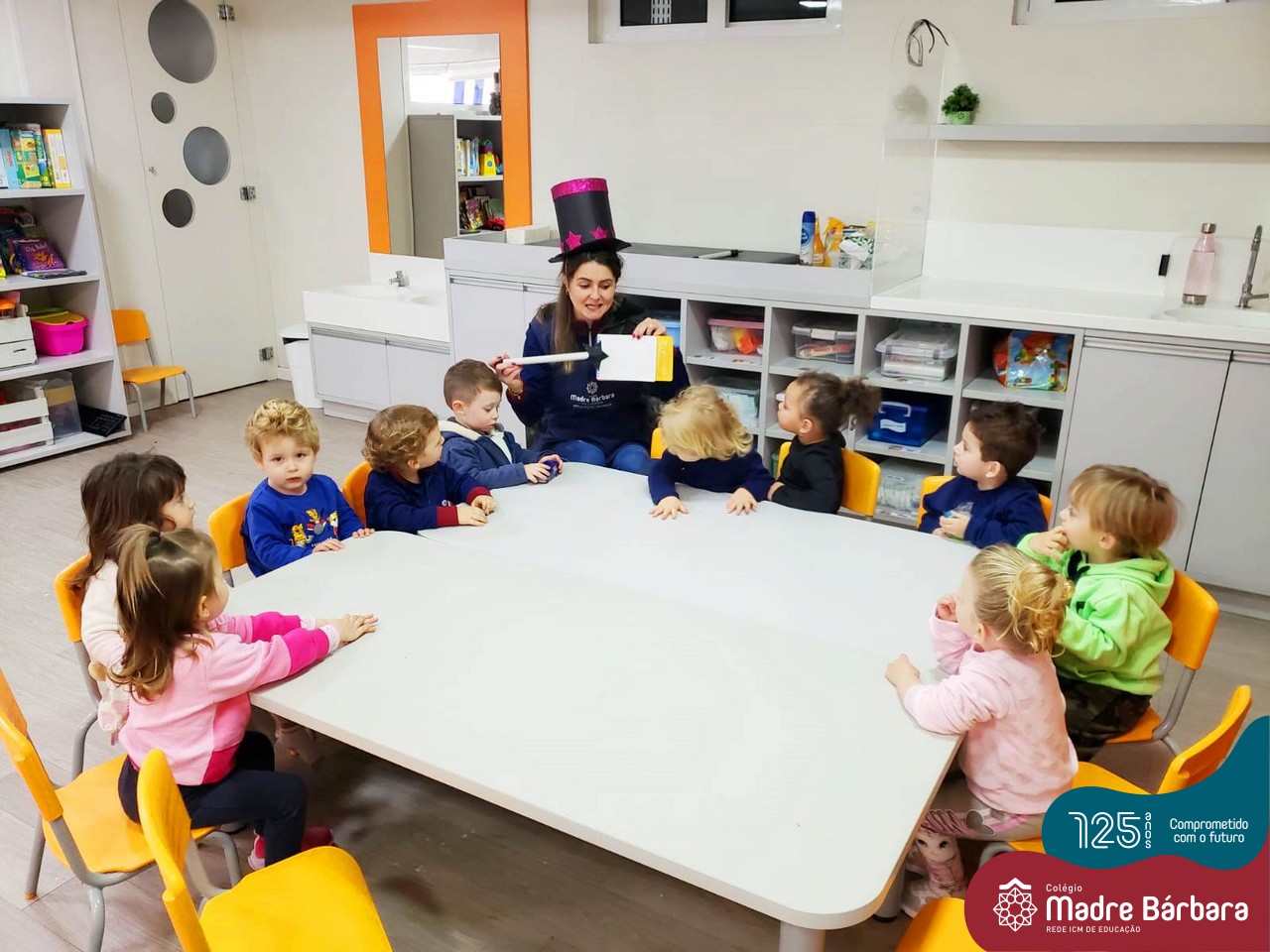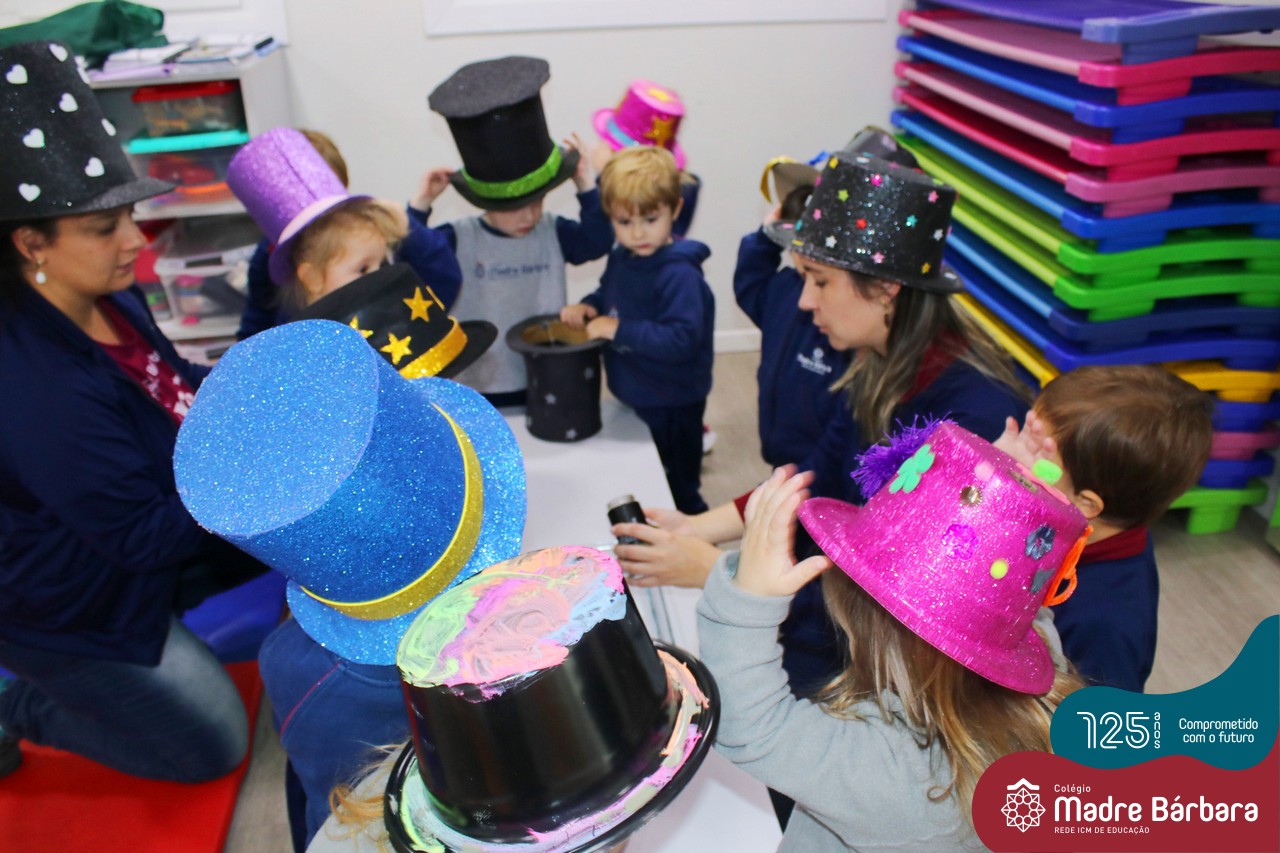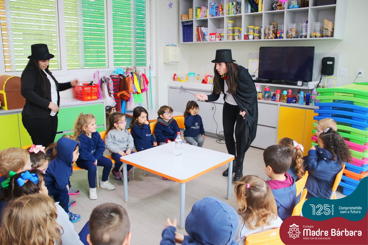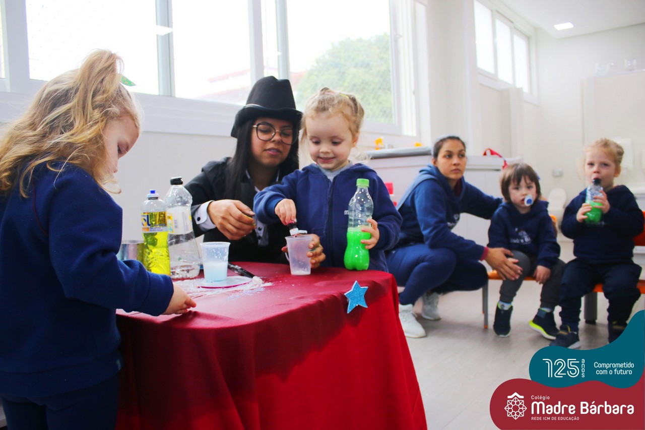 O primeiro dia da Semana da Criança foi marcado por encanto e magia. As crianças foram recebidas em um ambiente especialmente preparado com muita cor, cartolas e estrelas! O dia foi de mágicas que empolgaram as crianças e professoras. Abracadabra…simsalabim!!!