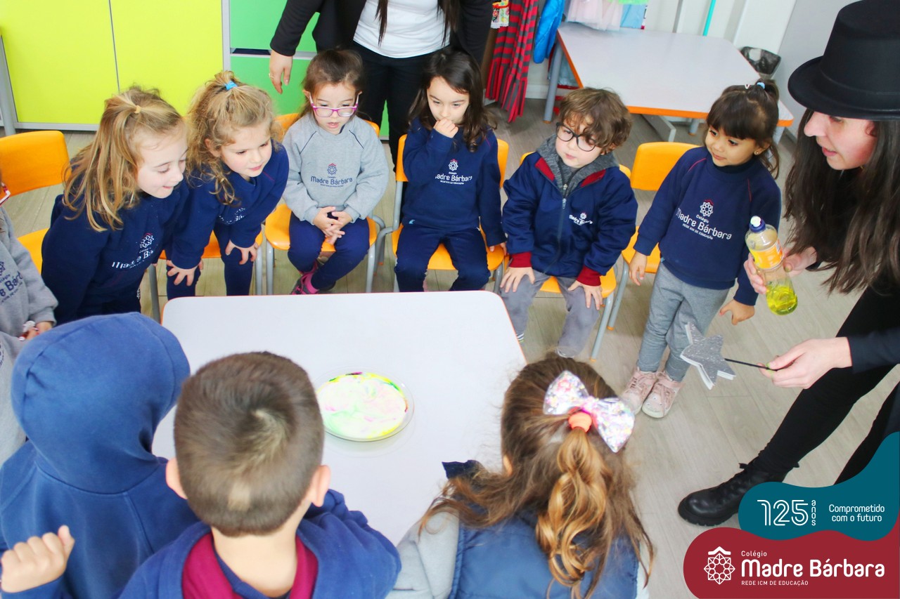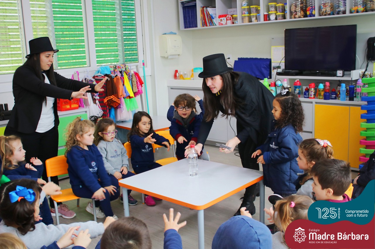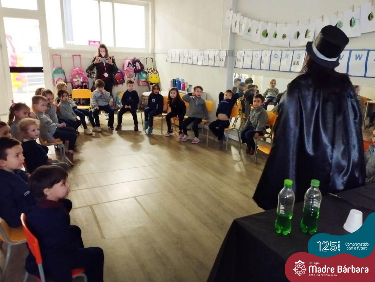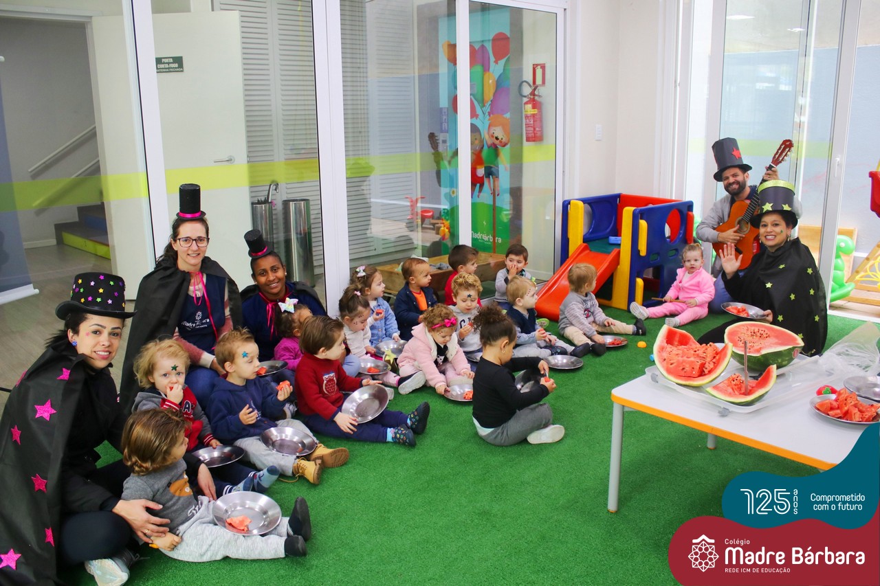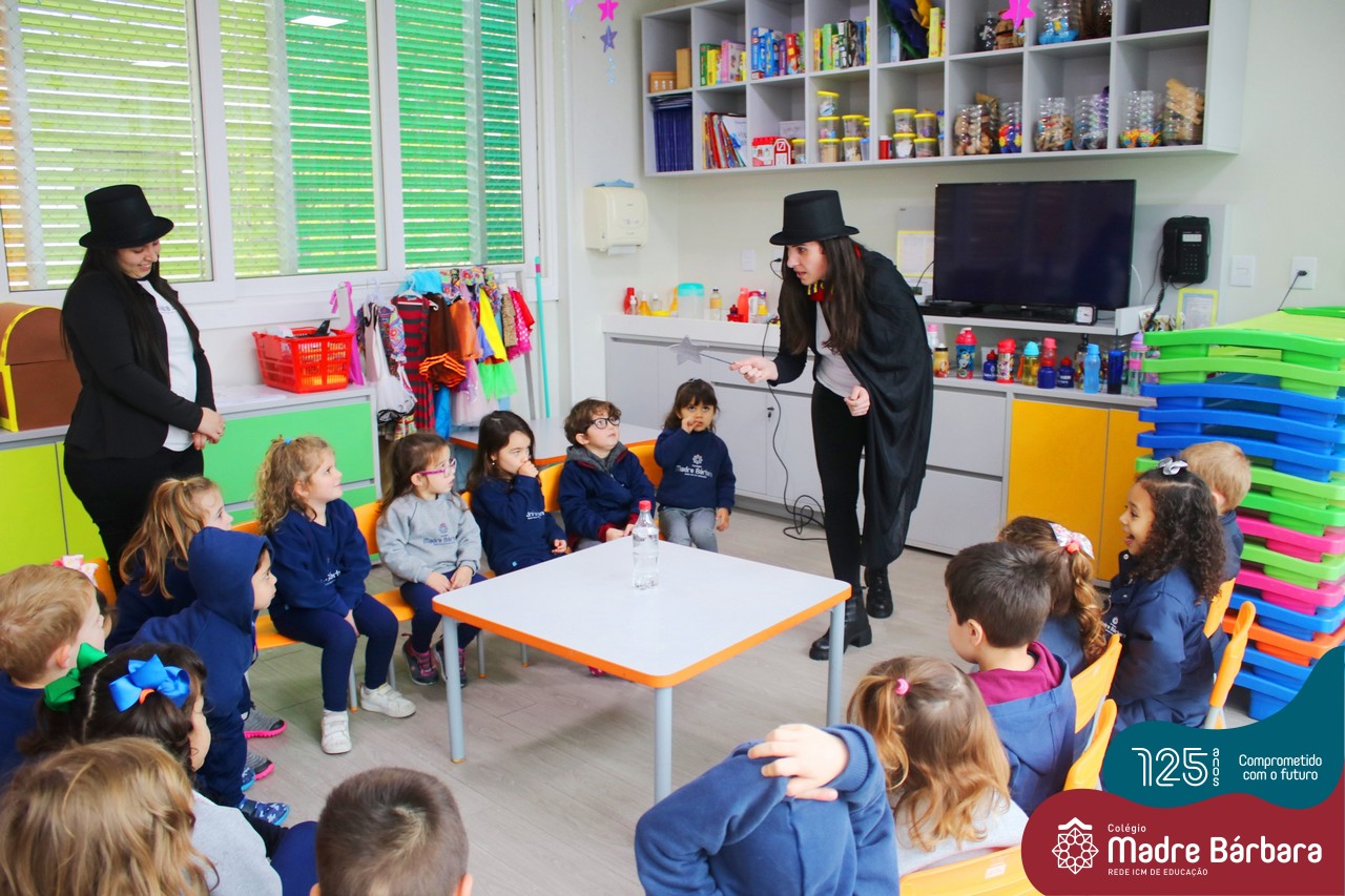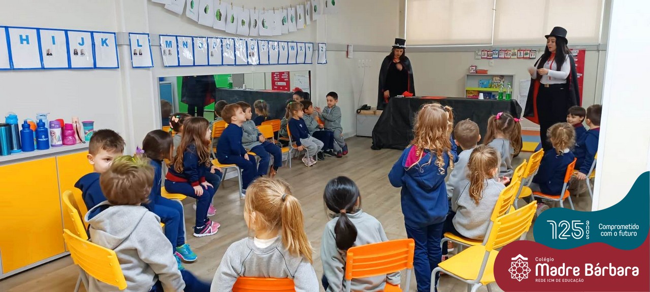 O primeiro dia da Semana da Criança foi marcado por encanto e magia. As crianças foram recebidas em um ambiente especialmente preparado com muita cor, cartolas e estrelas! O dia foi de mágicas que empolgaram as crianças e professoras. Abracadabra…simsalabim!!!