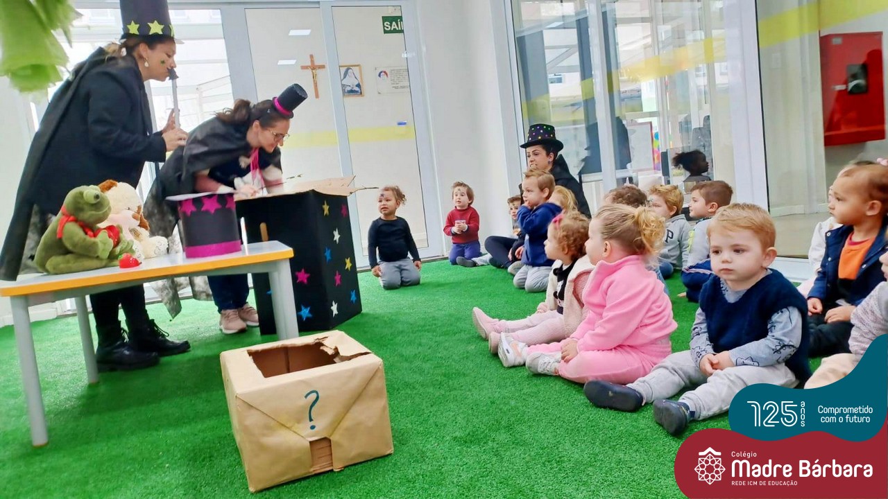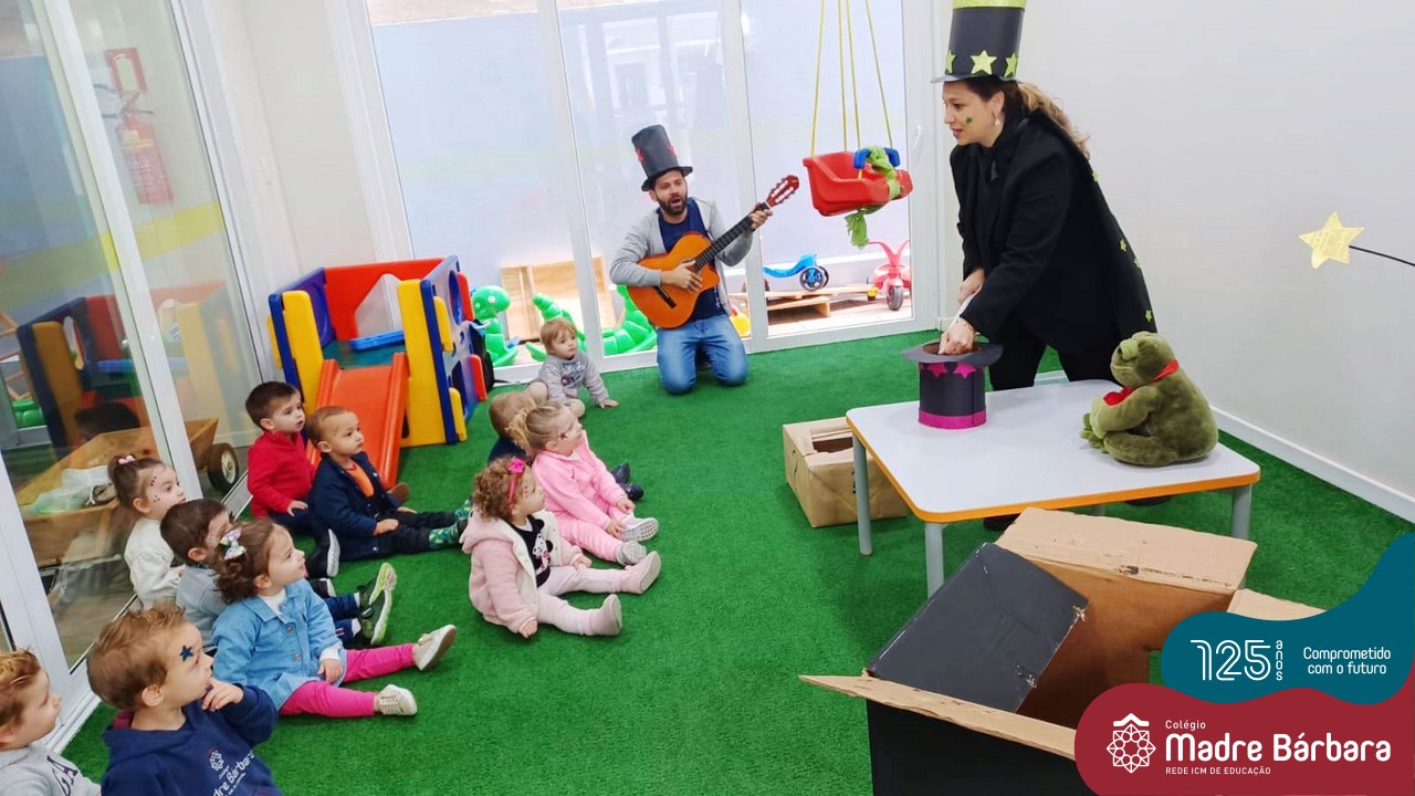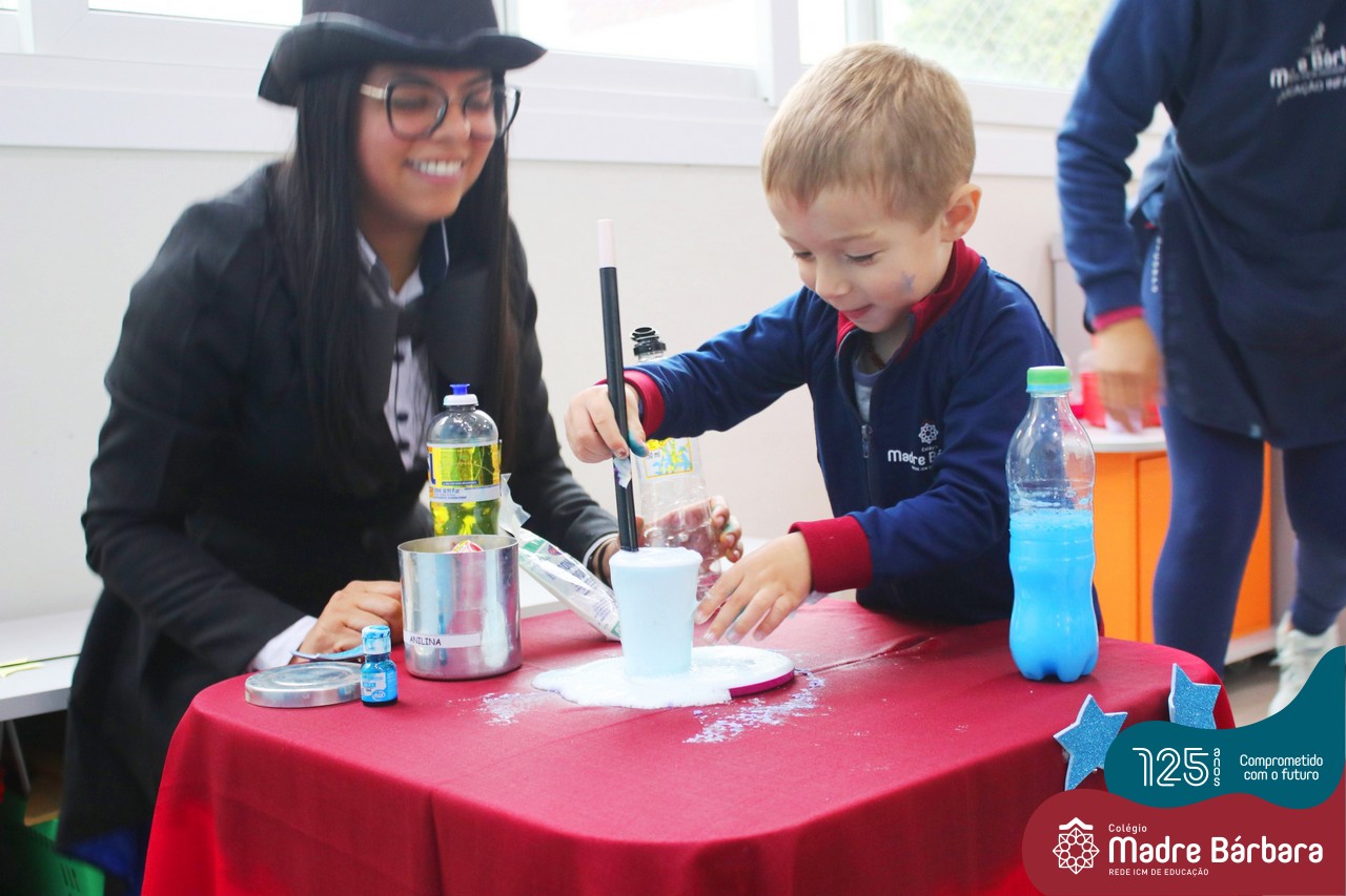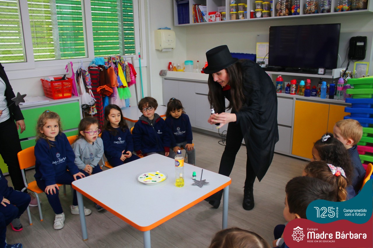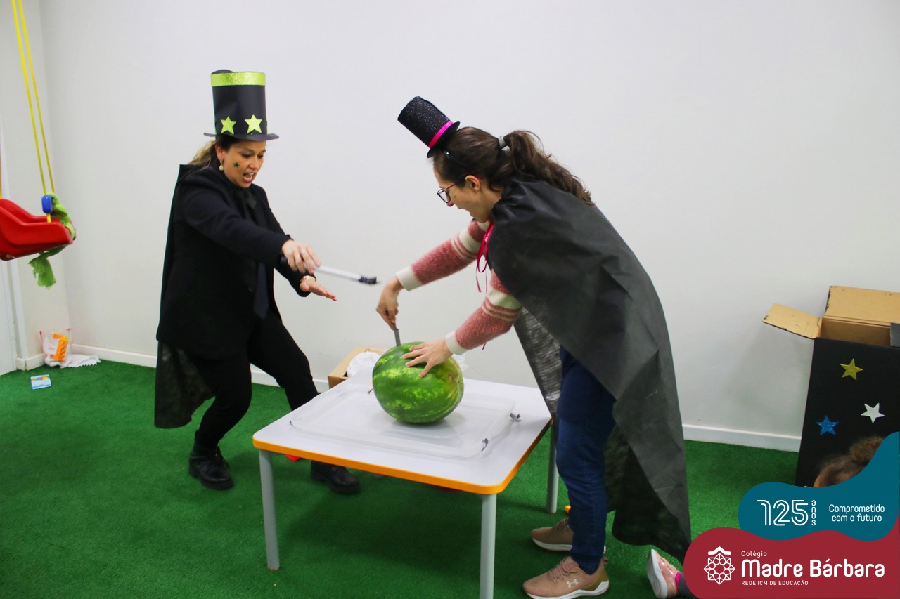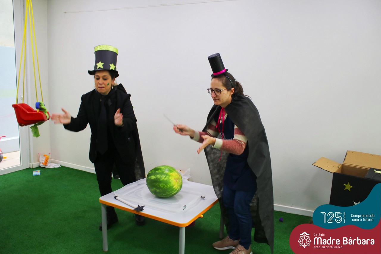 O primeiro dia da Semana da Criança foi marcado por encanto e magia. As crianças foram recebidas em um ambiente especialmente preparado com muita cor, cartolas e estrelas! O dia foi de mágicas que empolgaram as crianças e professoras. Abracadabra…simsalabim!!!