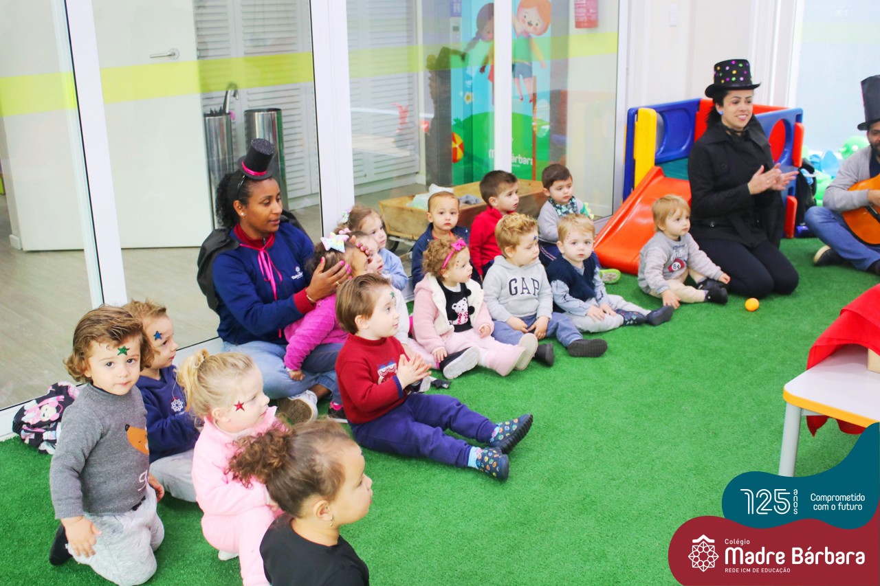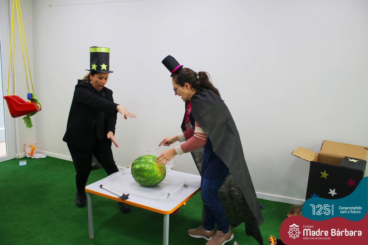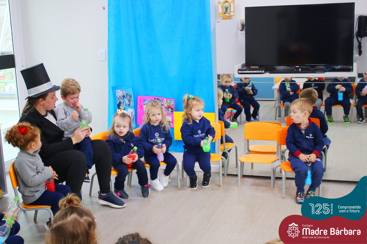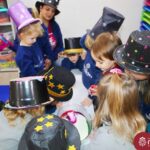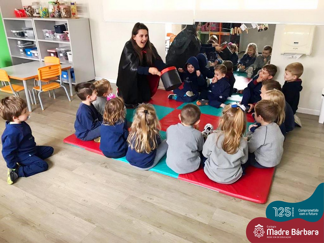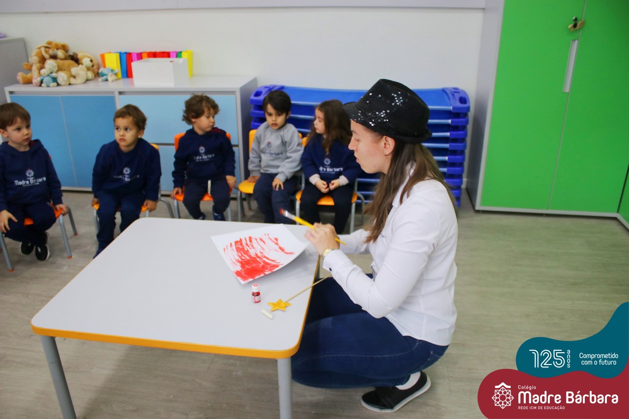 O primeiro dia da Semana da Criança foi marcado por encanto e magia. As crianças foram recebidas em um ambiente especialmente preparado com muita cor, cartolas e estrelas! O dia foi de mágicas que empolgaram as crianças e professoras. Abracadabra…simsalabim!!!