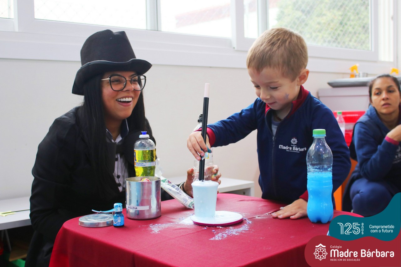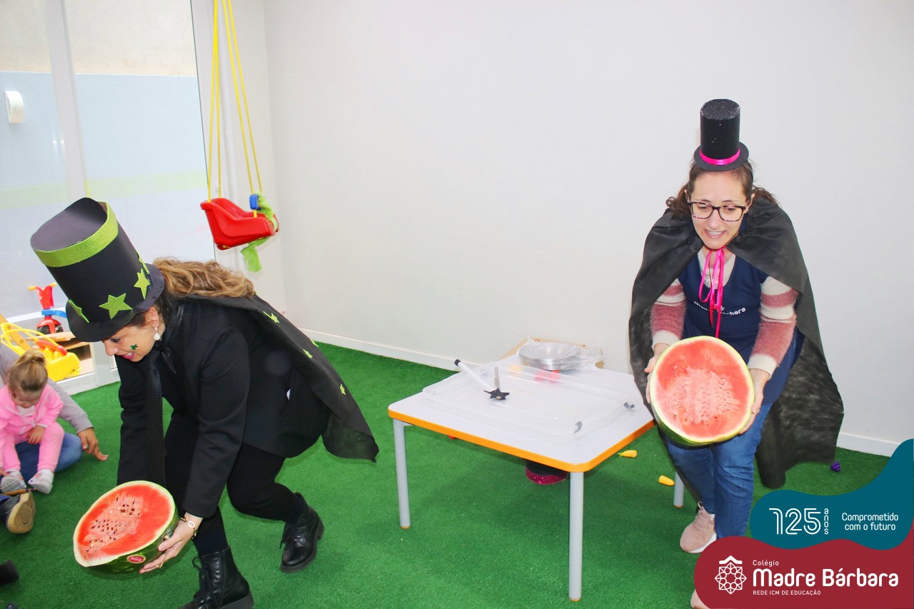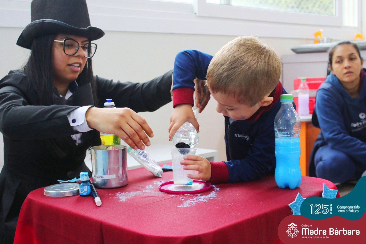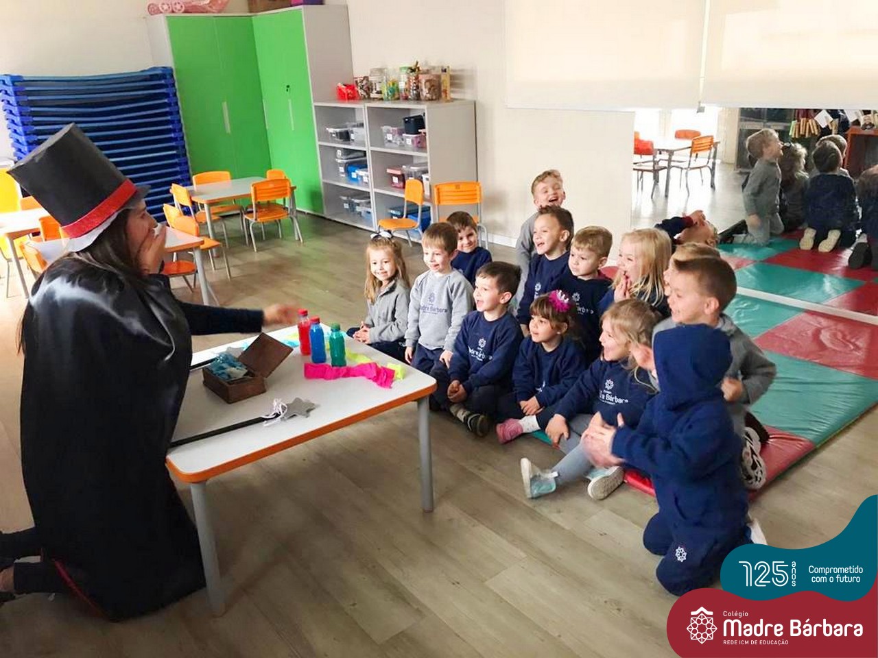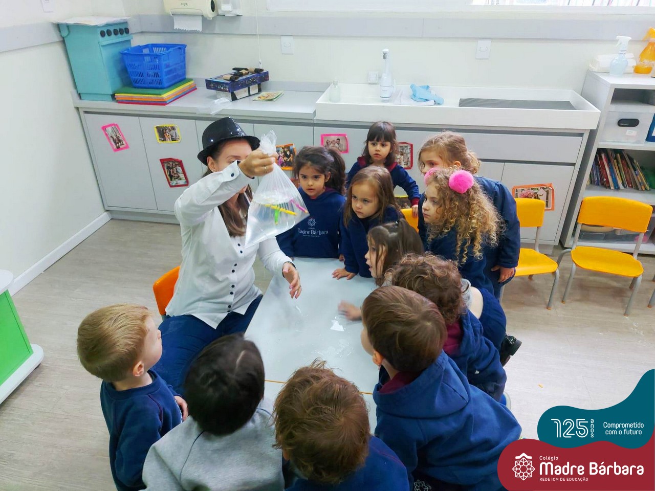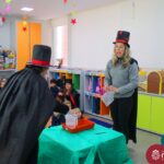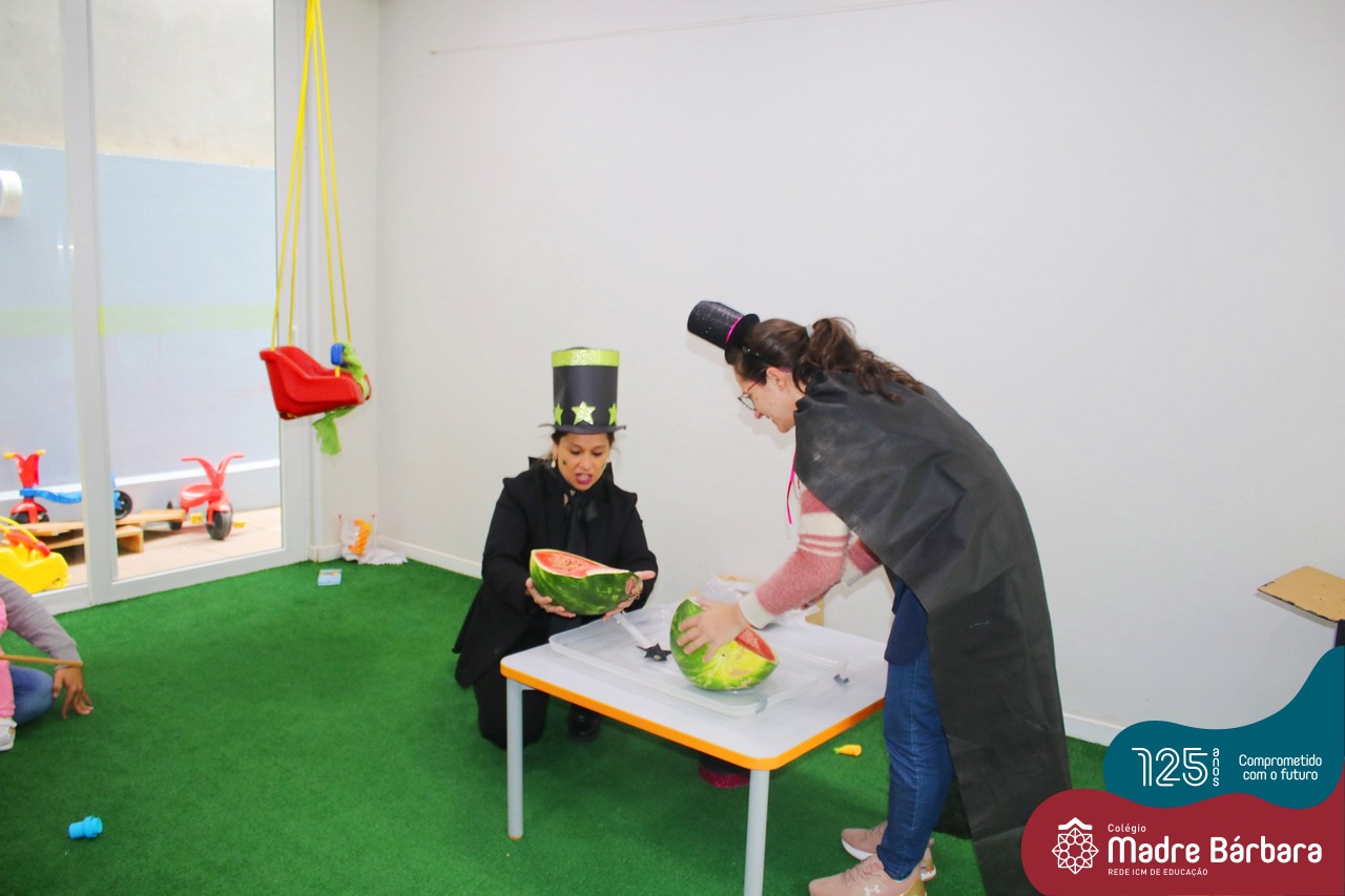 O primeiro dia da Semana da Criança foi marcado por encanto e magia. As crianças foram recebidas em um ambiente especialmente preparado com muita cor, cartolas e estrelas! O dia foi de mágicas que empolgaram as crianças e professoras. Abracadabra…simsalabim!!!