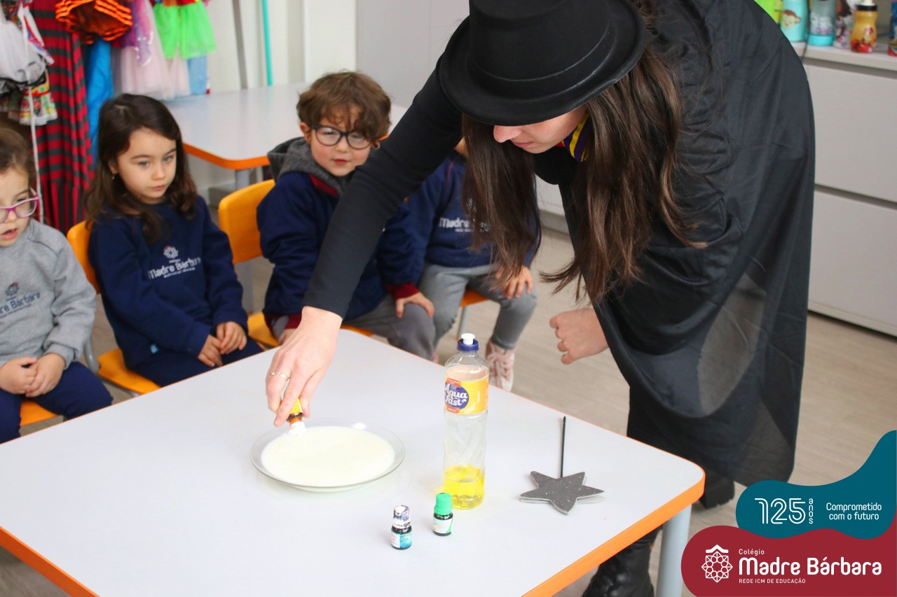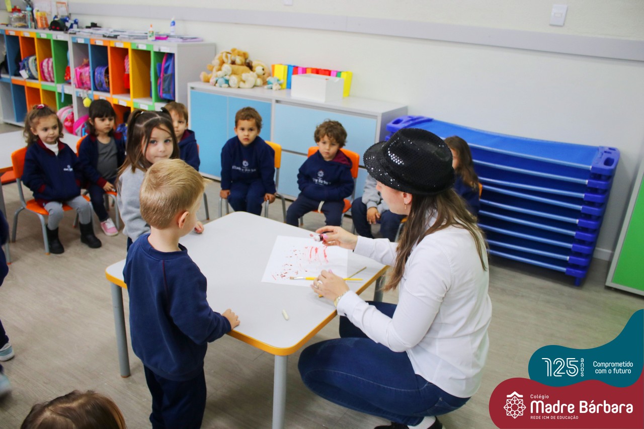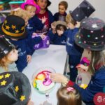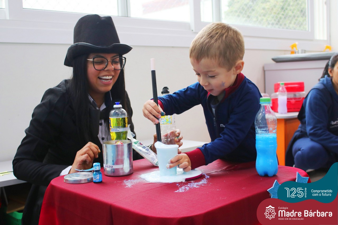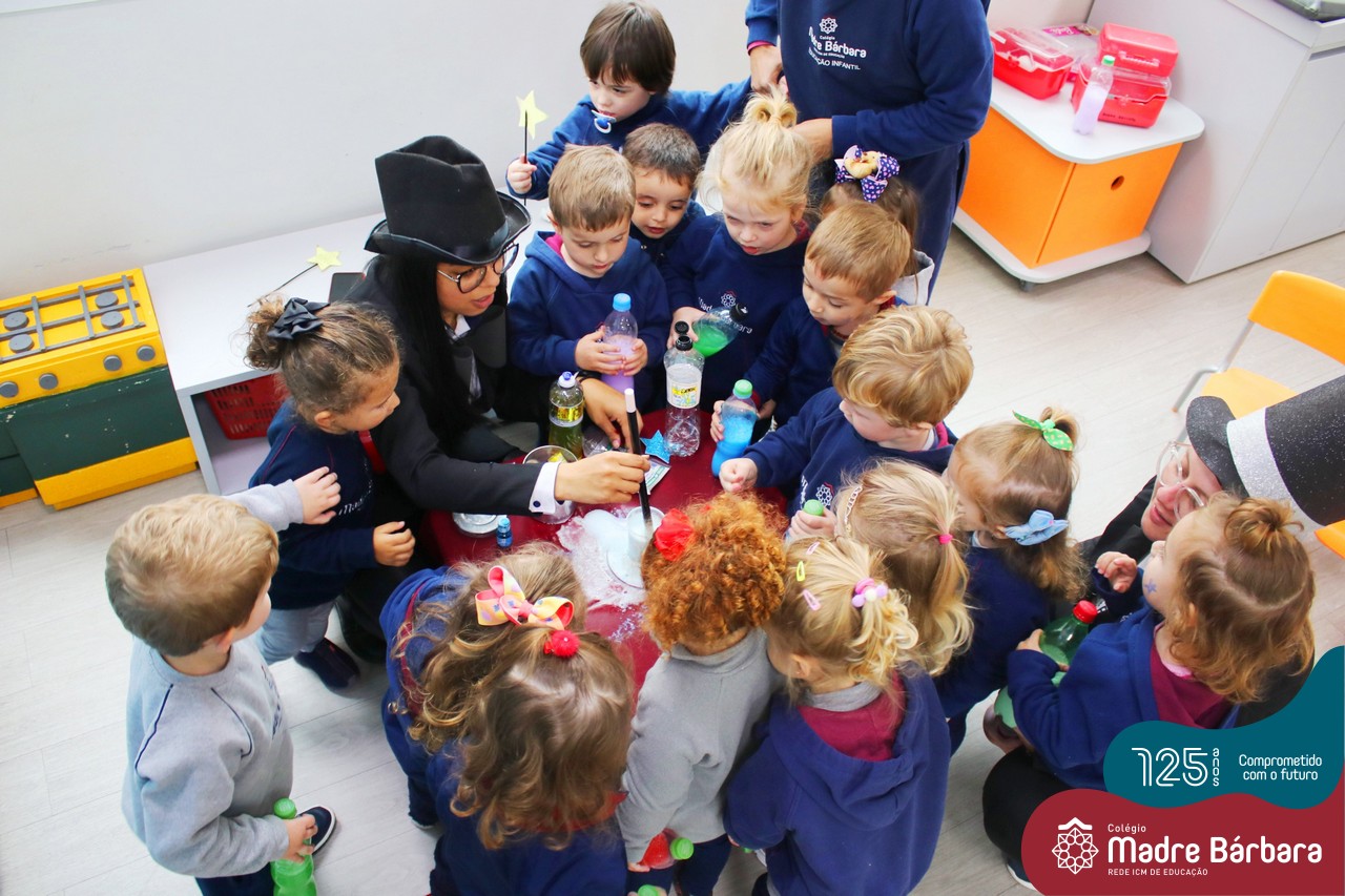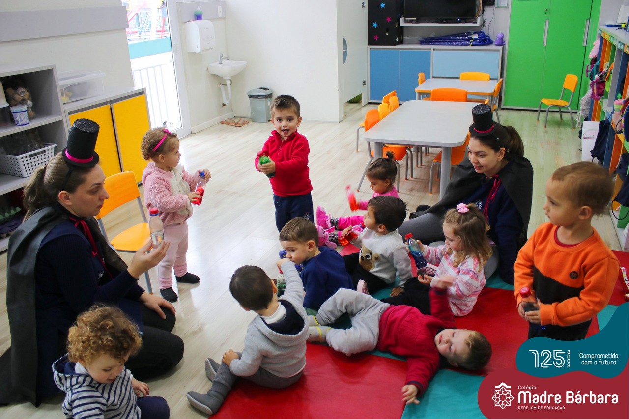 O primeiro dia da Semana da Criança foi marcado por encanto e magia. As crianças foram recebidas em um ambiente especialmente preparado com muita cor, cartolas e estrelas! O dia foi de mágicas que empolgaram as crianças e professoras. Abracadabra…simsalabim!!!
