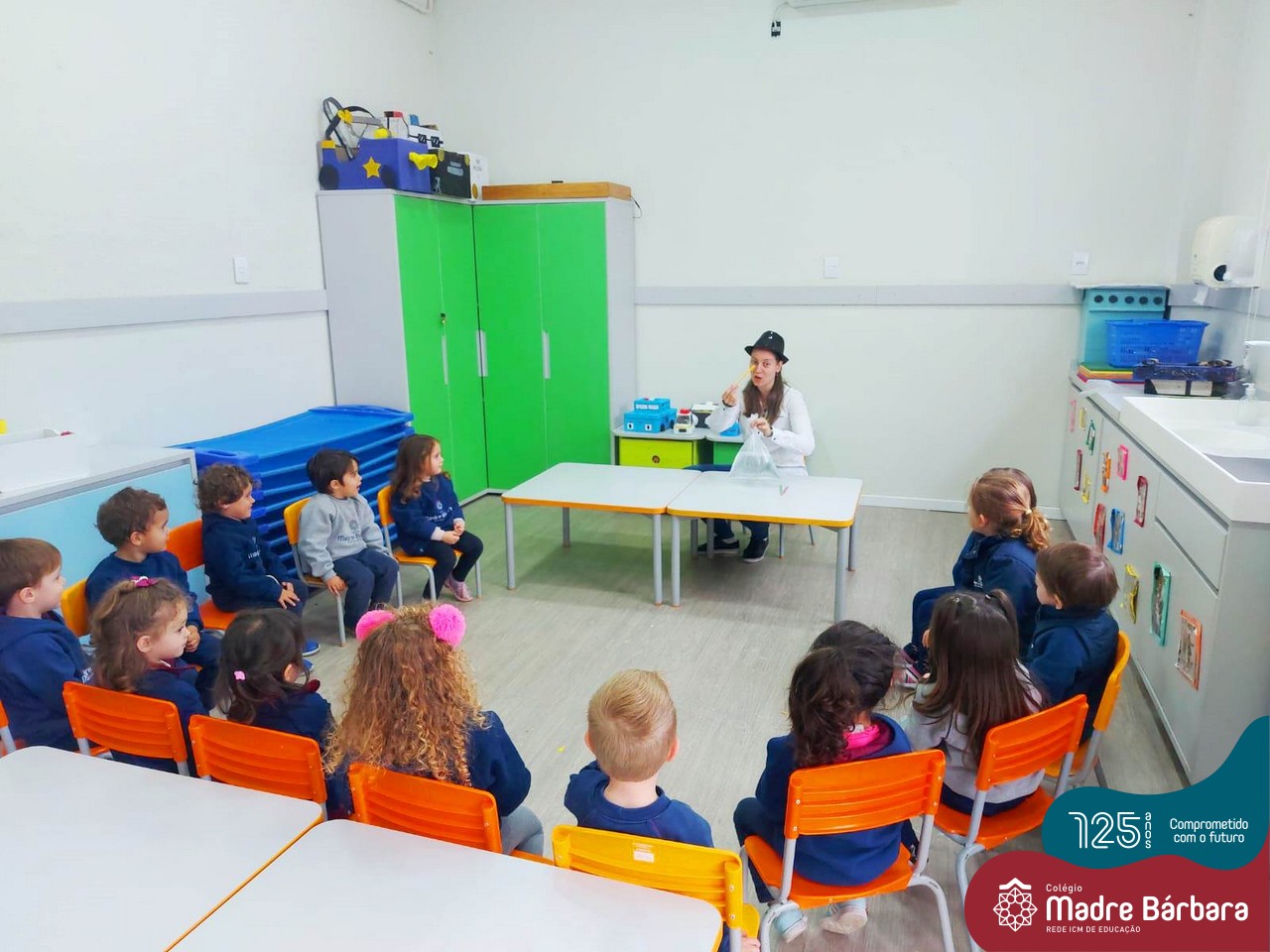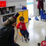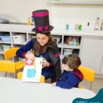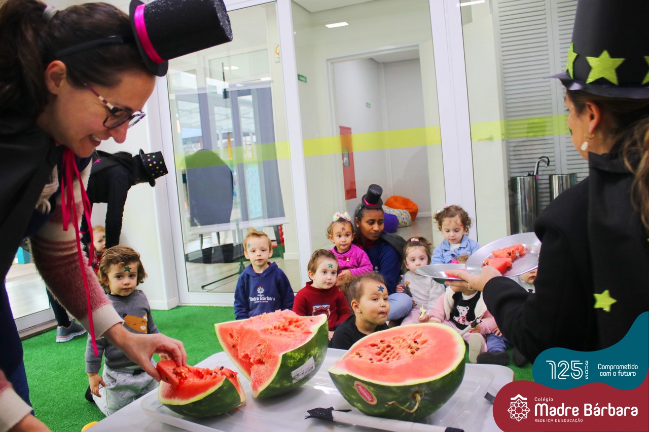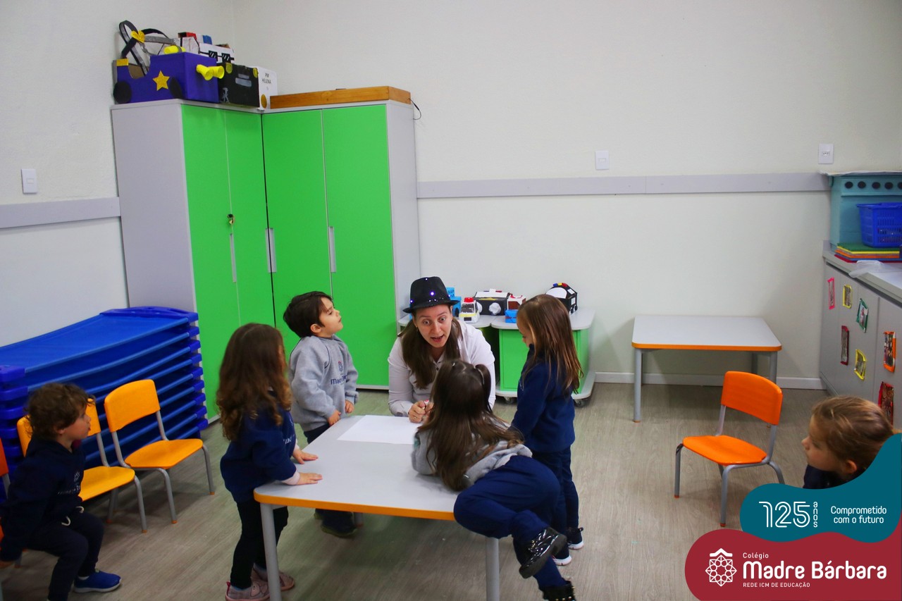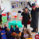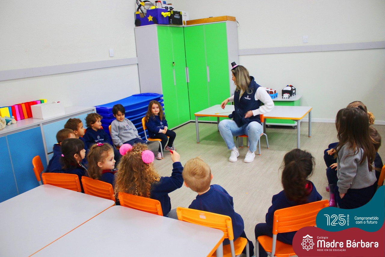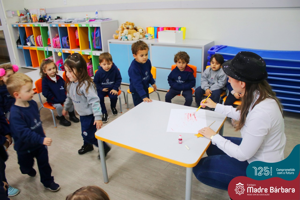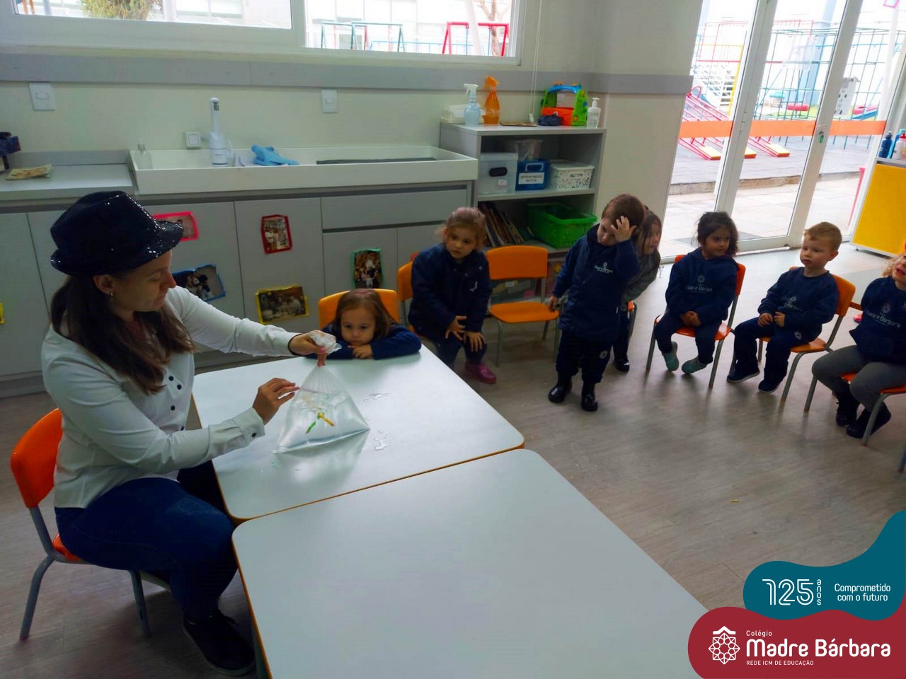 O primeiro dia da Semana da Criança foi marcado por encanto e magia. As crianças foram recebidas em um ambiente especialmente preparado com muita cor, cartolas e estrelas! O dia foi de mágicas que empolgaram as crianças e professoras. Abracadabra…simsalabim!!!