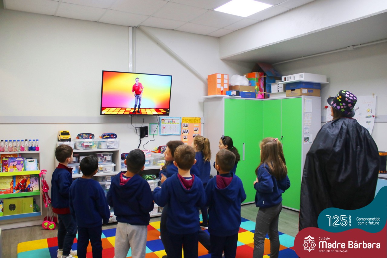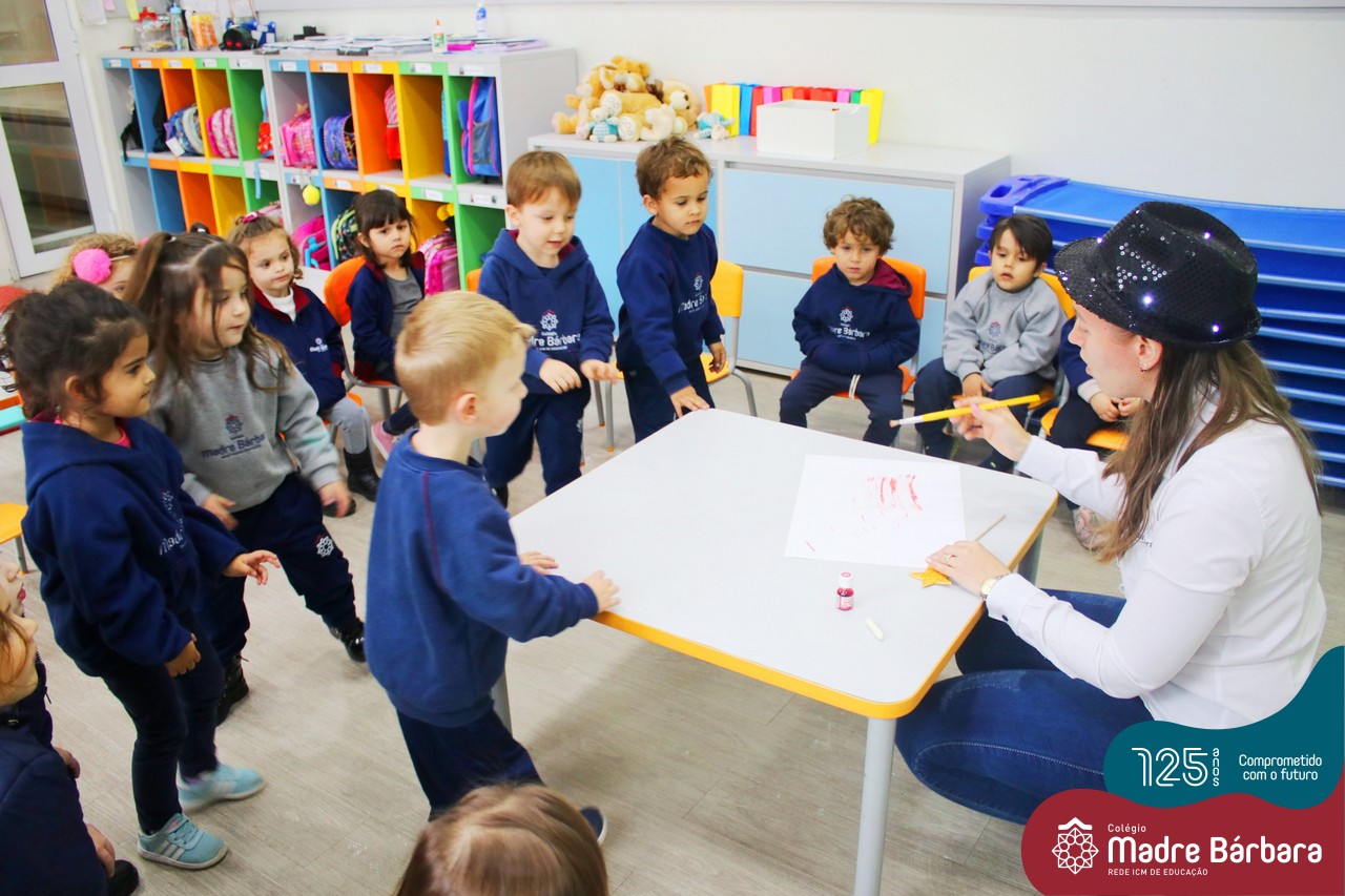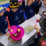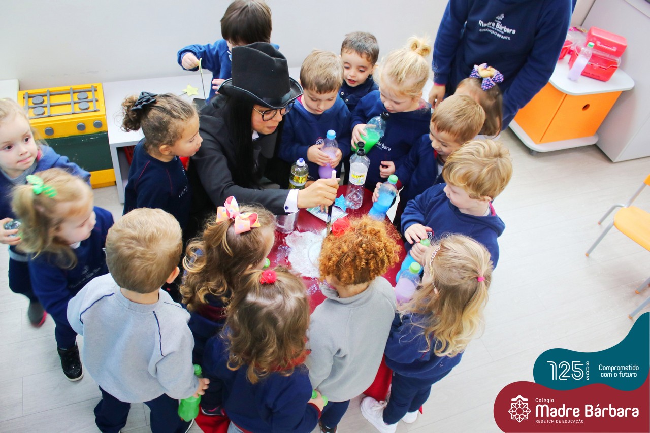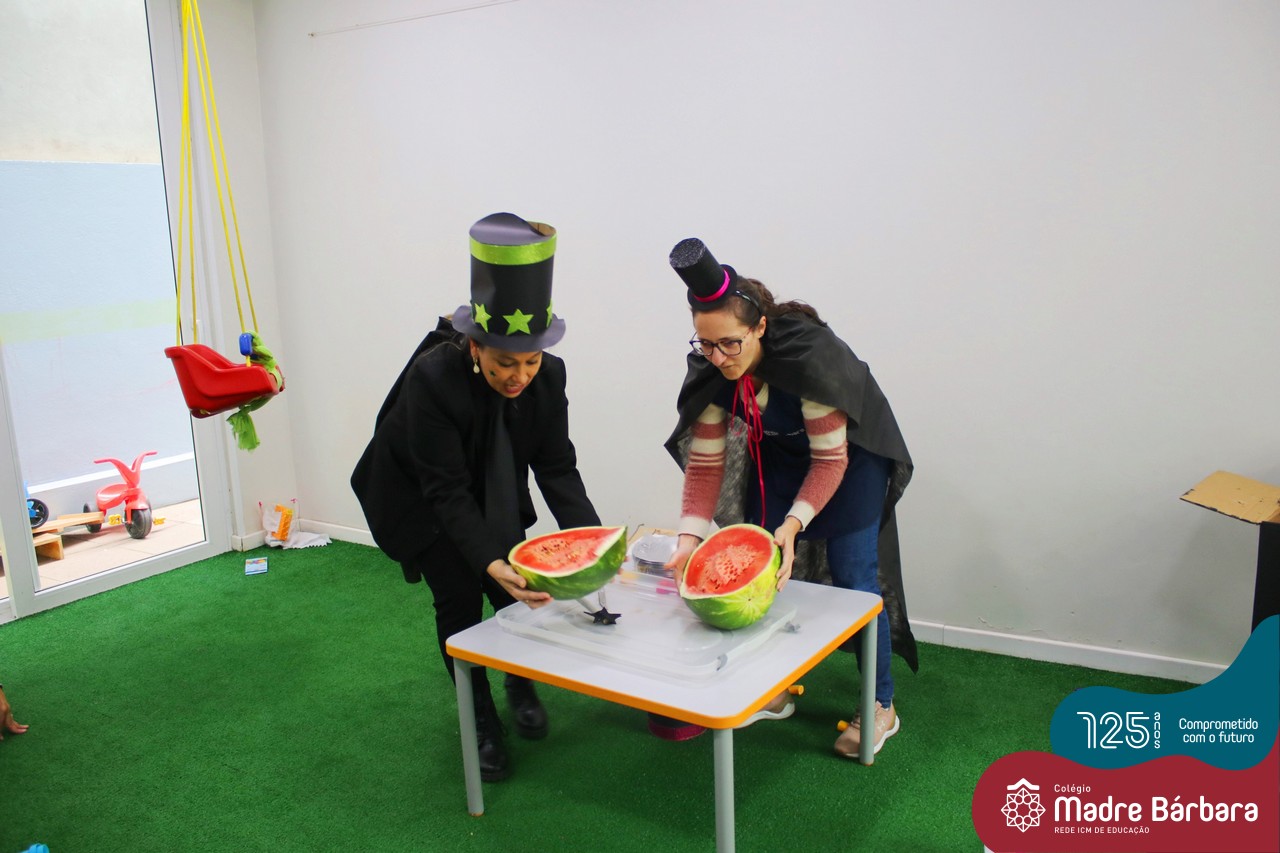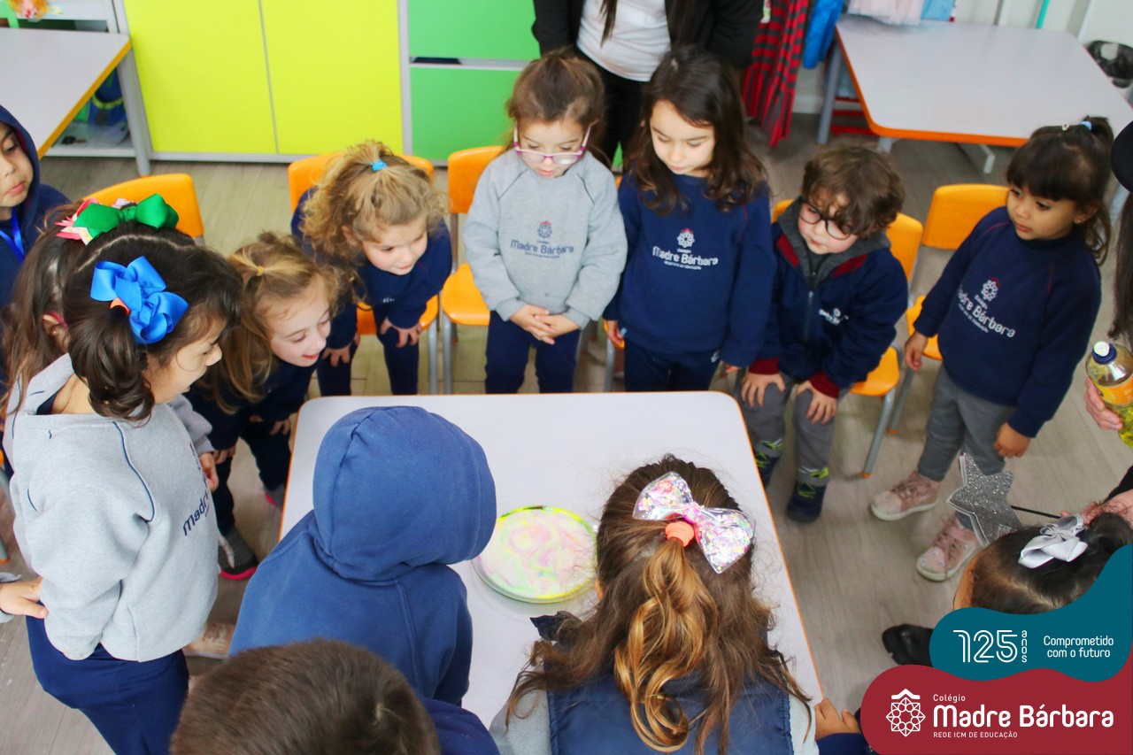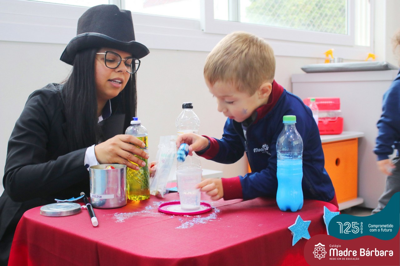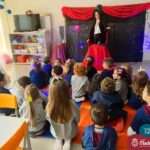 O primeiro dia da Semana da Criança foi marcado por encanto e magia. As crianças foram recebidas em um ambiente especialmente preparado com muita cor, cartolas e estrelas! O dia foi de mágicas que empolgaram as crianças e professoras. Abracadabra…simsalabim!!!