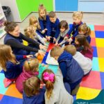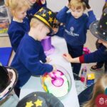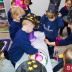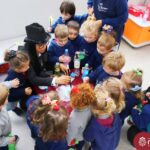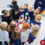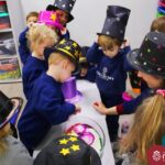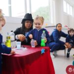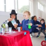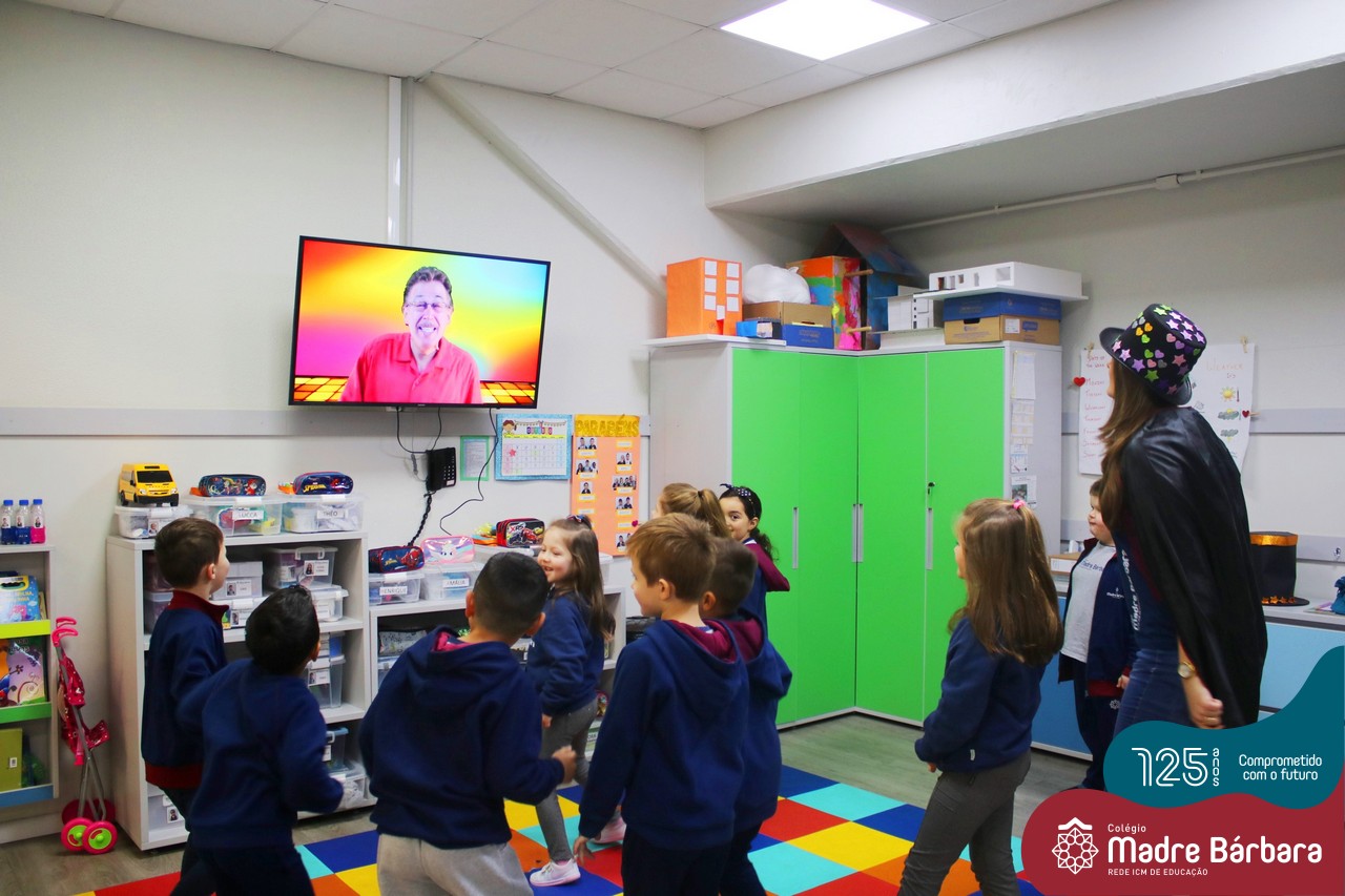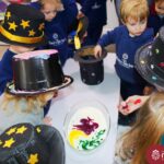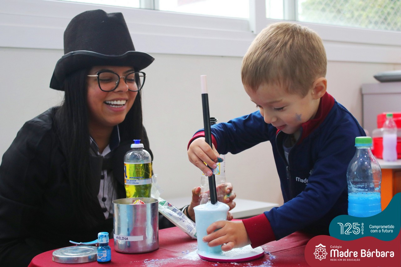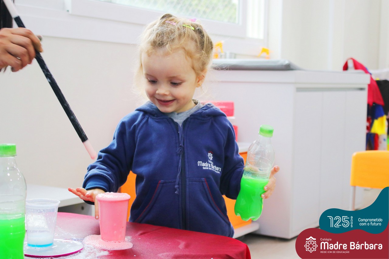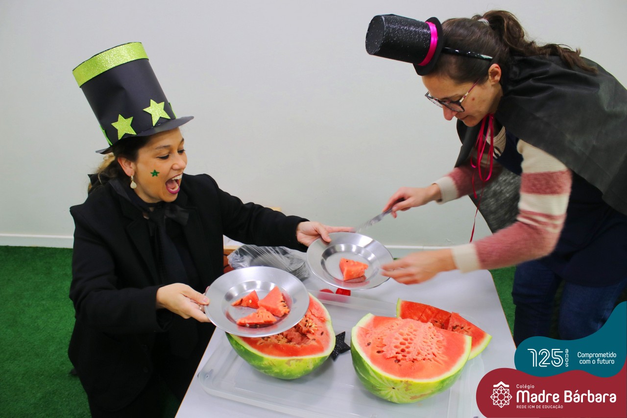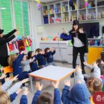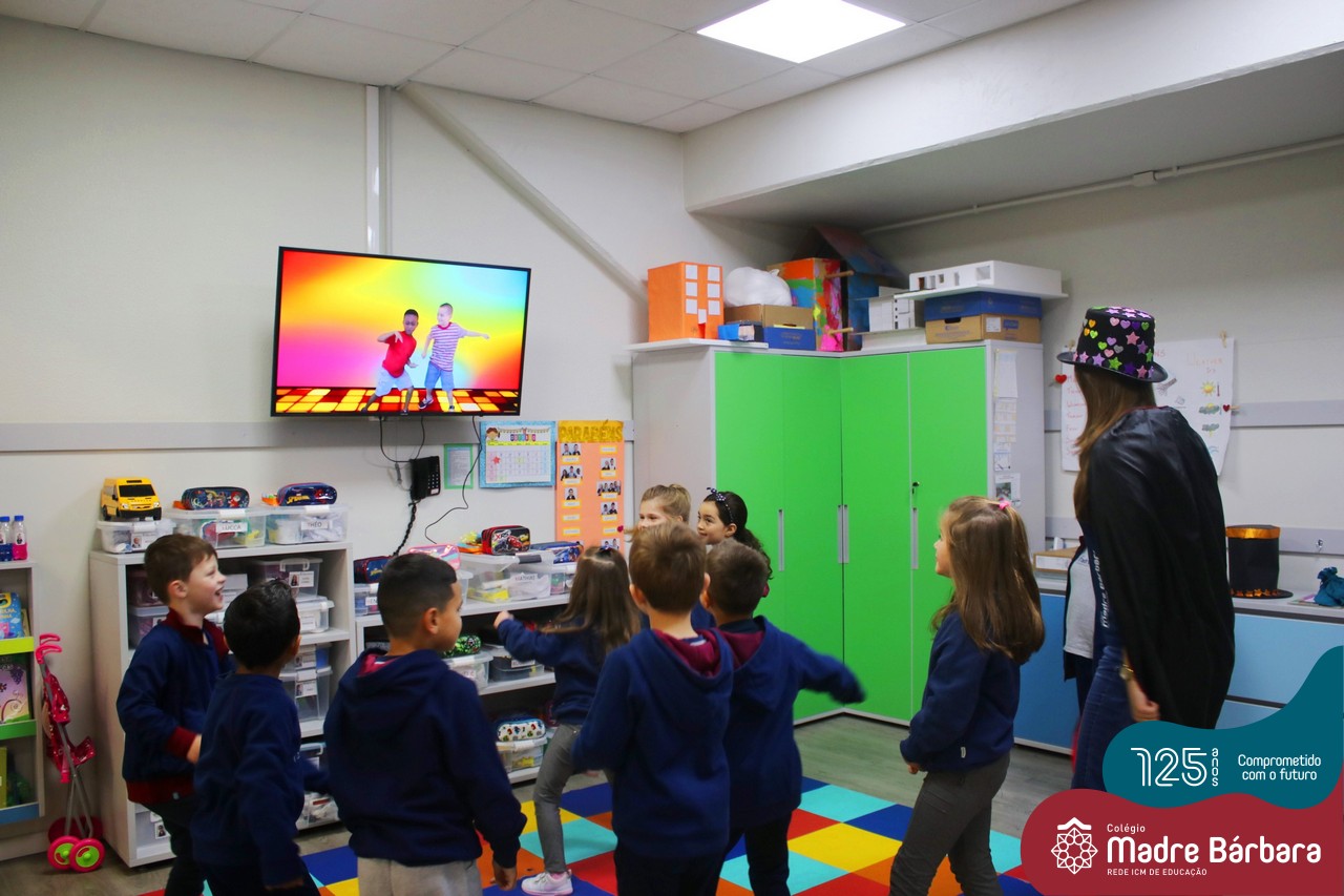 O primeiro dia da Semana da Criança foi marcado por encanto e magia. As crianças foram recebidas em um ambiente especialmente preparado com muita cor, cartolas e estrelas! O dia foi de mágicas que empolgaram as crianças e professoras. Abracadabra…simsalabim!!!