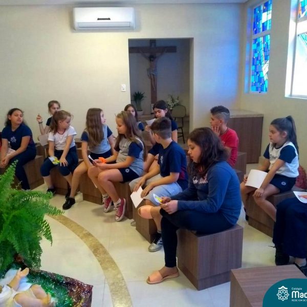 O Dia de Ação de Graças remete à gratidão que se deve ter pelas coisas boas que ocorrem no decorrer do ano. Nesse sentido, no dia 28 de novembro, as turmas do turno da tarde 14, 24, 34 e 44, participaram de um momento na capela, onde foi possível refletir e agradecer pelas bênçãos que Deus proporciona ao longo da vida.