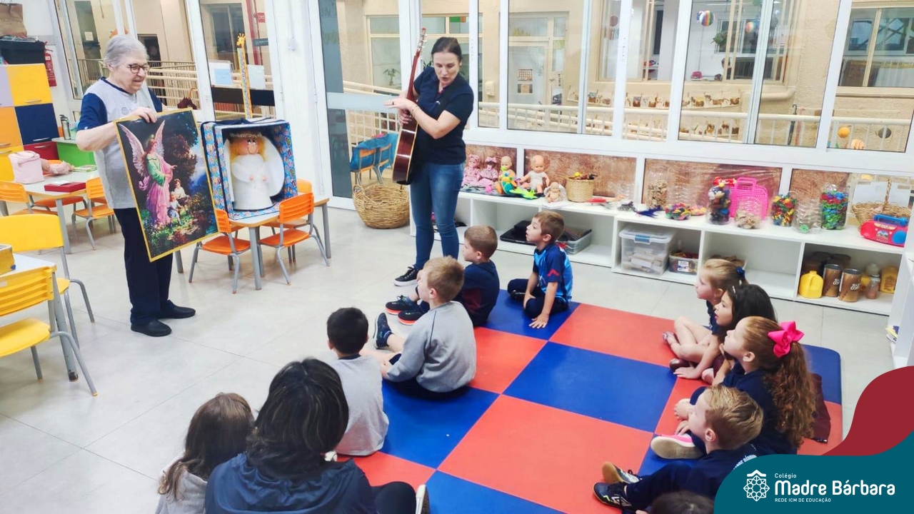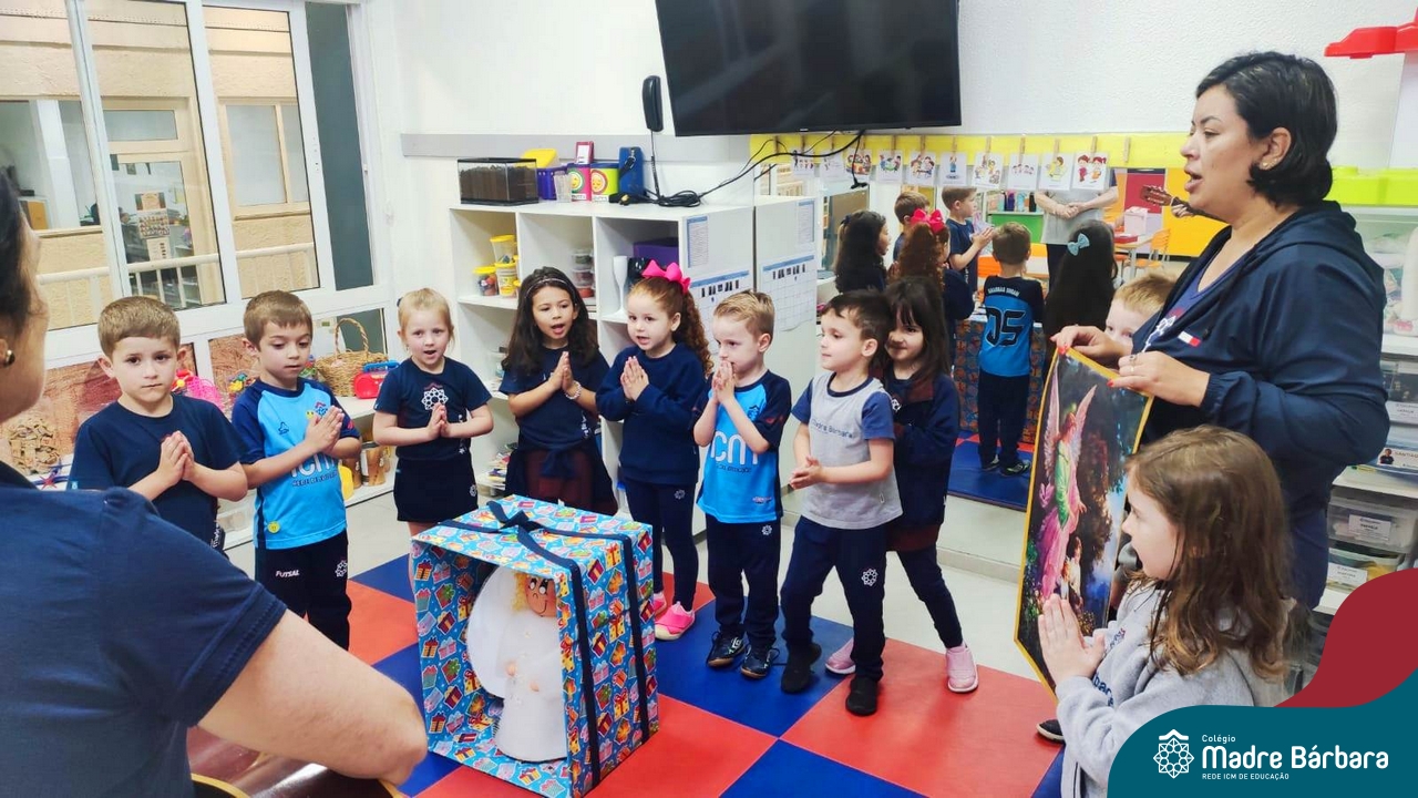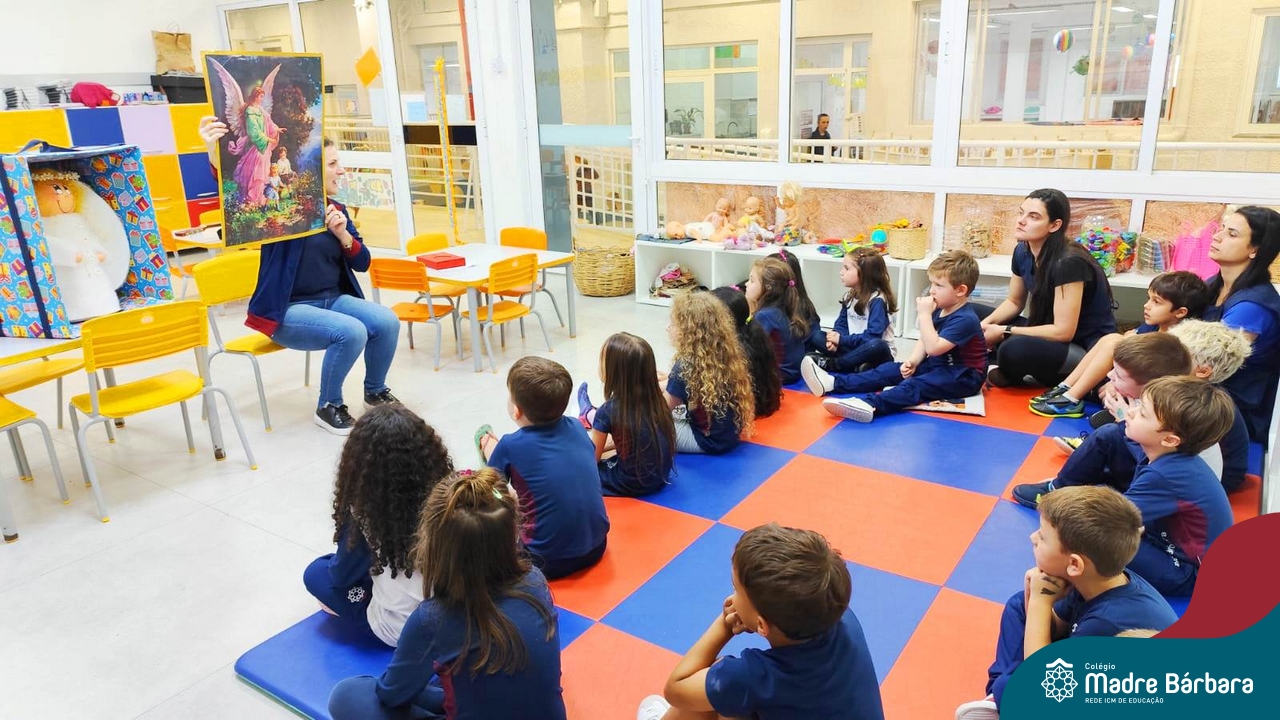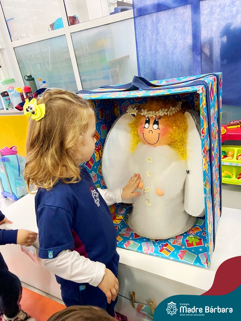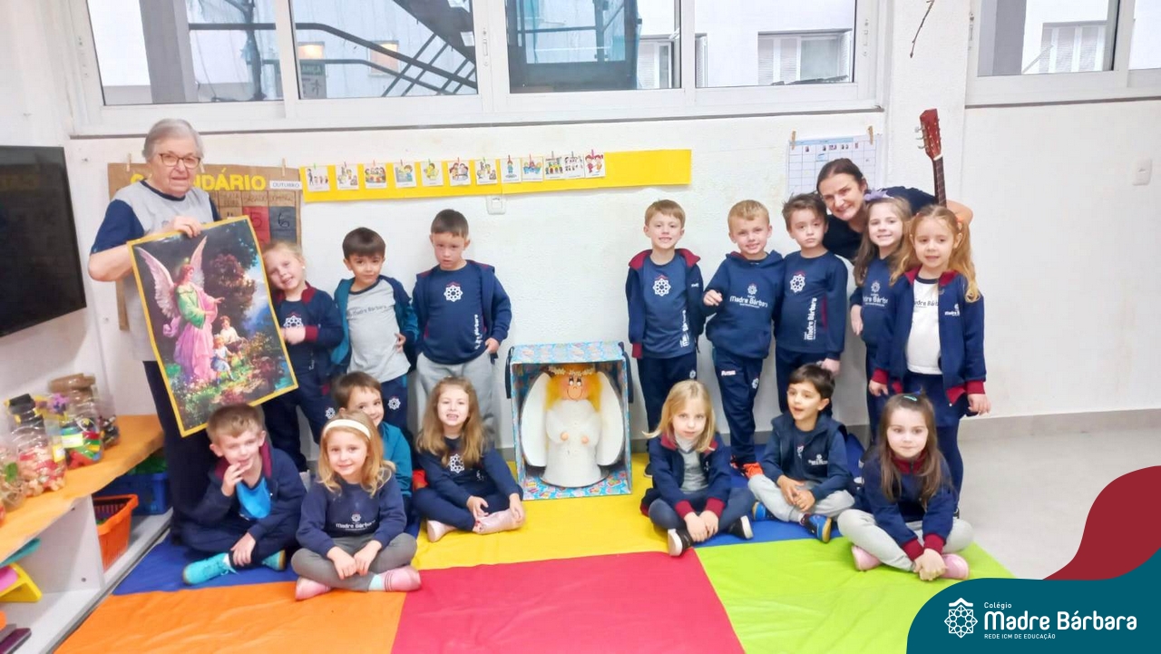 O Anjo da Guarda é um presente particular do amor de Deus a cada um de nós e o Anjo nos acompanha por toda a nossa existência. A Pastoral Escolar fez um momento celebrativo, nas salas de aula, da Educação Infantil. Anjo da Guarda meu bom amiguinho sempre me leve para o bom caminho.