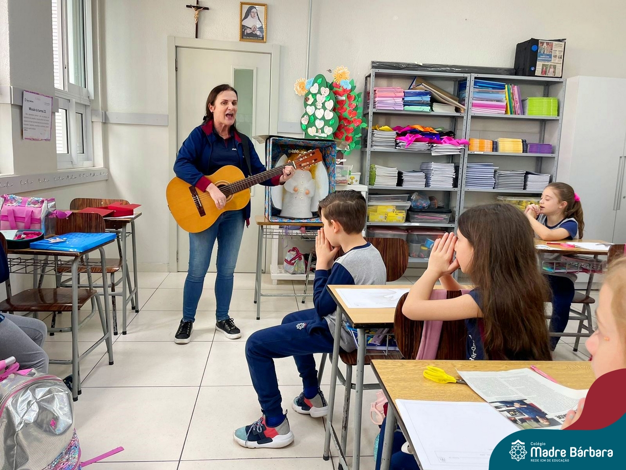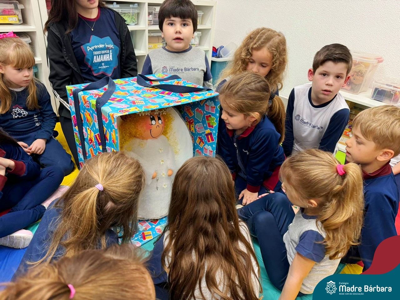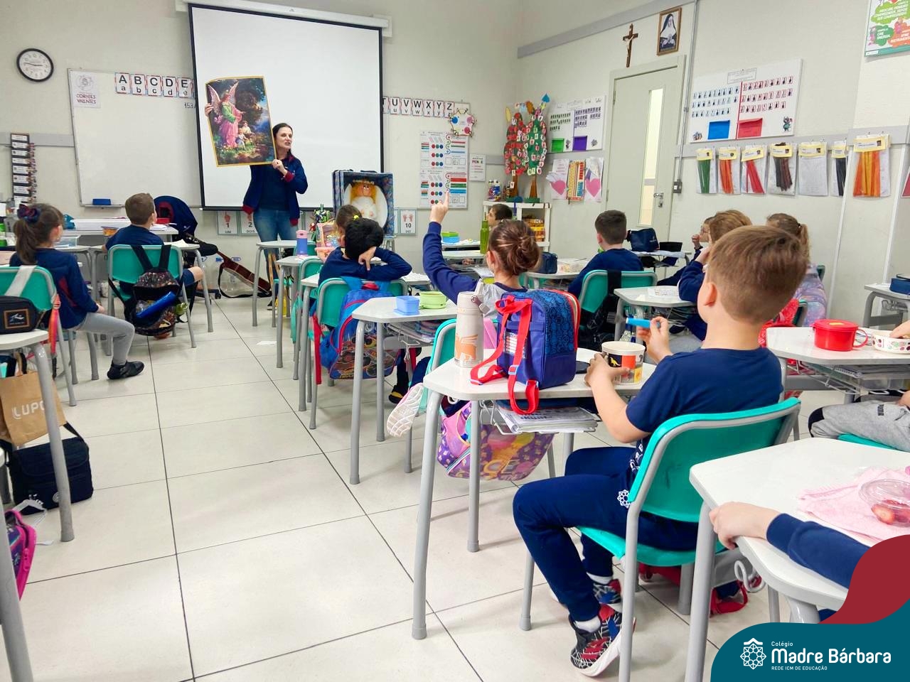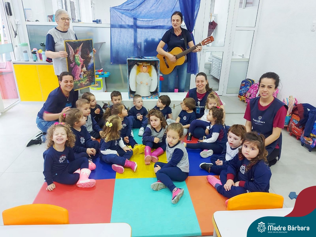 O Anjo da Guarda é um presente particular do amor de Deus a cada um de nós e o Anjo nos acompanha por toda a nossa existência. A Pastoral Escolar fez um momento celebrativo, nas salas de aula, da Educação Infantil. Anjo da Guarda meu bom amiguinho sempre me leve para o bom caminho.