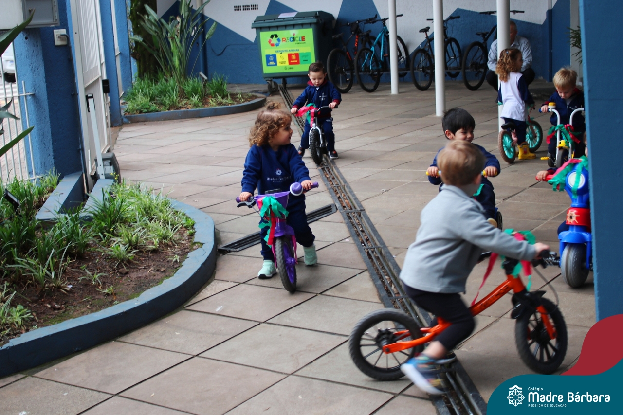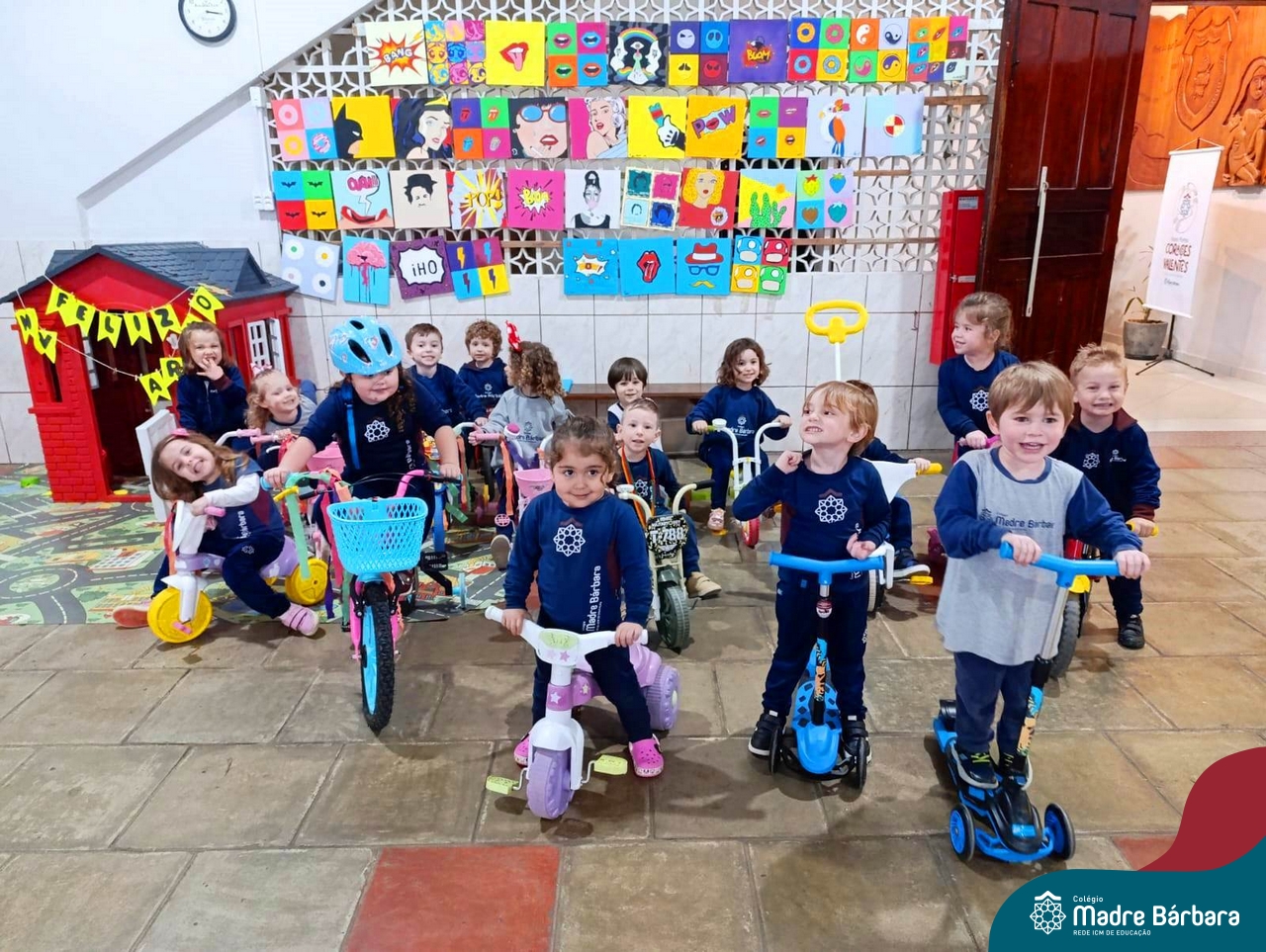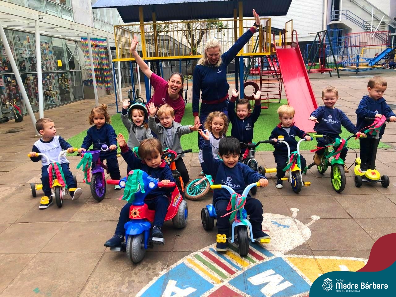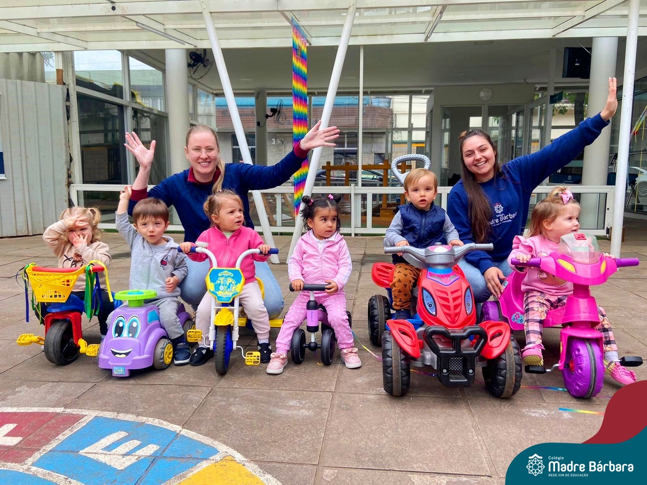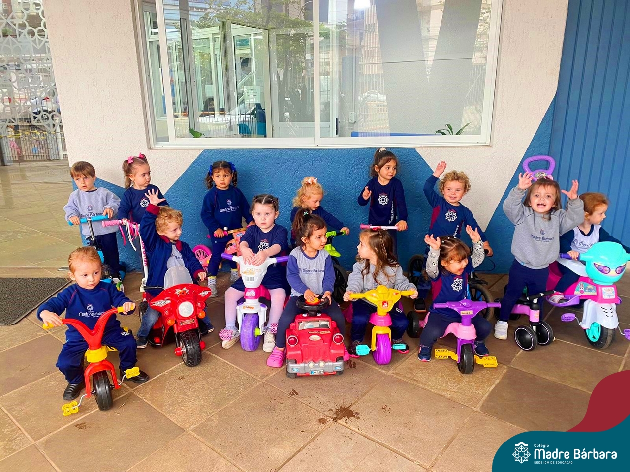 A Semana da Criança está intensa na Educação Infantil do Colégio Madre Bárbara – Rede ICM. Nesta quarta-feira (09.10) cada Nível de Ensino propôs uma atividade para encantar as crianças. Nos Níveis 1 e 2, foi Dia Sobre Rodas, onde poderiam levar patinete, bicicleta ou motoca. Nos Níveis 3, 4 e 5 teve Penteado Maluco e Maquiagem Artística, além de sacolé de fruta. Muitos momentos especiais estão trazendo alegria, aprendizado e diversão. E nos próximos dias tem mais! Aguardem!