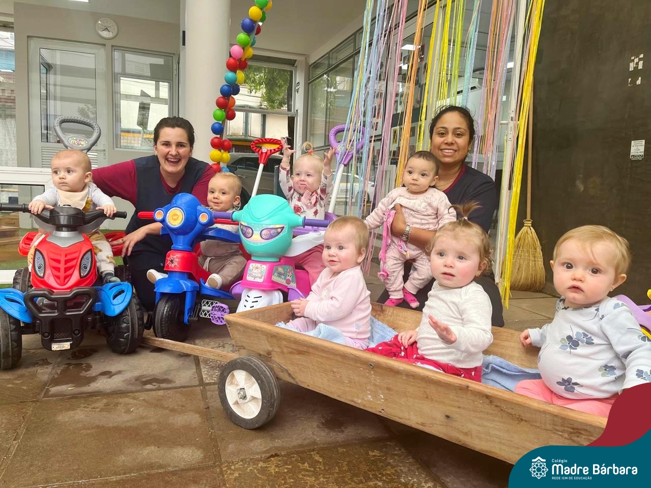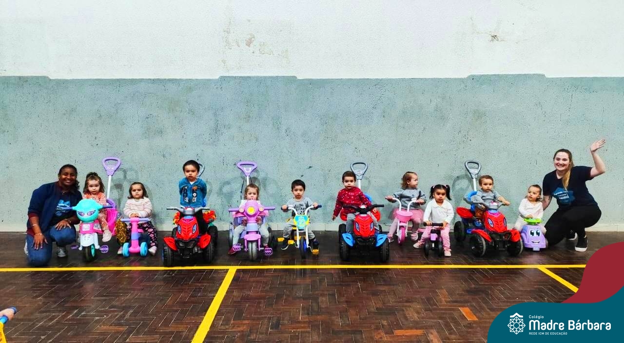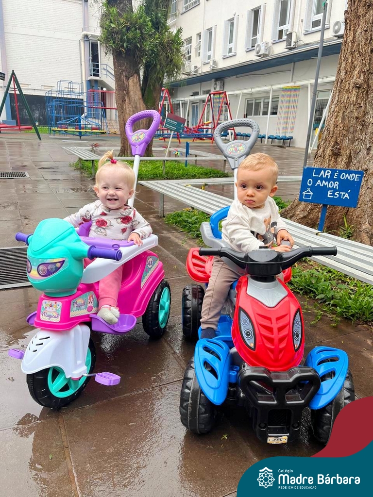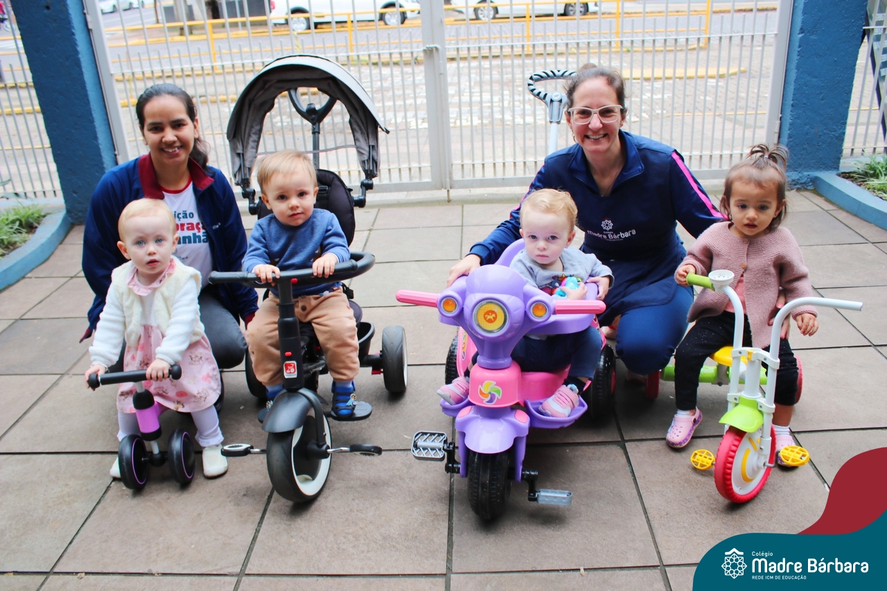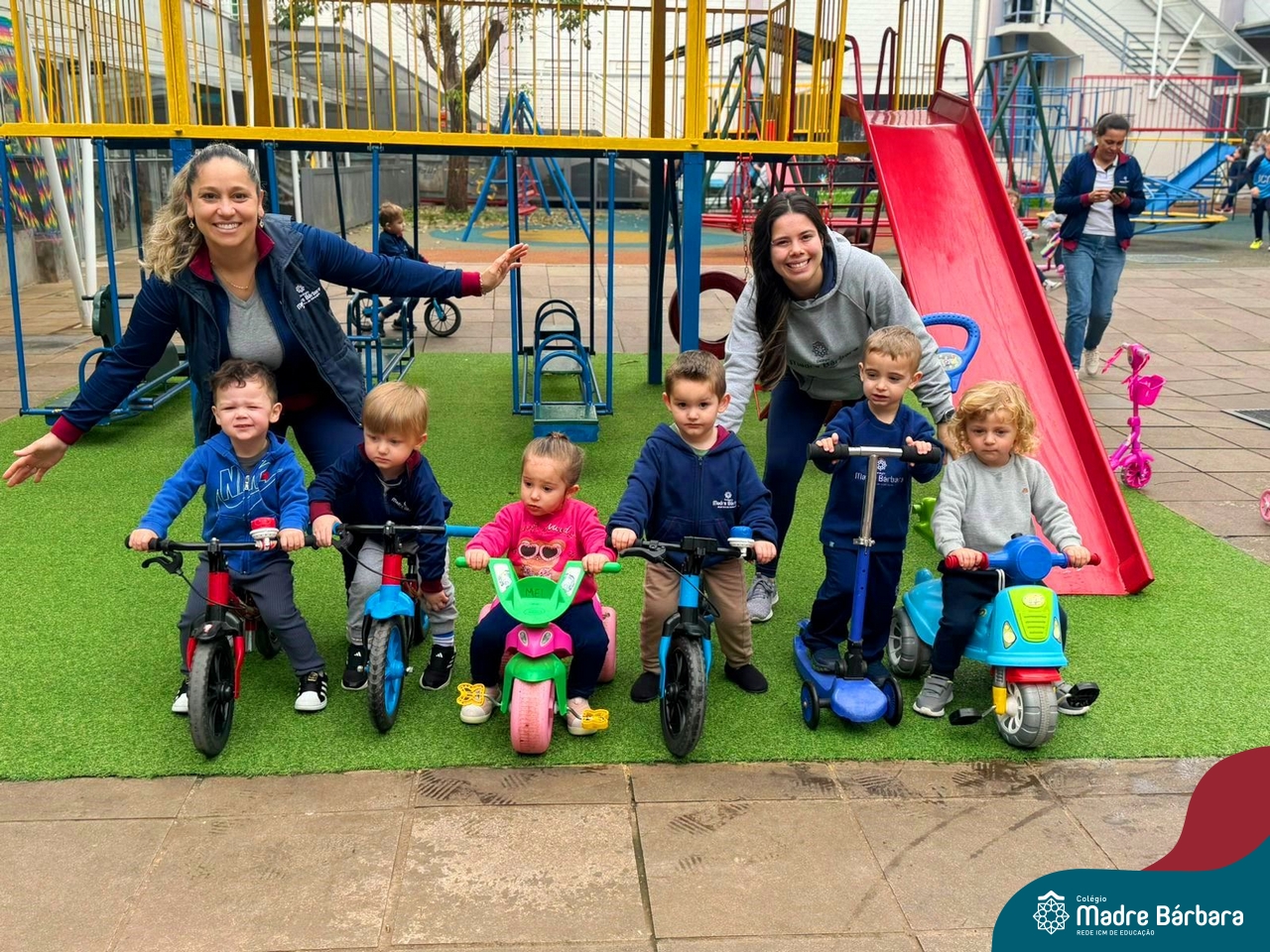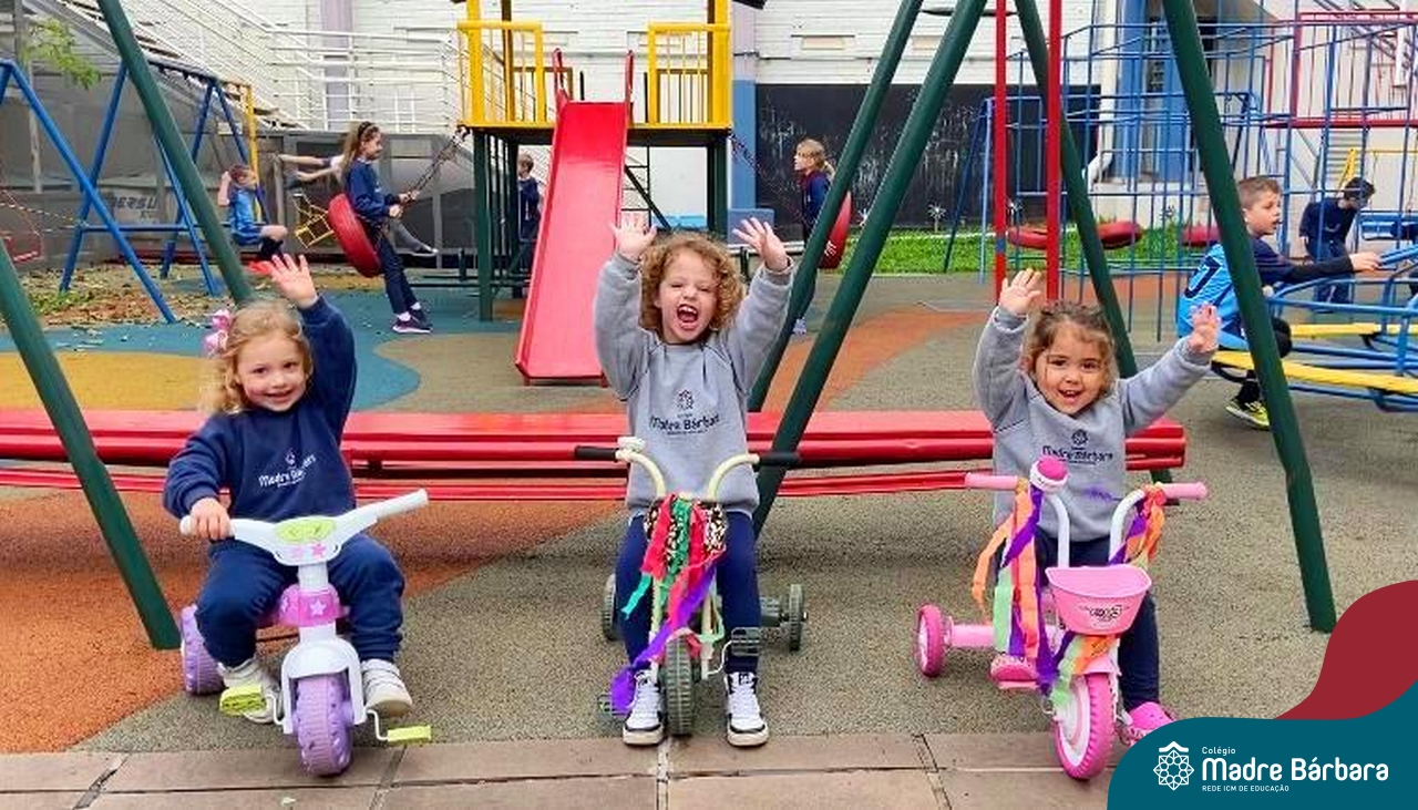 A Semana da Criança está intensa na Educação Infantil do Colégio Madre Bárbara – Rede ICM. Nesta quarta-feira (09.10) cada Nível de Ensino propôs uma atividade para encantar as crianças. Nos Níveis 1 e 2, foi Dia Sobre Rodas, onde poderiam levar patinete, bicicleta ou motoca. Nos Níveis 3, 4 e 5 teve Penteado Maluco e Maquiagem Artística, além de sacolé de fruta. Muitos momentos especiais estão trazendo alegria, aprendizado e diversão. E nos próximos dias tem mais! Aguardem!