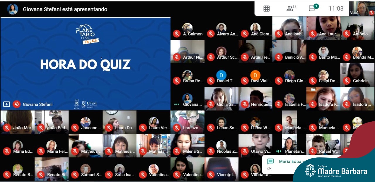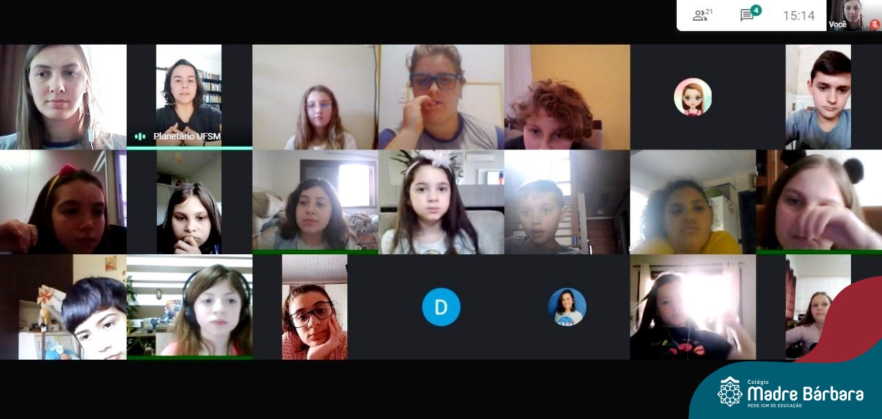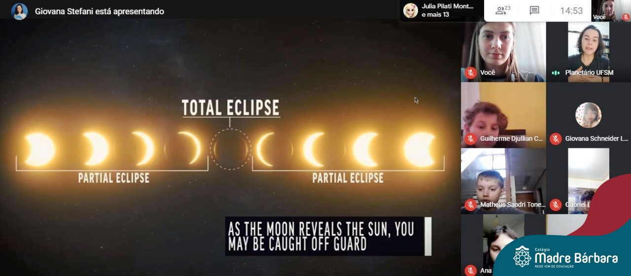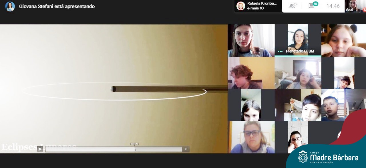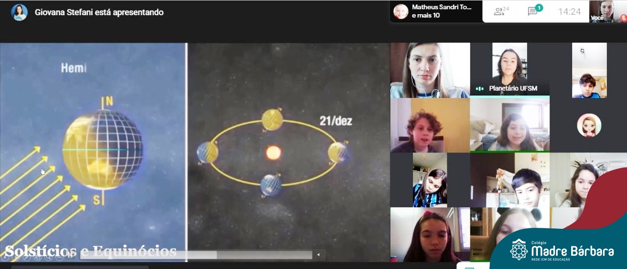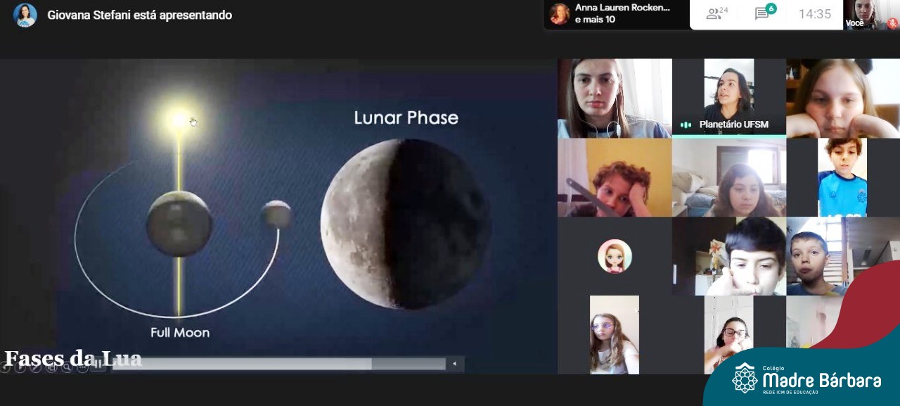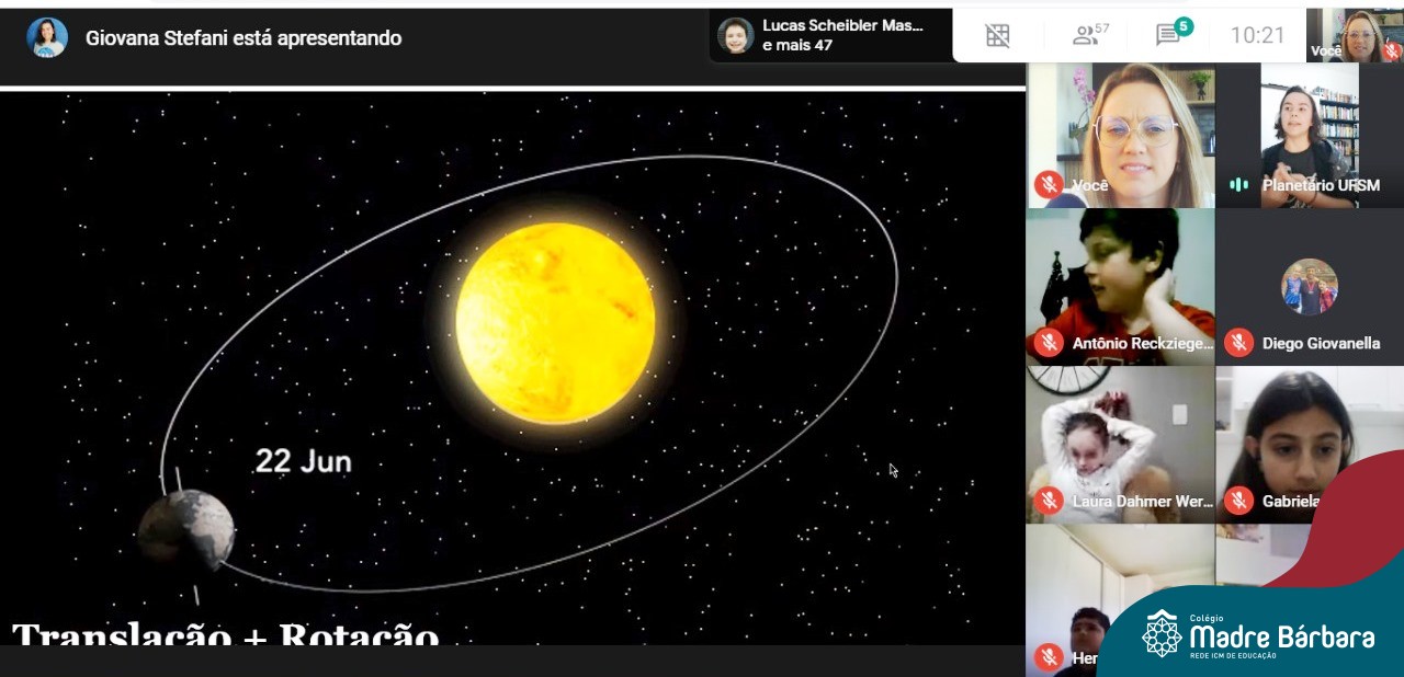 Nesta quinta-feira (24), as turmas 41, 42, 44 e 54 participaram da oficina “Do Ponto de Vista da Terra”, desenvolvida pelo Planetário UFSM, envolvendo os movimentos de rotação, translação, os equinócios, os eclipses, as fases da Lua e estações do ano. A oficina encerrou o estudo sobre Sistema Solar desenvolvido durante o segundo trimestre nas turmas dos quartos anos.