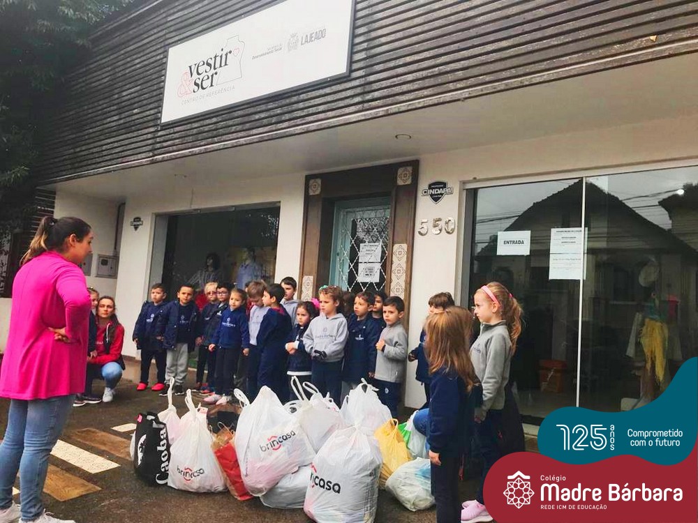 Nas aulas de língua inglesa, as crianças do nível 5C, a partir de uma história, intitulada “I WANT TO BE A FARMER” – a qual apresenta a moral de identificar a necessidade das outras pessoas e responder de um jeito apropriado para as situações que elas enfrentam. Daisy and Robin, personagens da história, perceberam que o espantalho estava triste e precisava de ajuda, e eles deram para ele suas próprias roupas para que ele conseguisse proteger os morangos que estavam sendo comidos pelos pássaros. As crianças refletiram sobre isso e resolveram fazer uma campanha da solidariedade, para também poderem destinar as roupas que não estavam mais usando para pessoas que mais precisavam. As roupas foram doadas para o Centro Vestir e Ser, da Prefeitura Municipal de Lajeado. Também foi realizada a montagem de um “scarecrow”, que ficou cuidando das roupas arrecadadas. Foi gratificante poder acompanhar as crianças em uma causa tão nobre e singela.