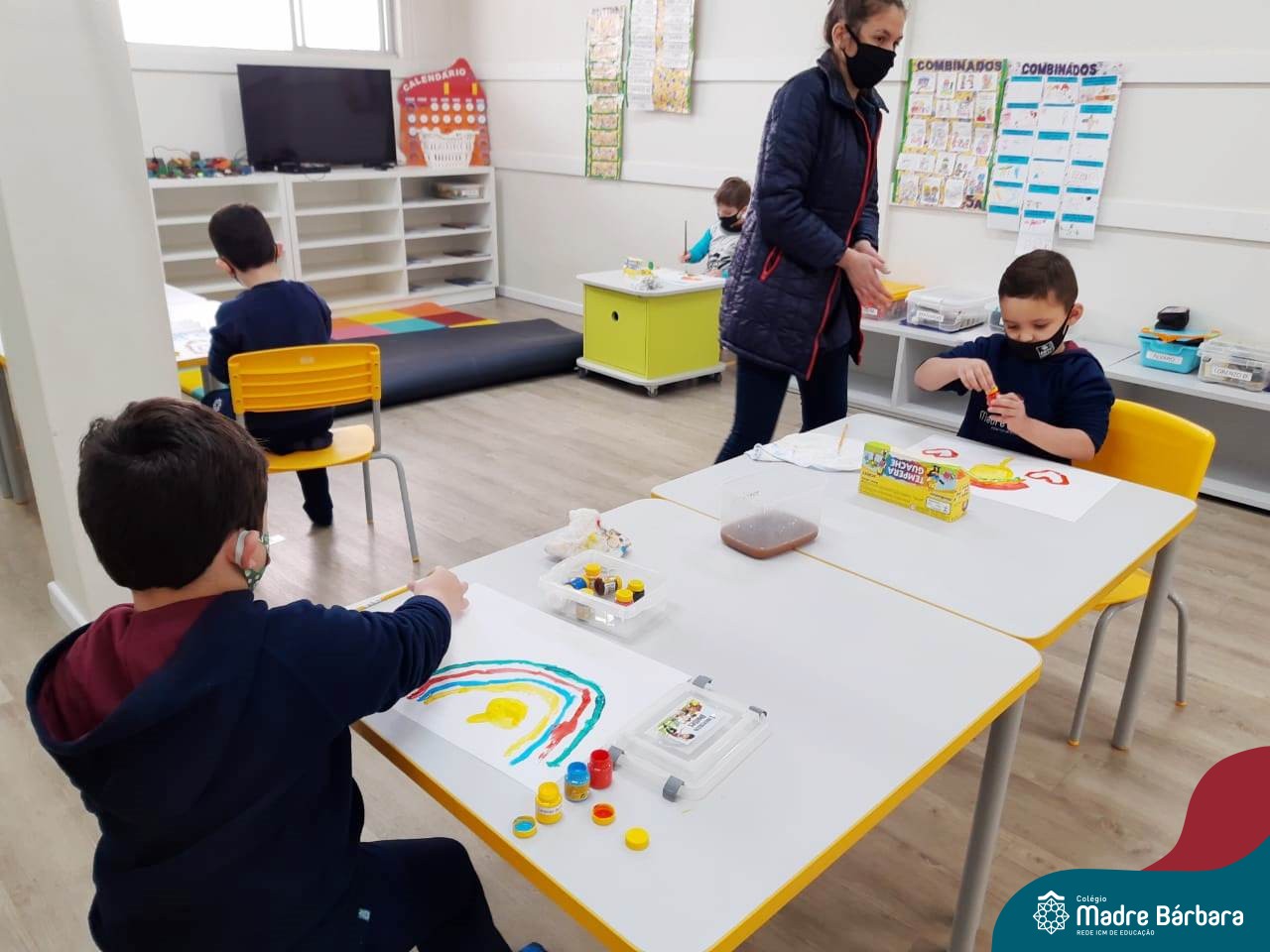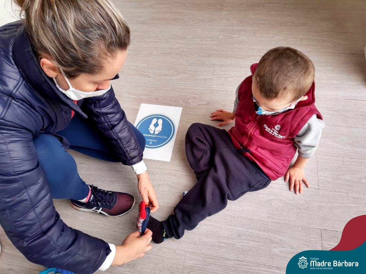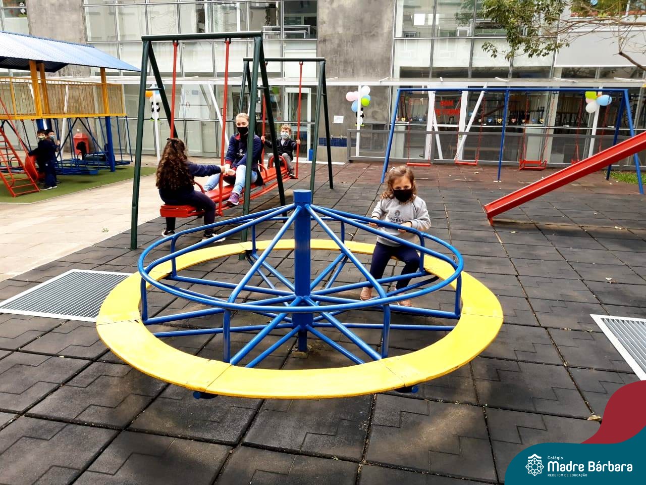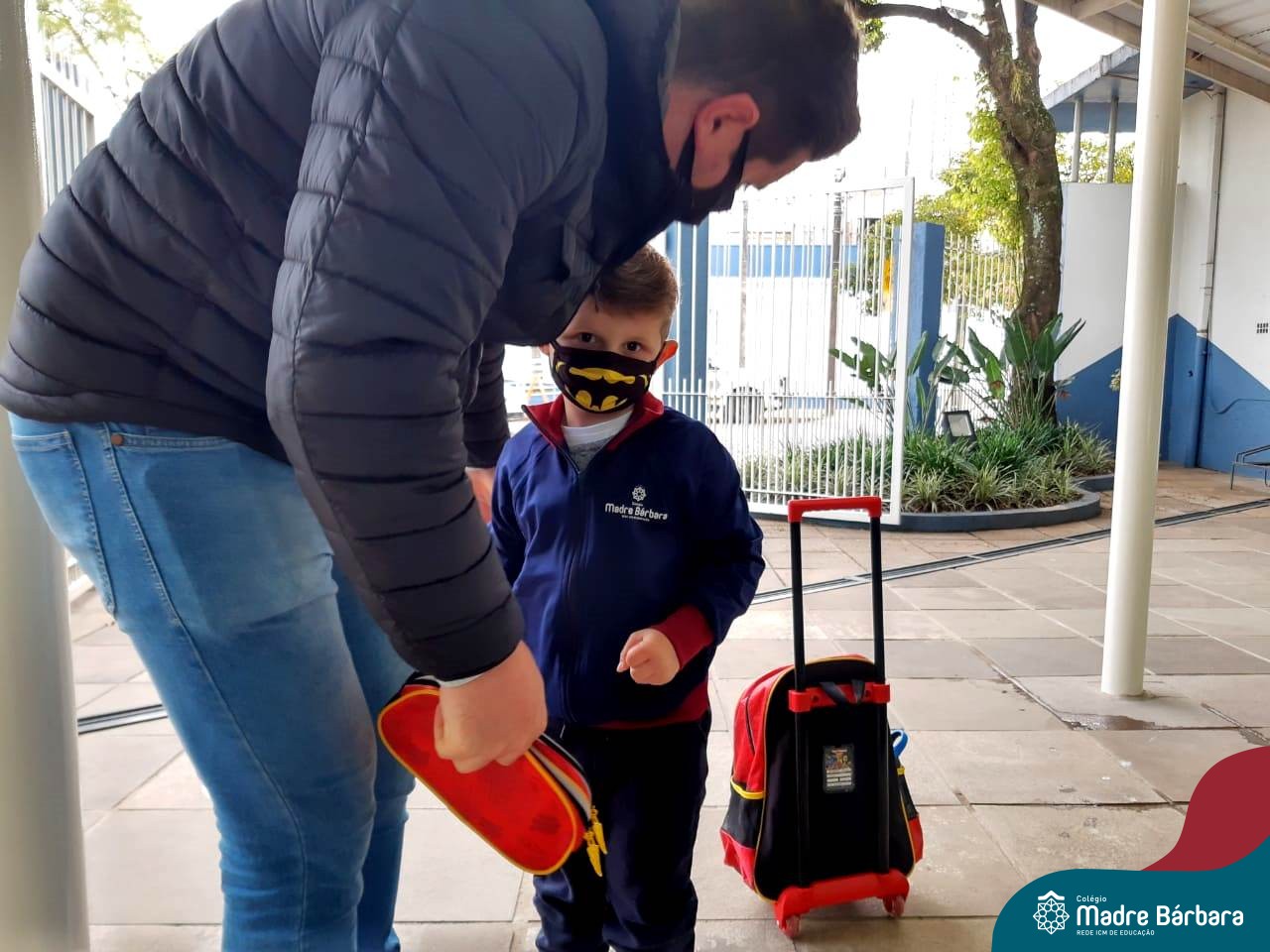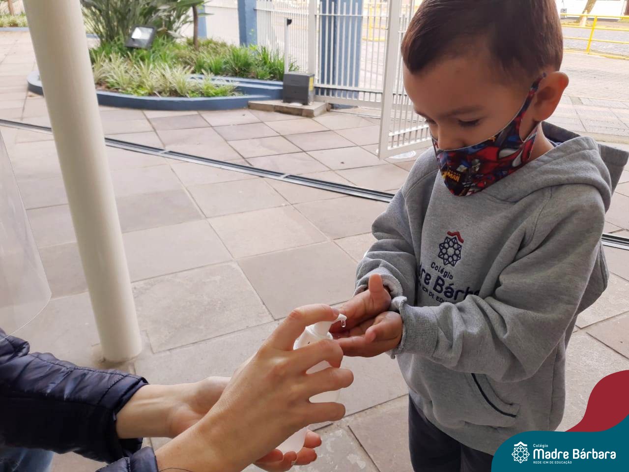 Nesta terça-feira (15) o Colégio Madre Bárbara – Rede ICM retornou com os atendimentos presenciais na Educação Infantil. Com todos os protocolos, medidas e cuidados de higiene e segurança, 184 crianças estão retornando para a escola. Destas, farão revezamento em dois grupos (A – segunda, terça e quarta-feira e B – quinta e sexta-feira), preenchendo 50% da capacidade da sala. O Colégio conta com equipes responsáveis pelo fluxo de entrada e saída, com checklist de aferição da temperatura, conferência do uso correto de máscaras, higienização dos pés no tapete sanitizante e limpeza das mãos com álcool gel.