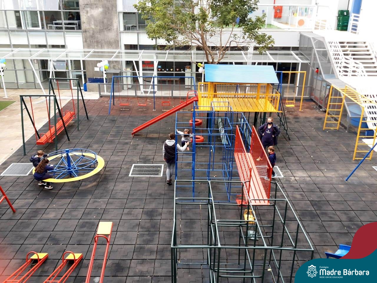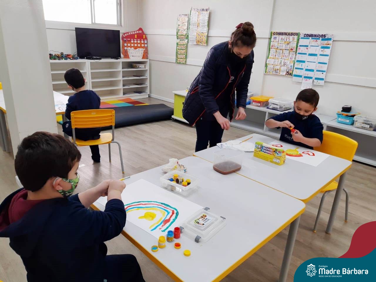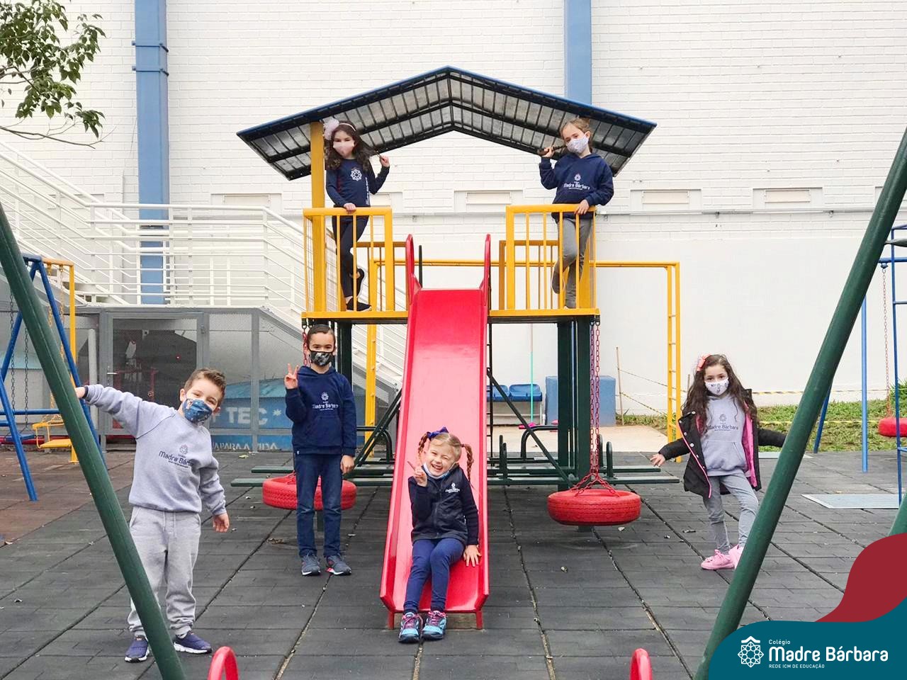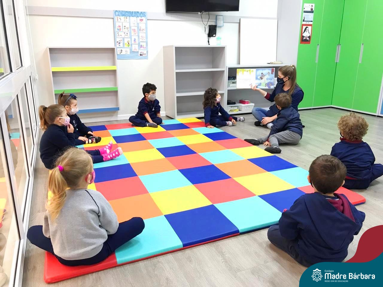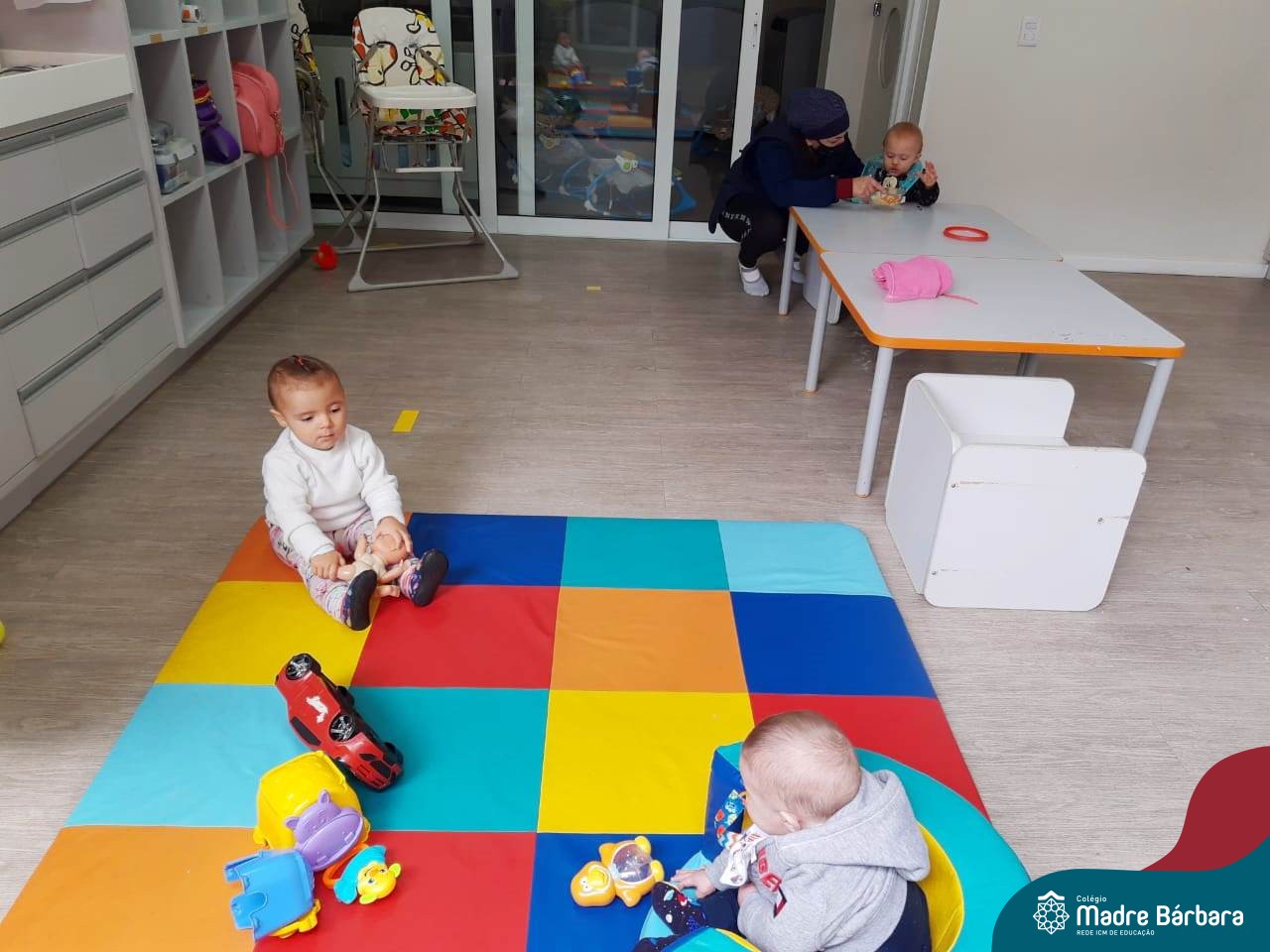 Nesta terça-feira (15) o Colégio Madre Bárbara – Rede ICM retornou com os atendimentos presenciais na Educação Infantil. Com todos os protocolos, medidas e cuidados de higiene e segurança, 184 crianças estão retornando para a escola. Destas, farão revezamento em dois grupos (A – segunda, terça e quarta-feira e B – quinta e sexta-feira), preenchendo 50% da capacidade da sala. O Colégio conta com equipes responsáveis pelo fluxo de entrada e saída, com checklist de aferição da temperatura, conferência do uso correto de máscaras, higienização dos pés no tapete sanitizante e limpeza das mãos com álcool gel.